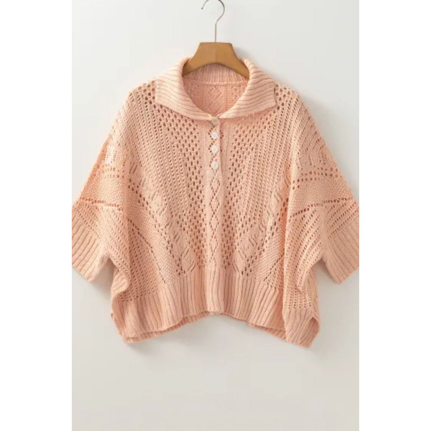 Cutout Collared Neck Three-Quarter Sleeve Sweater