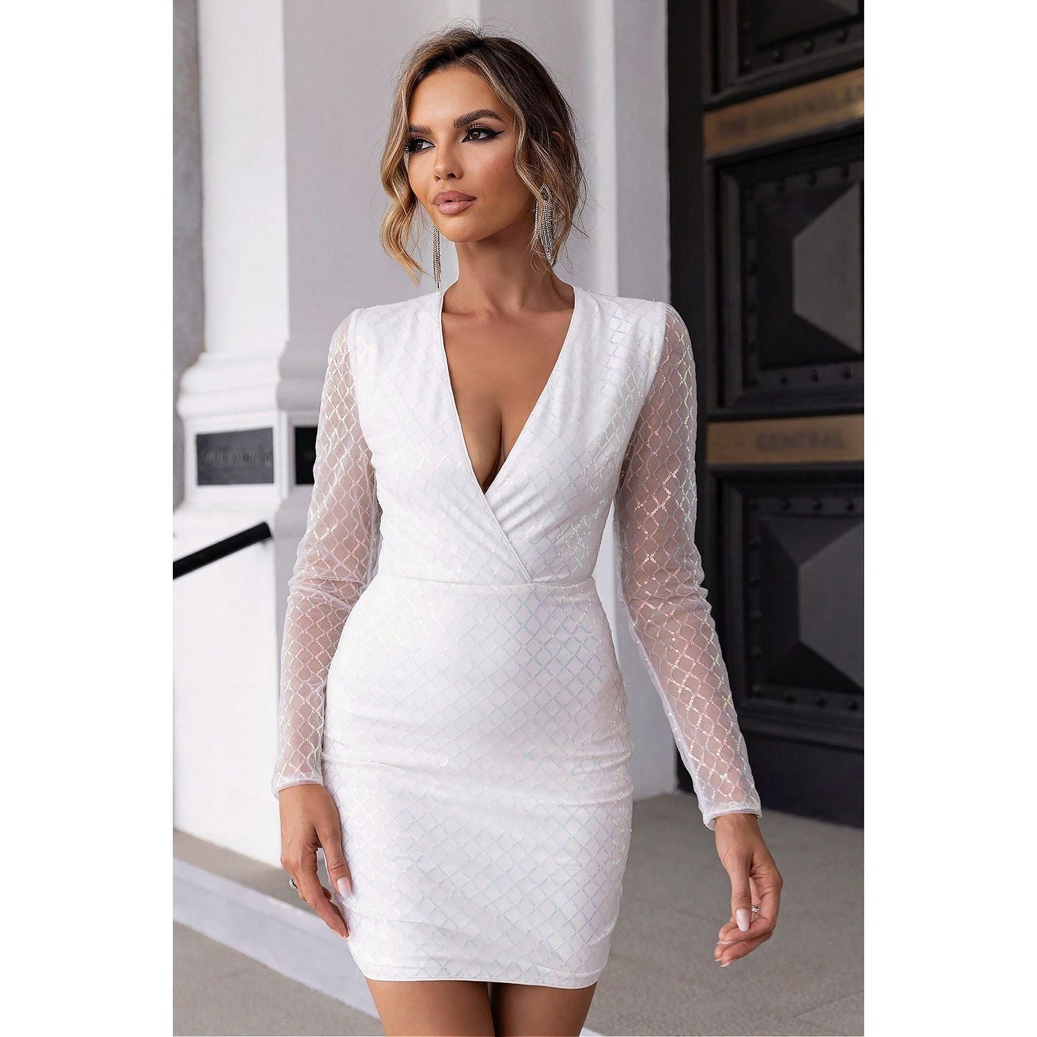Cutout Sequin Mesh Mini Dress