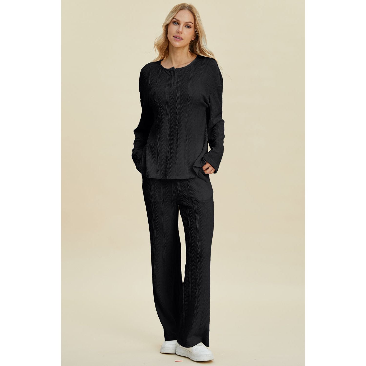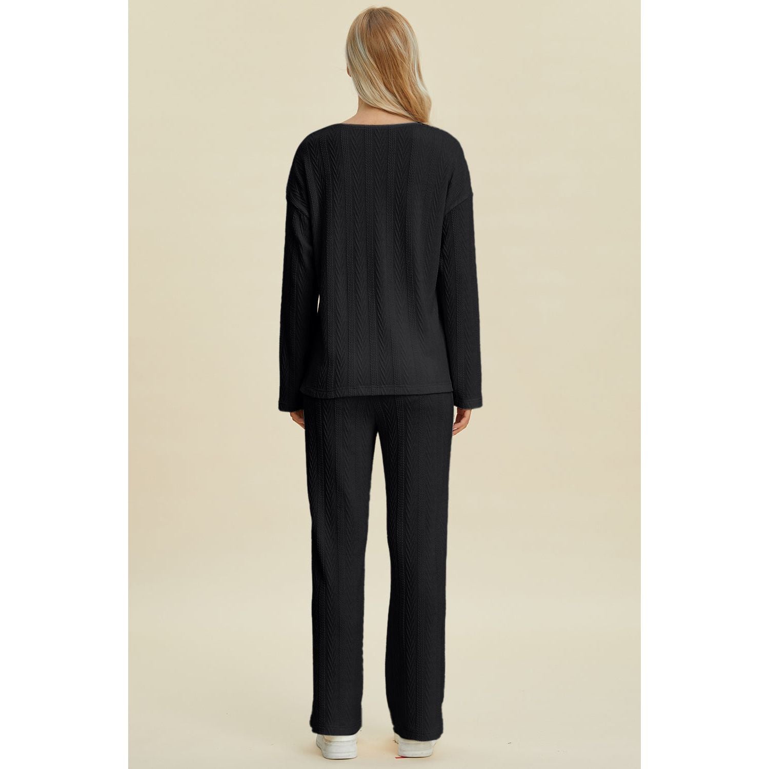 Double Take Full Size Cable-Knit Long Sleeve Top and Pants Set