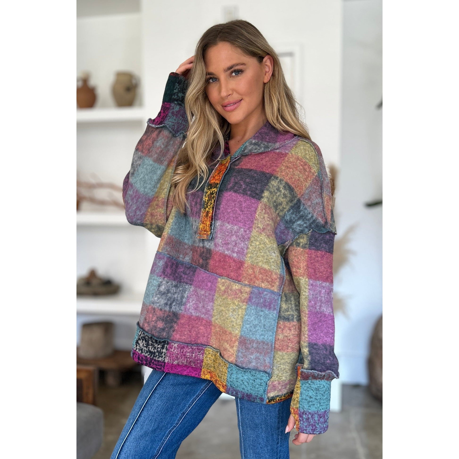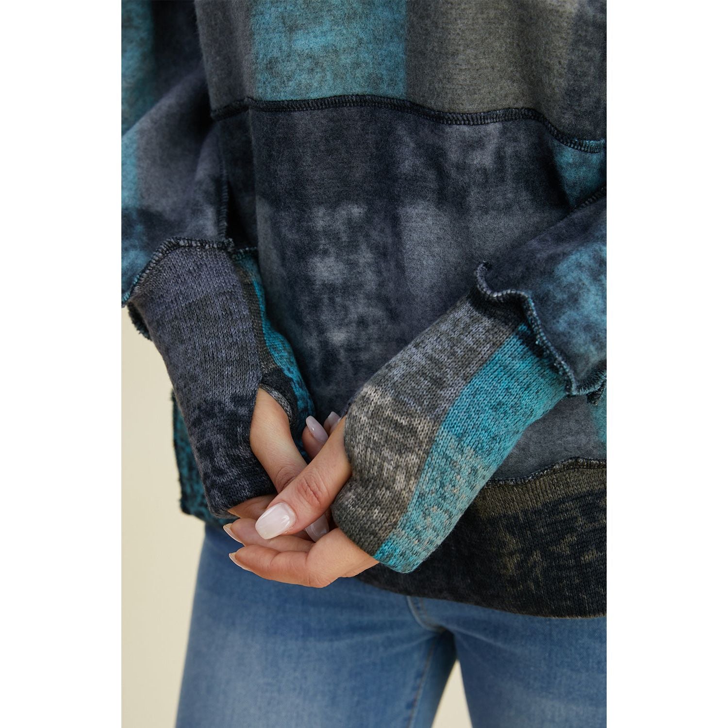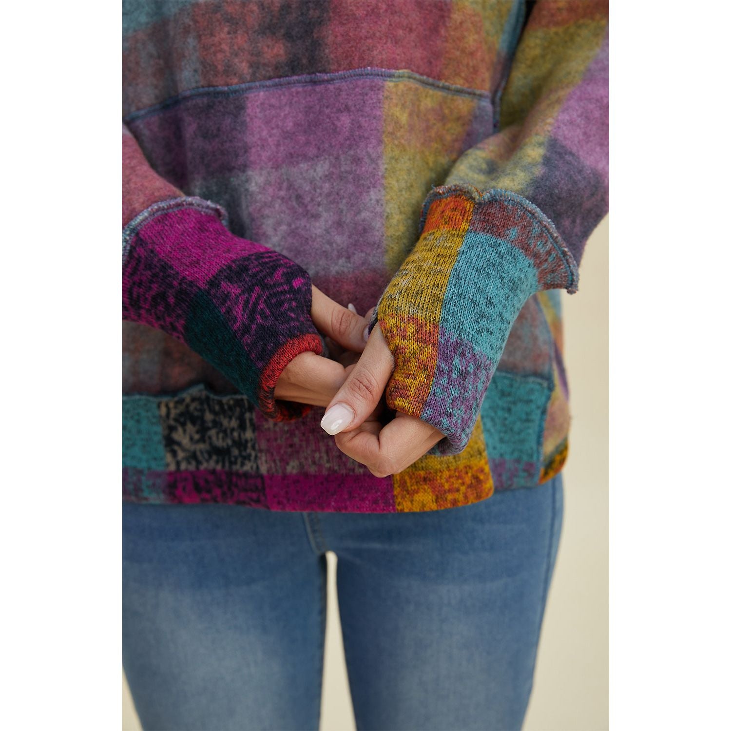 Double Take Full Size Plaid Dropped Shoulder Hoodie
