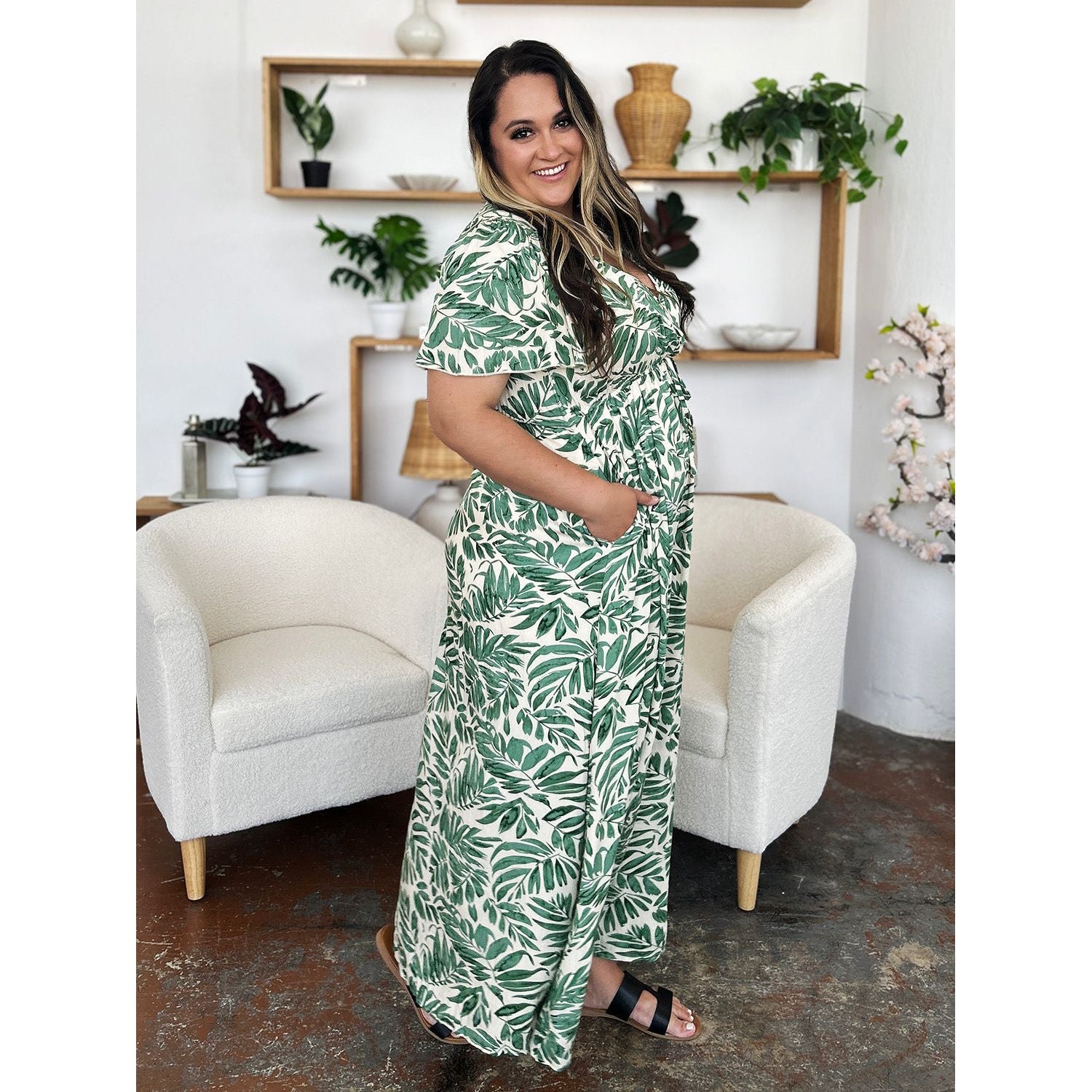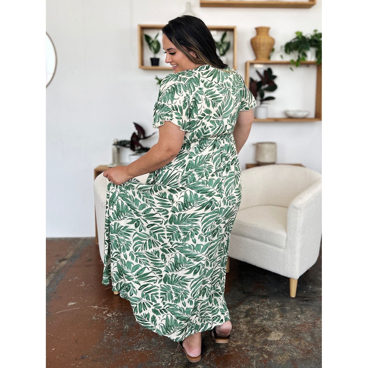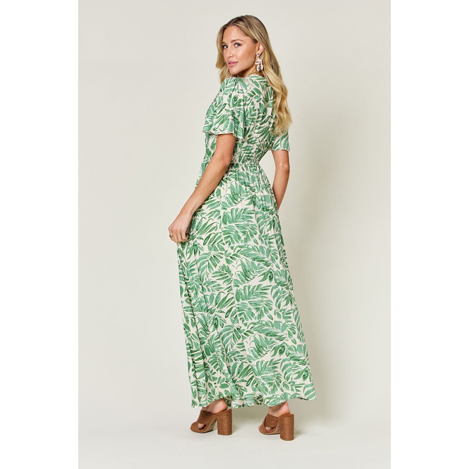 Double Take Full Size Printed Drawstring Short Sleeve Dress
