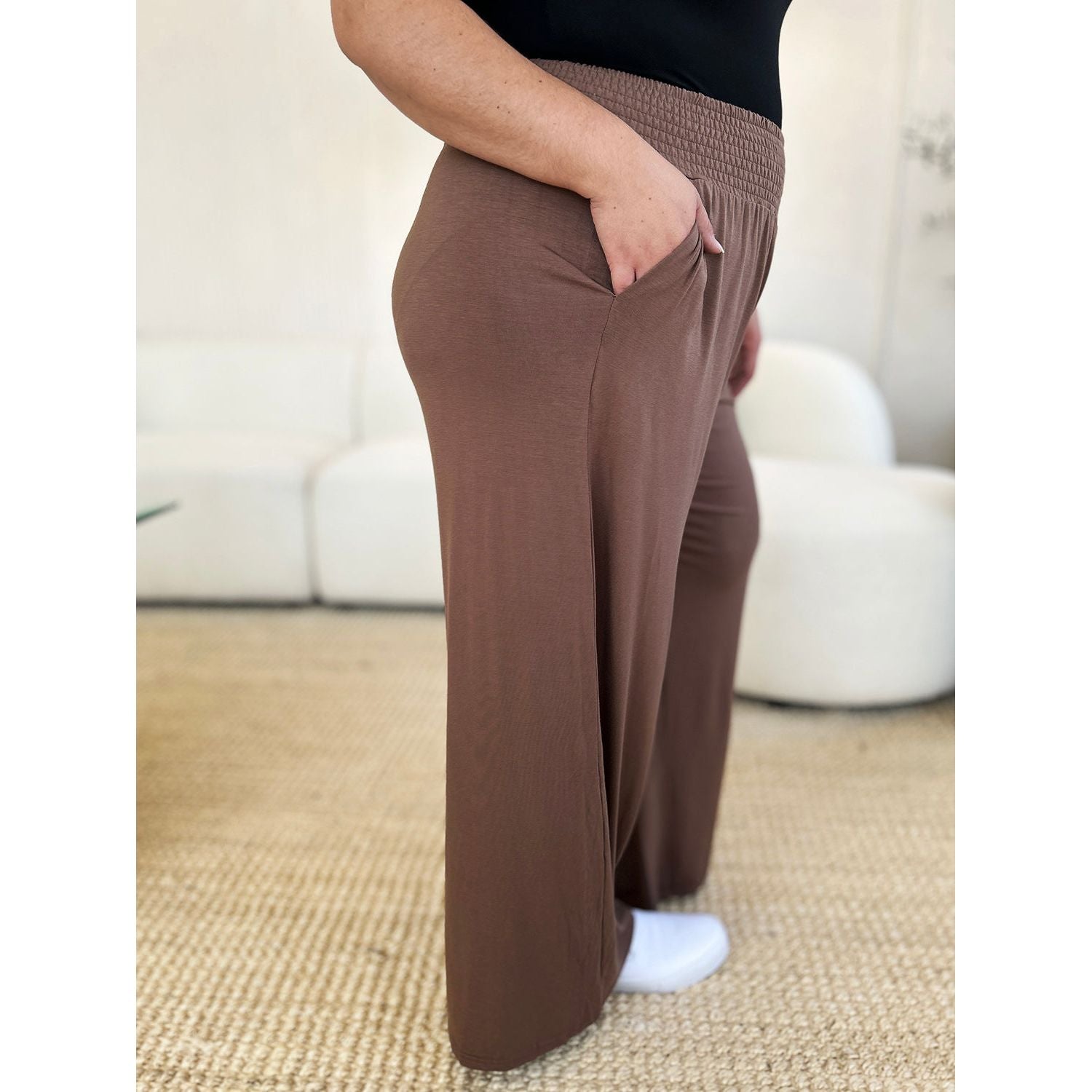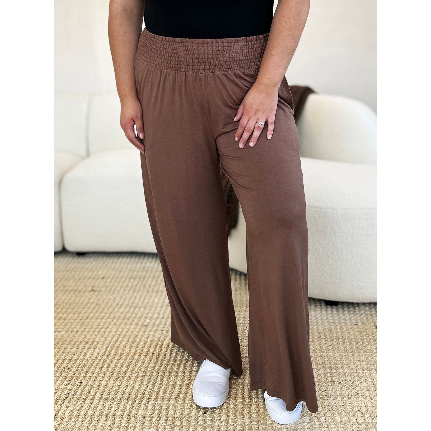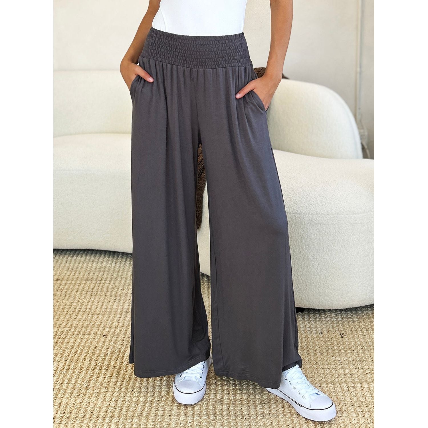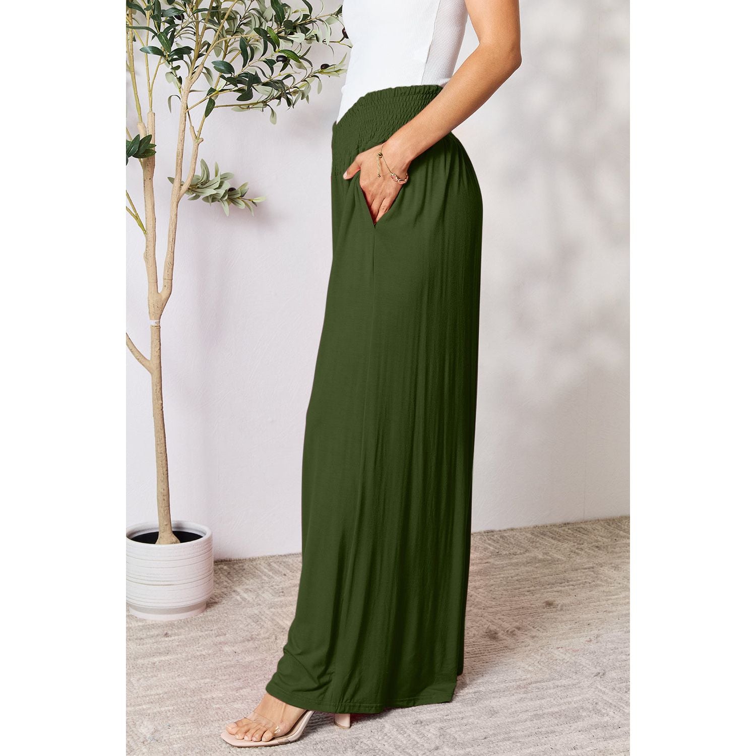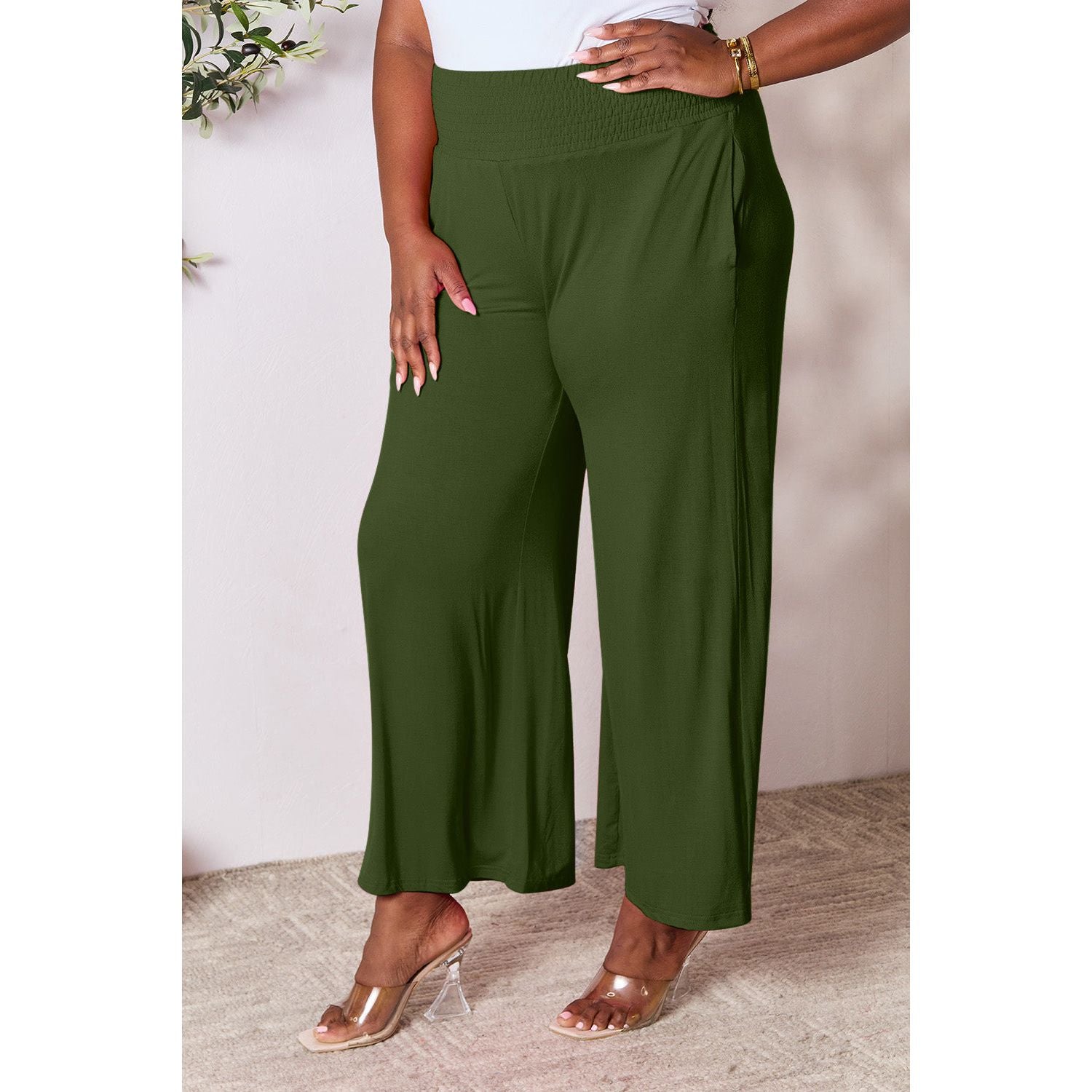 Double Take Full Size Smocked Wide Waistband Wide Leg Pants