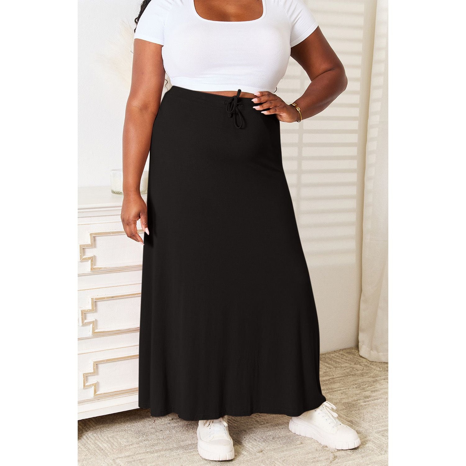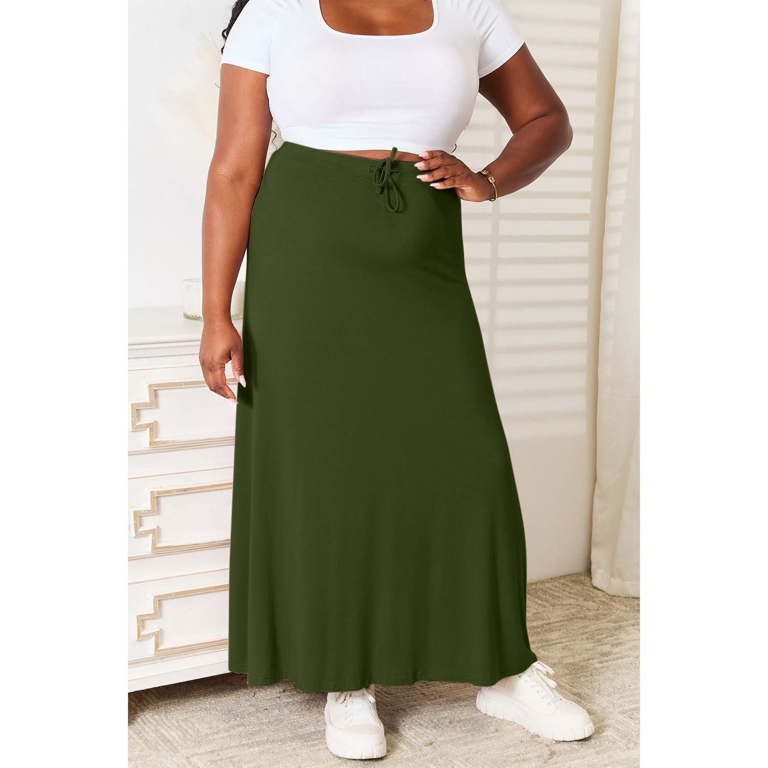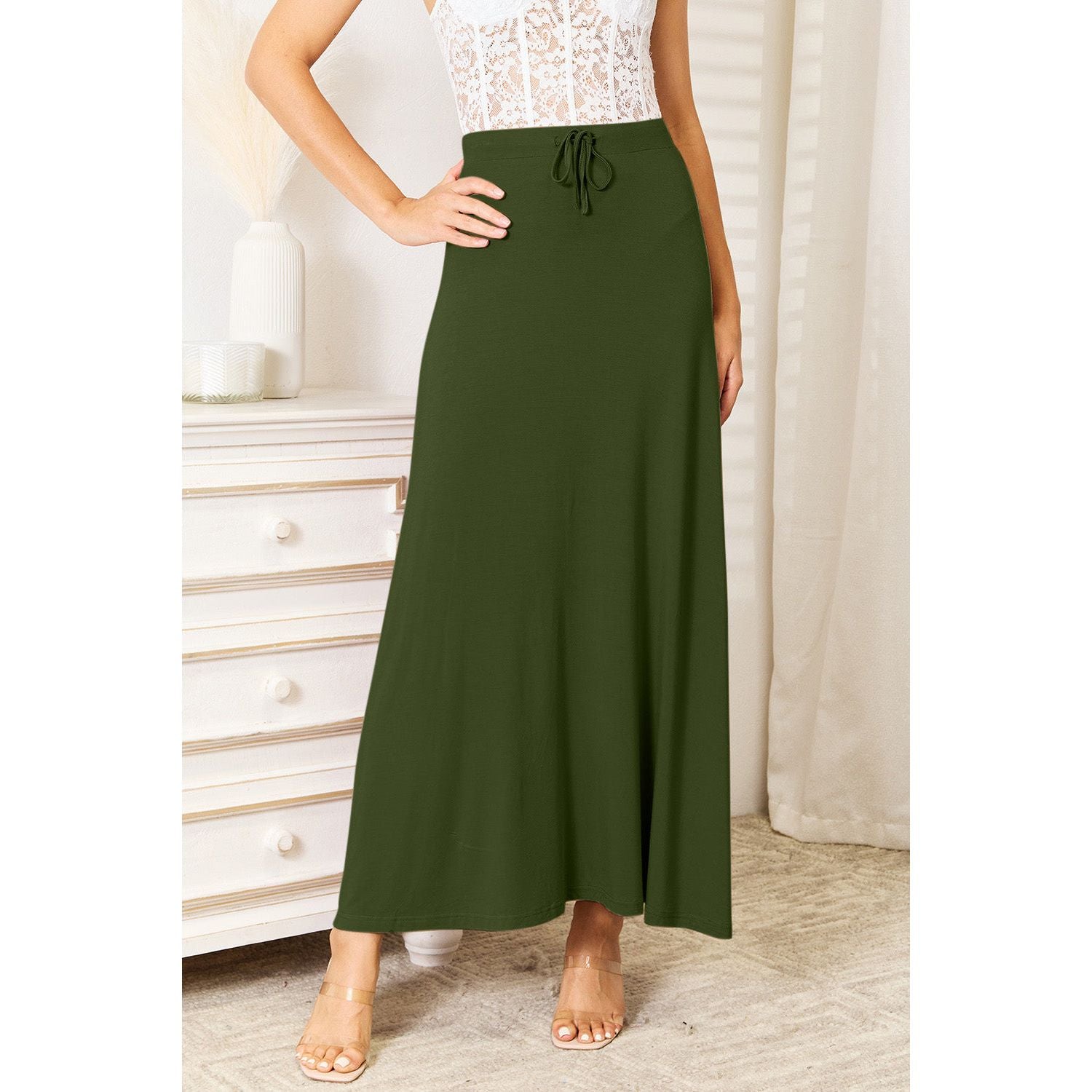 Double Take Full Size Soft Rayon Drawstring Waist Maxi Skirt