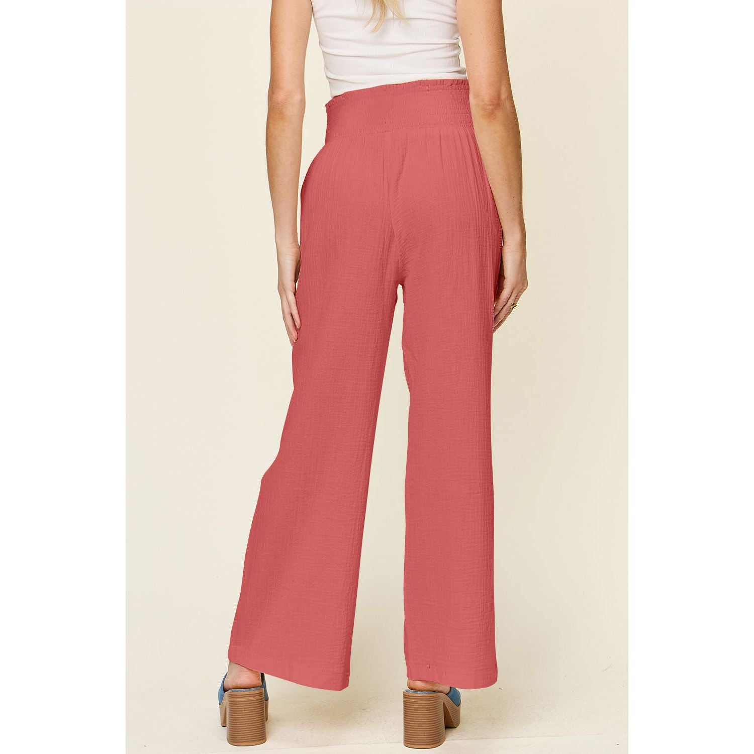 Double Take Full Size Texture Smocked Waist Wide Leg Pants