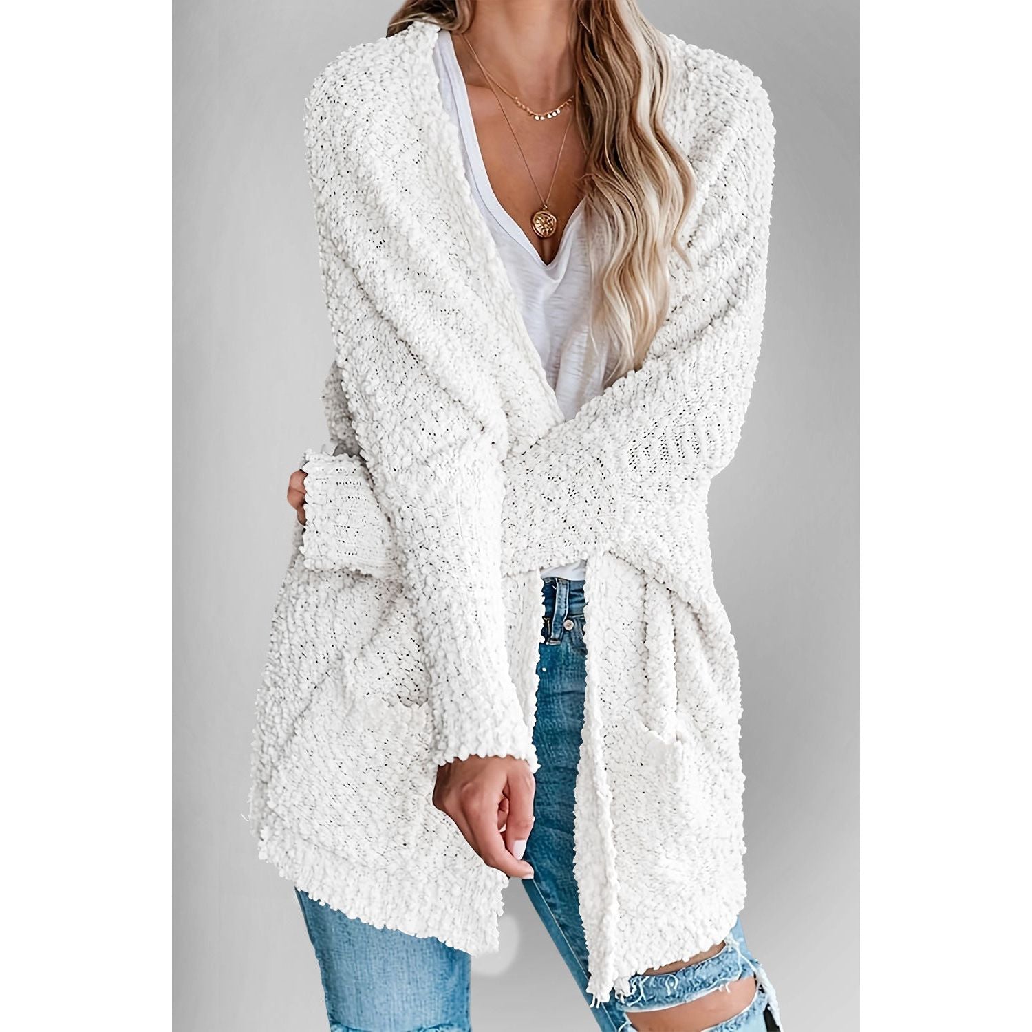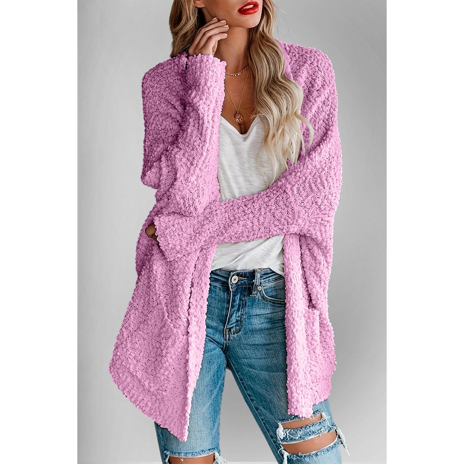 Double Take Pocketed Open Front Long Sleeve Cardigan