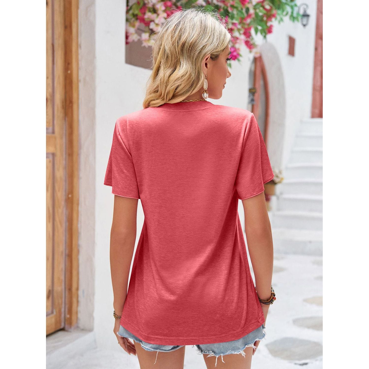 Double Take Ruched V-Neck Short Sleeve T-Shirt