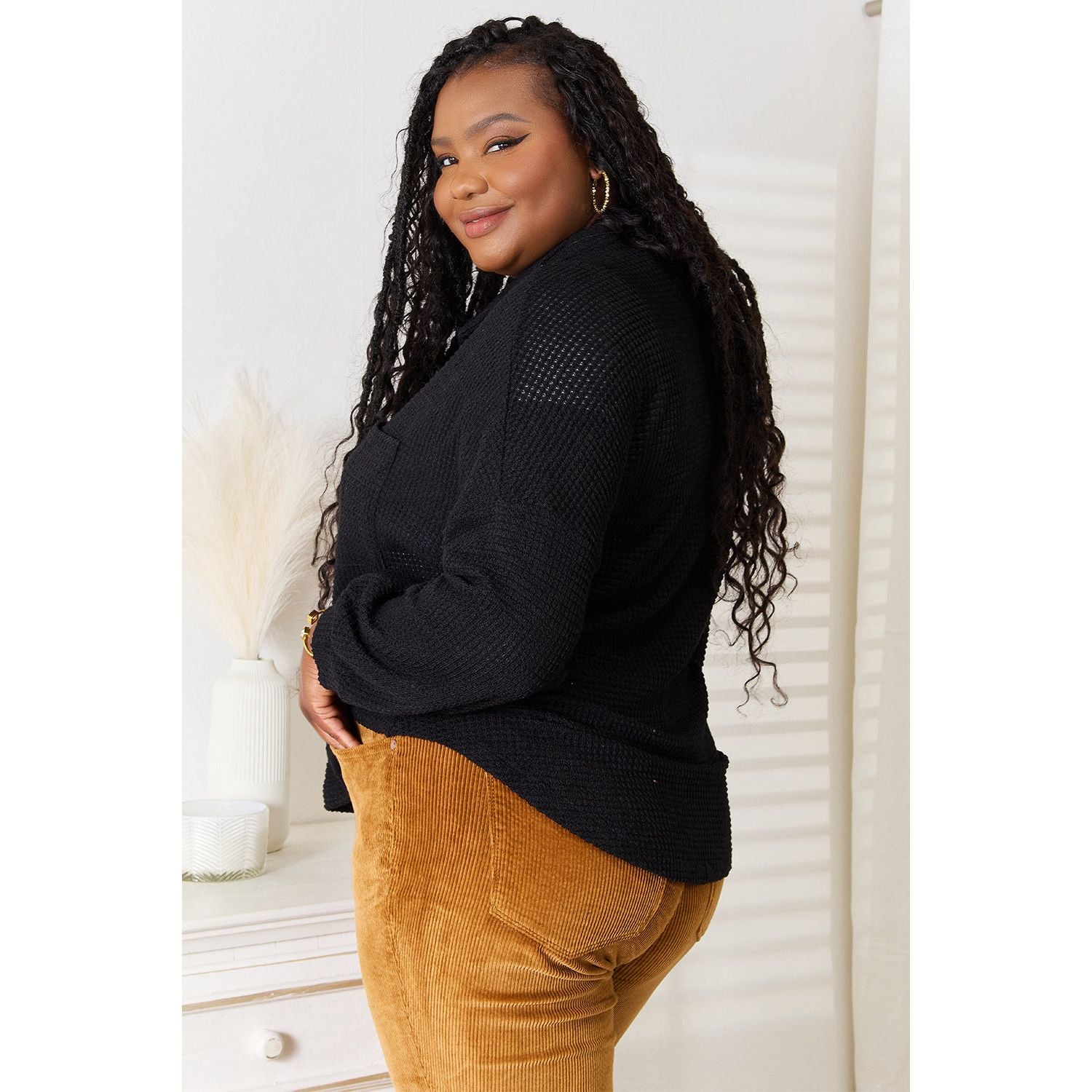 Double Take Waffle-Knit Collared Neck Dropped Shoulder Shirt