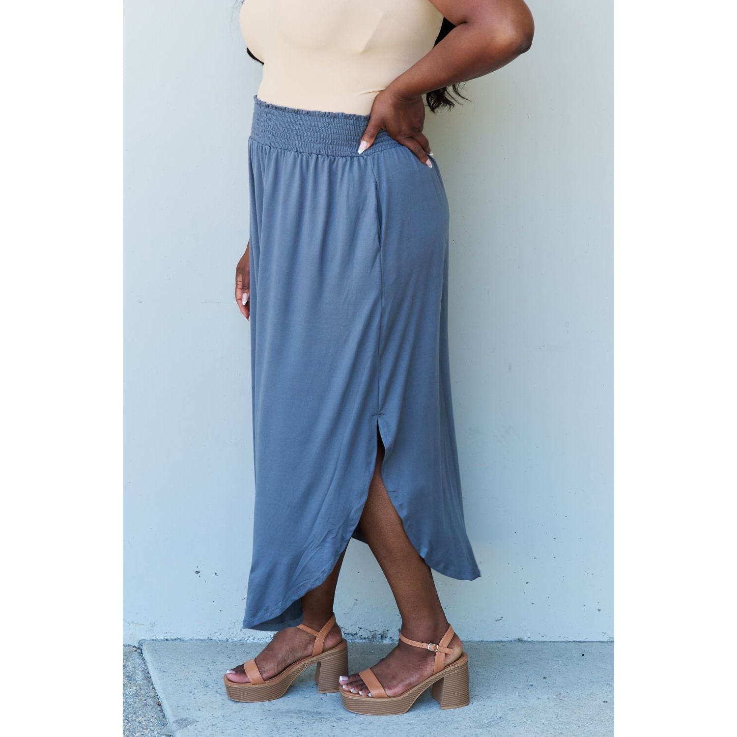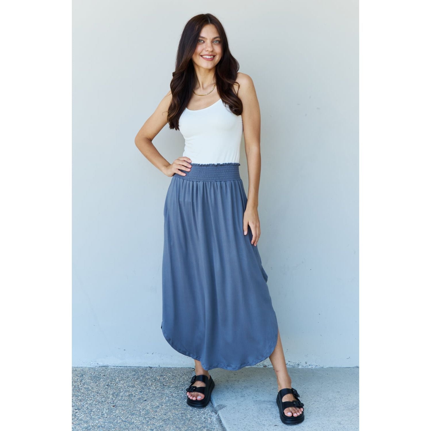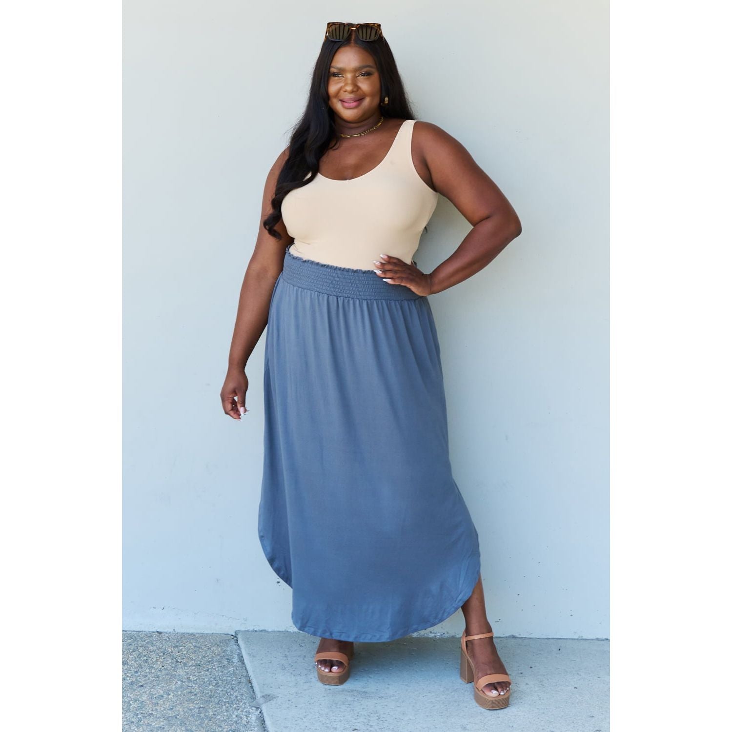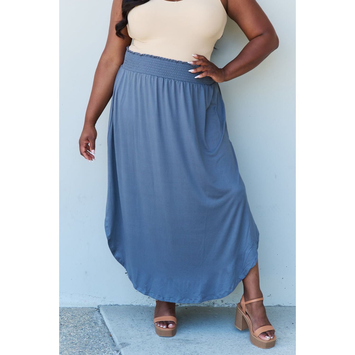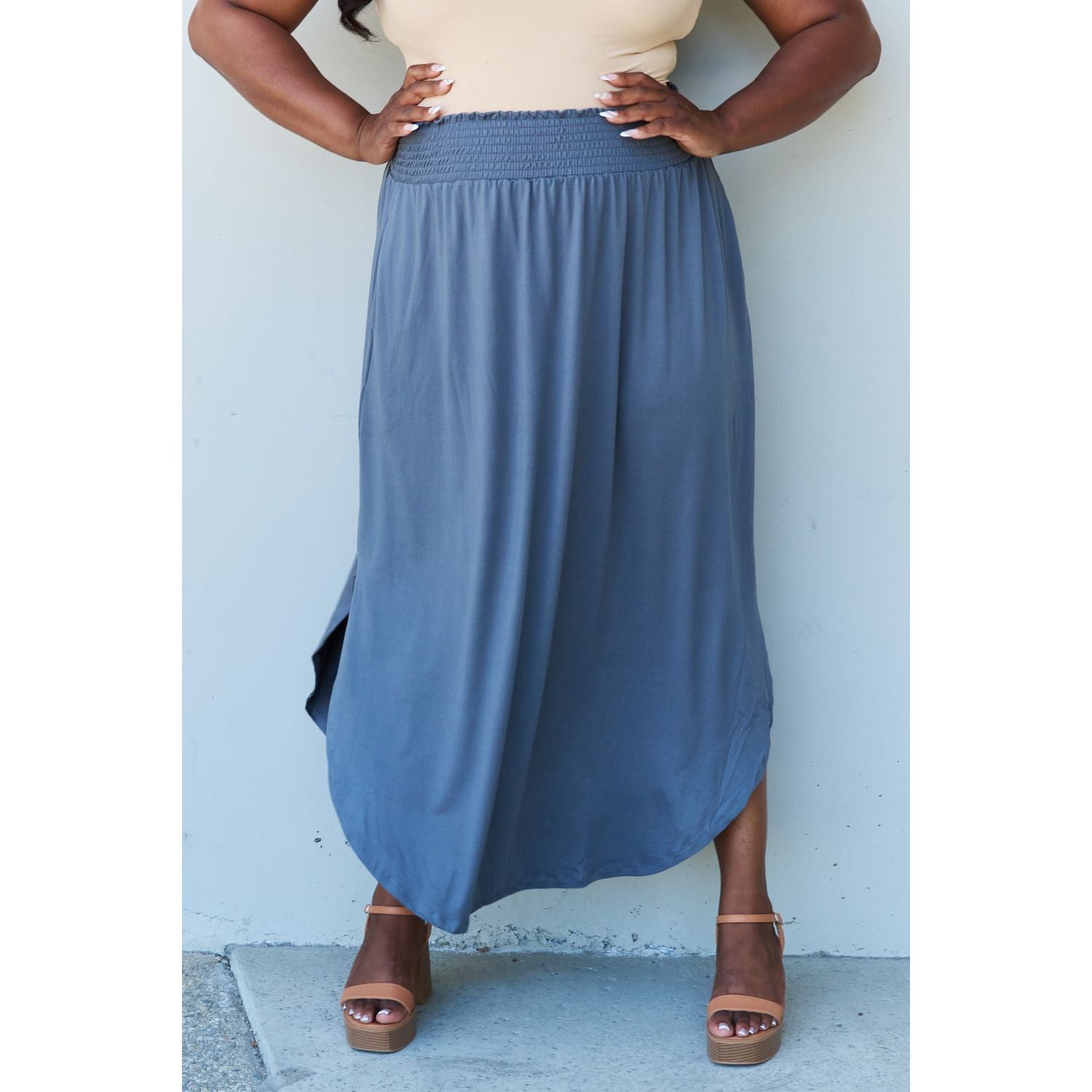 Doublju Comfort Princess Full Size High Waist Scoop Hem Maxi Skirt in Charcoal