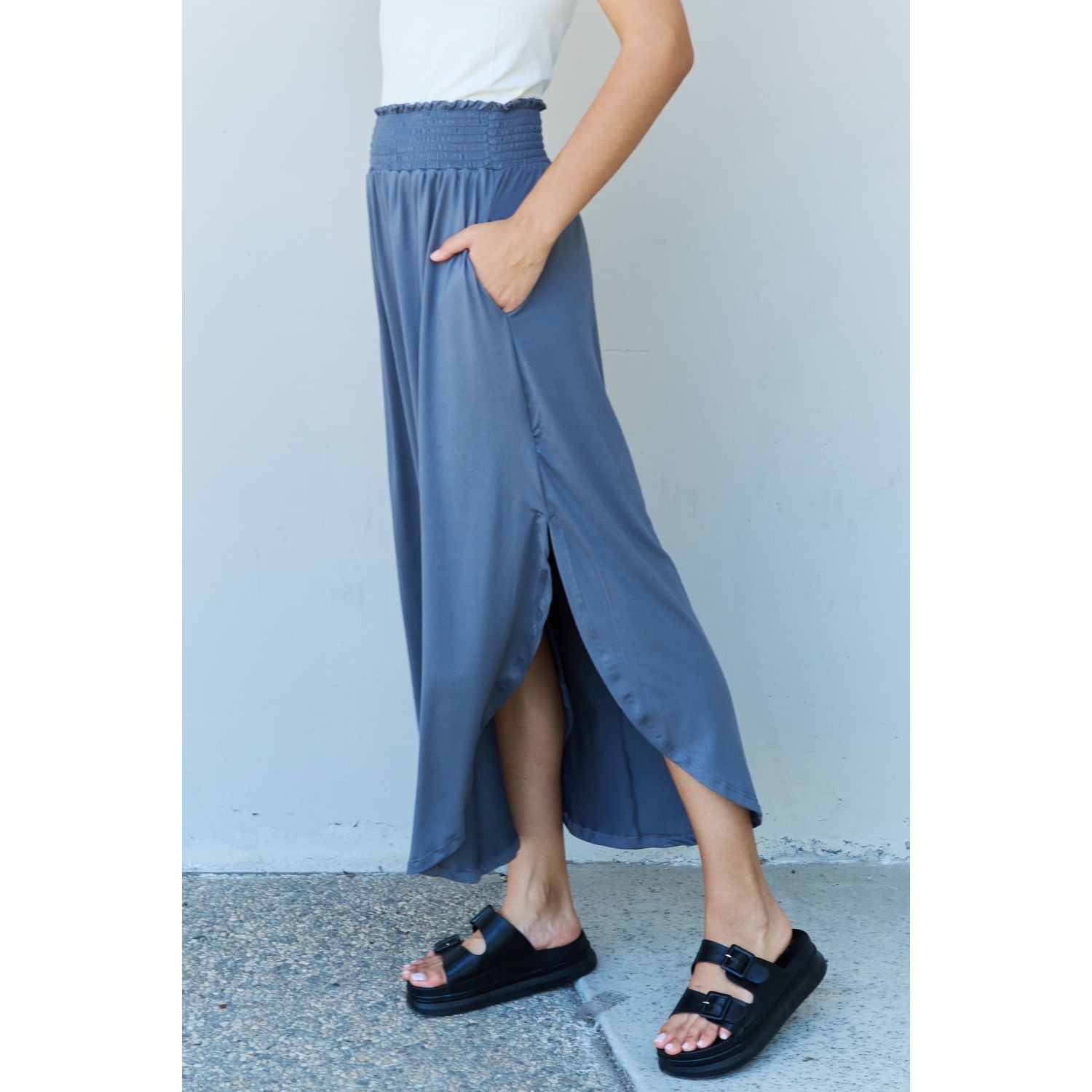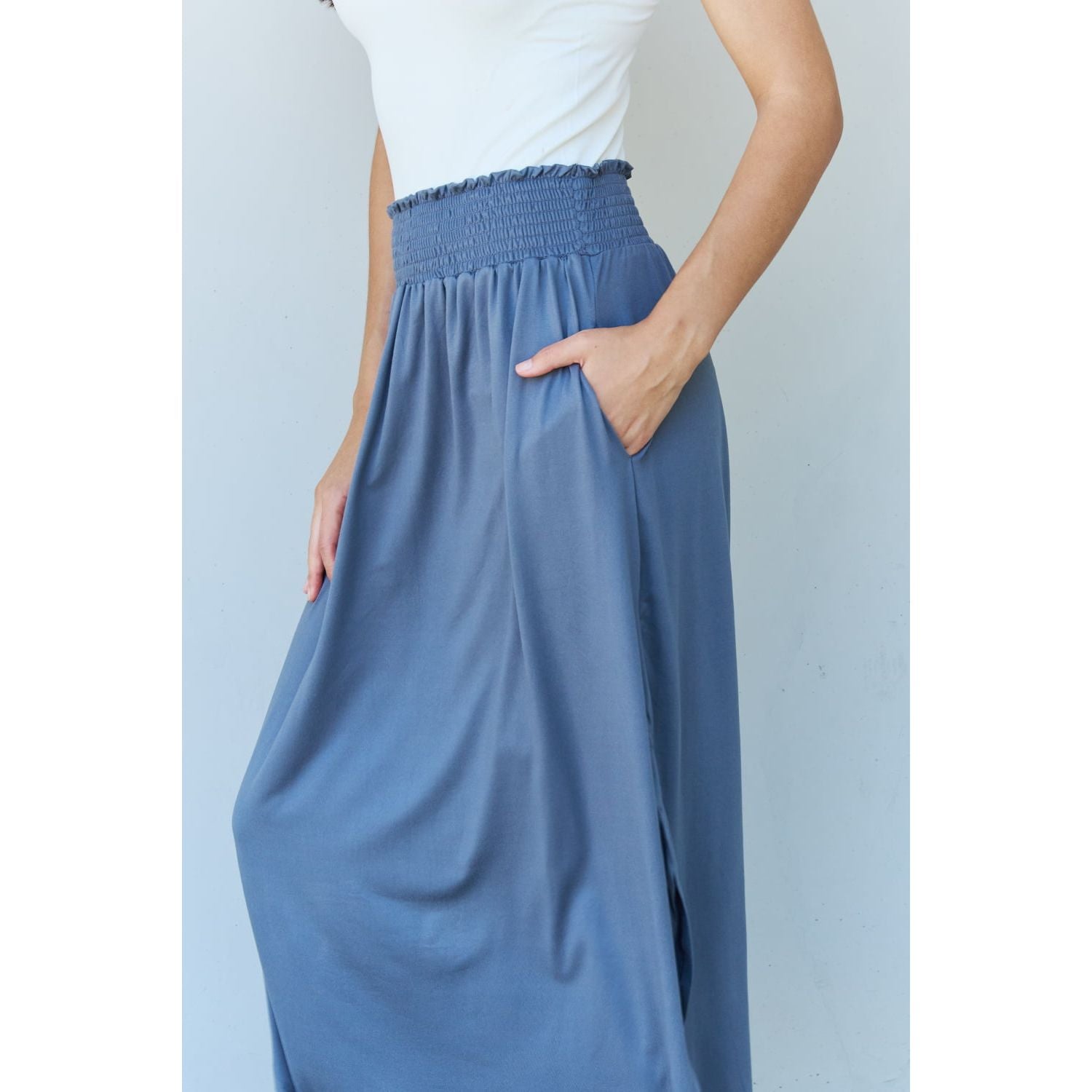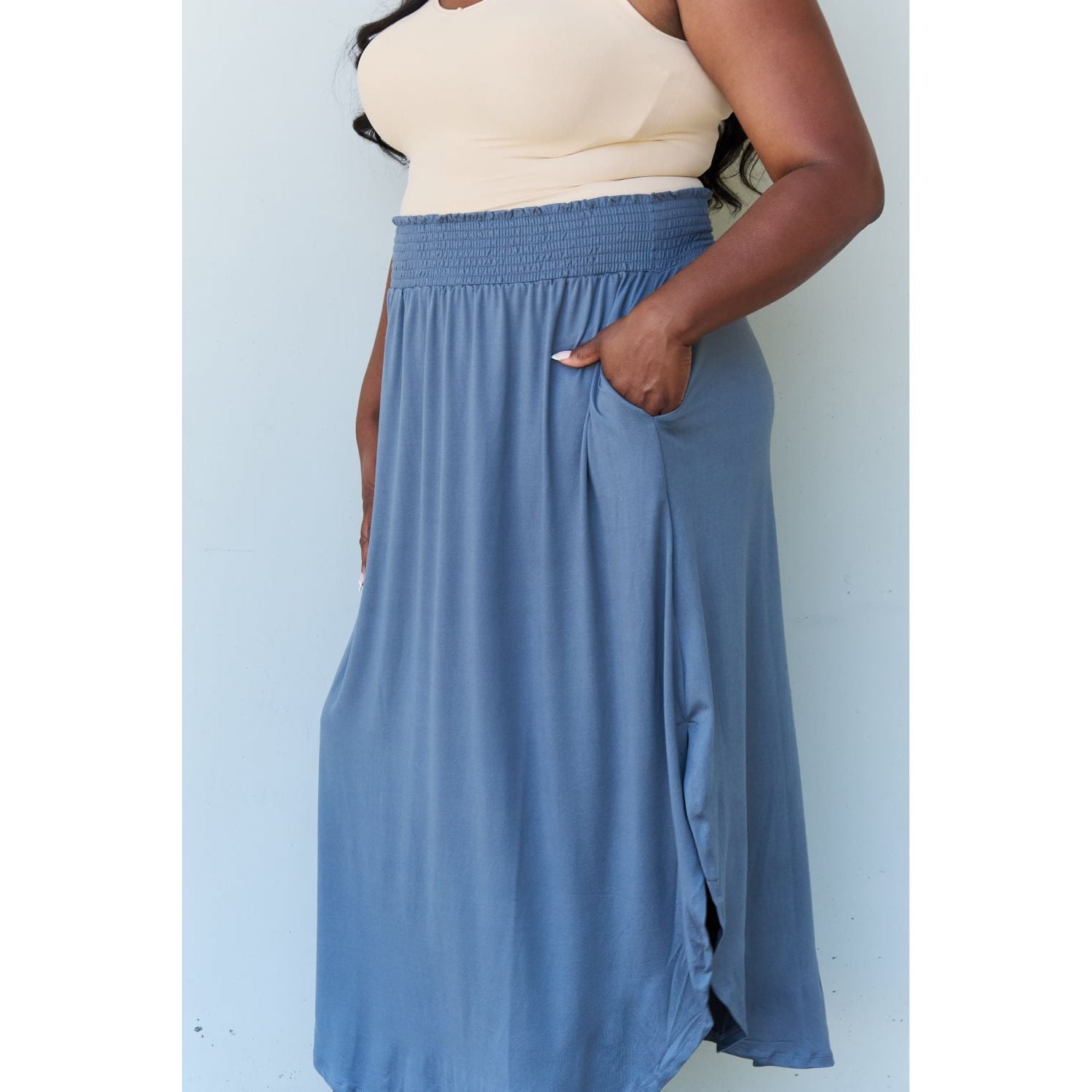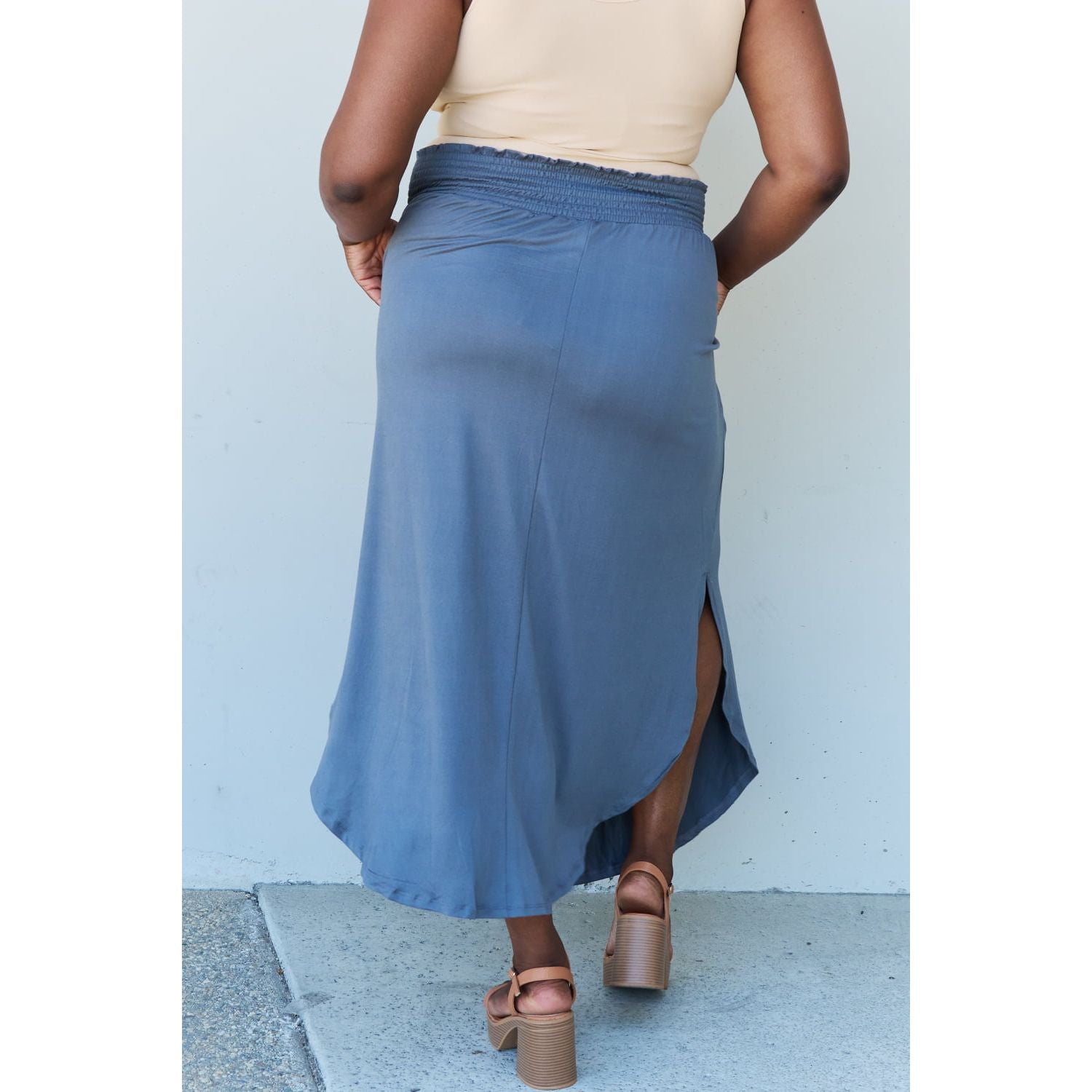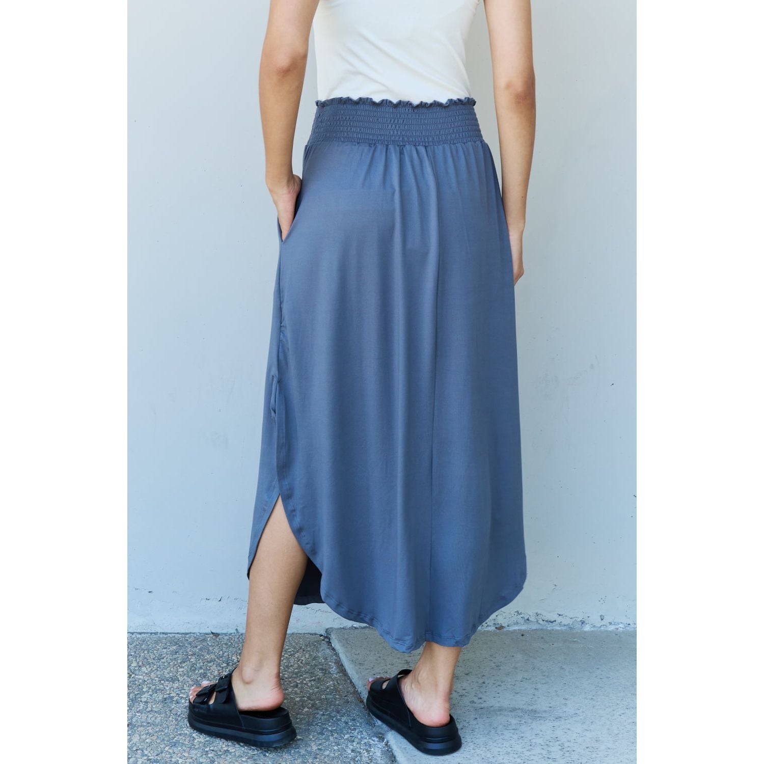 Doublju Comfort Princess Full Size High Waist Scoop Hem Maxi Skirt in Charcoal