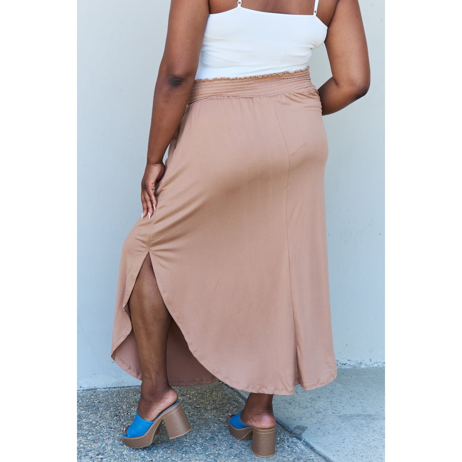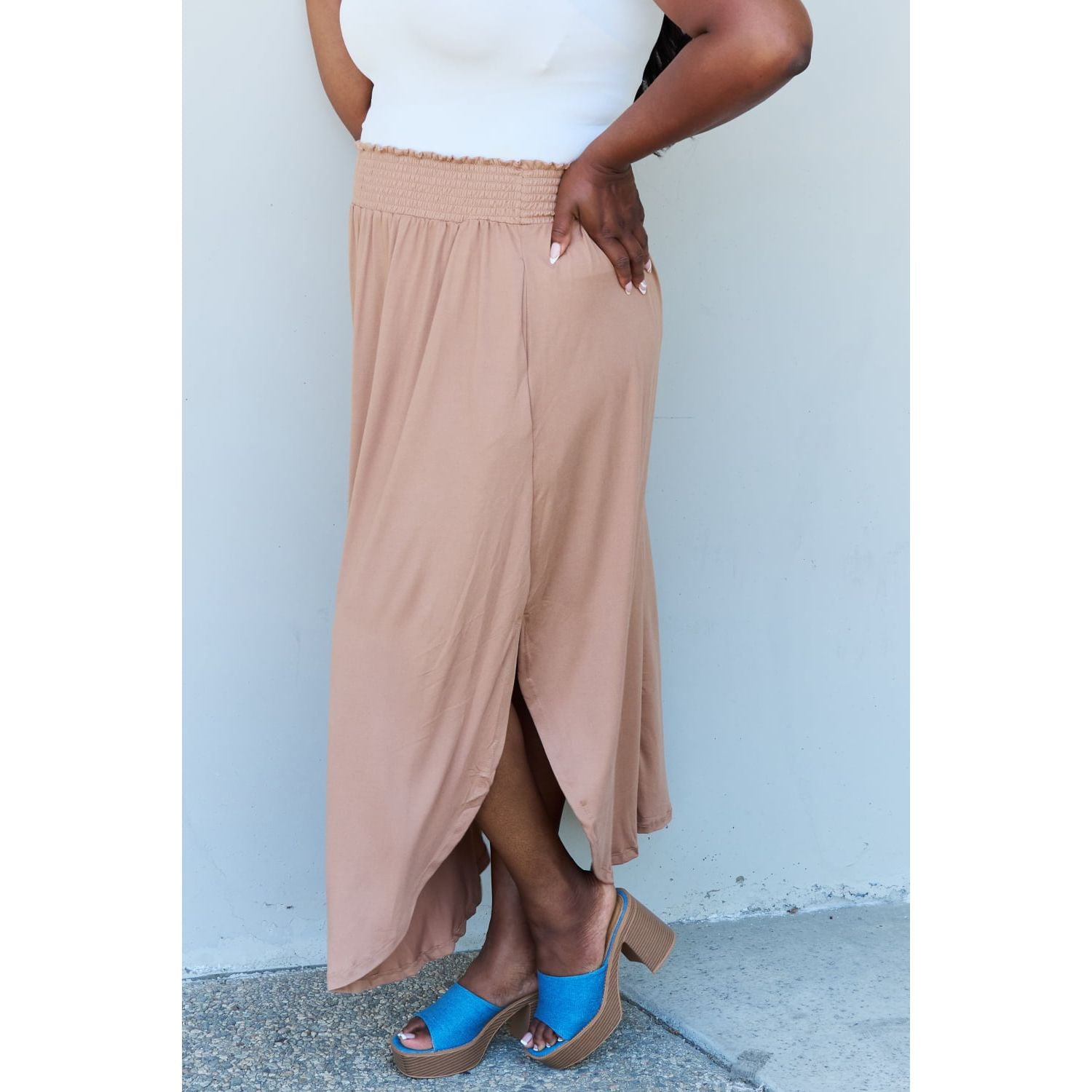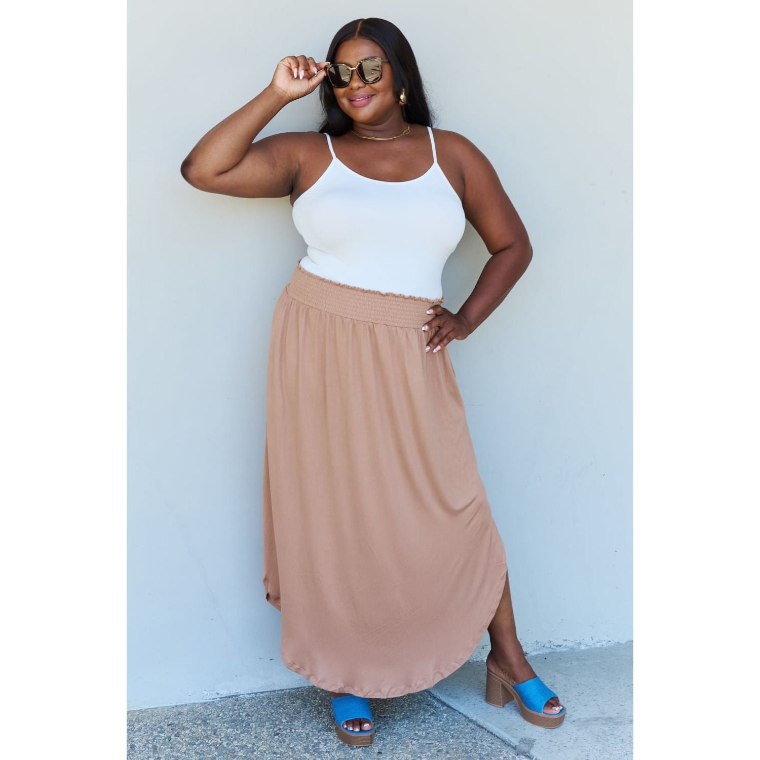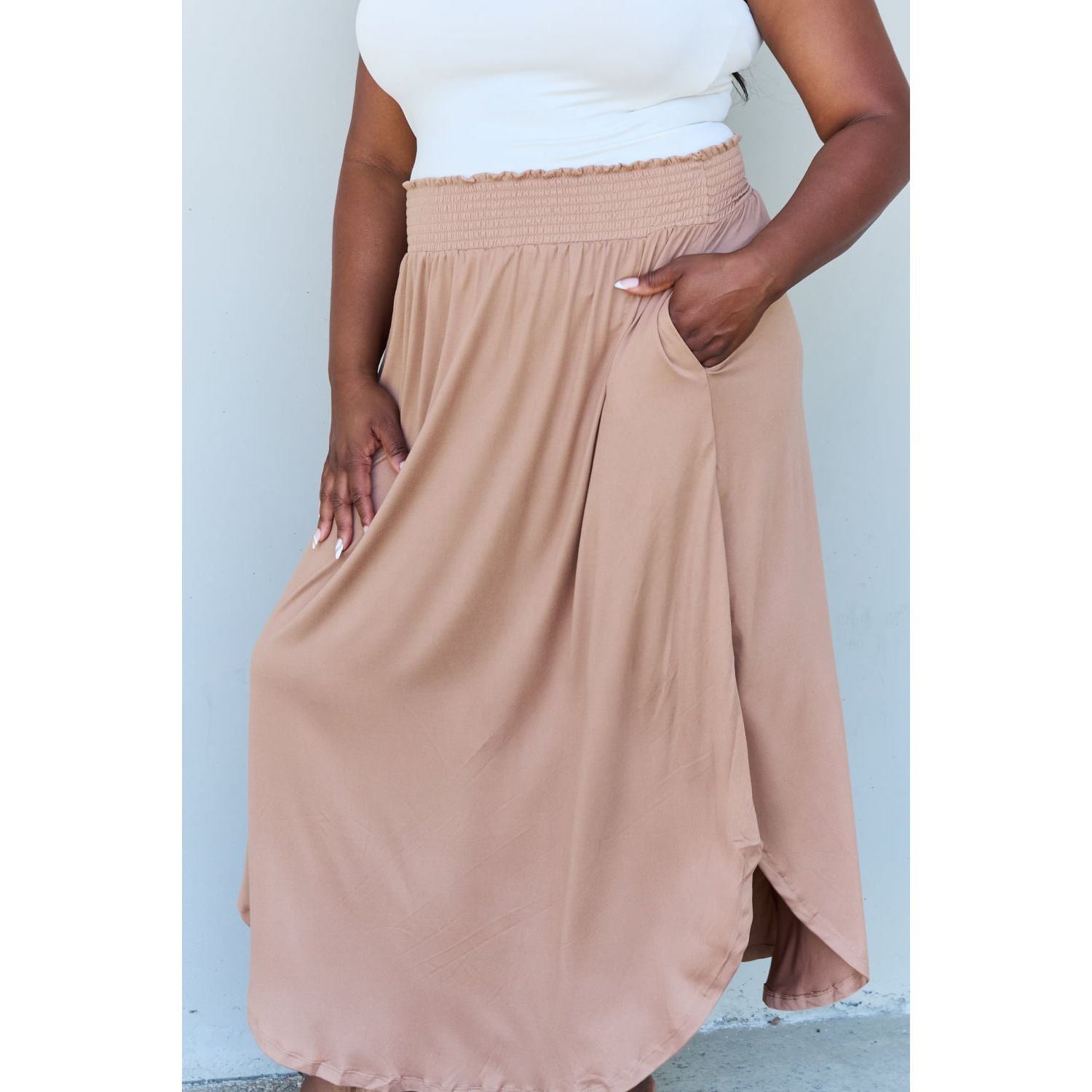 Doublju Comfort Princess Full Size High Waist Scoop Hem Maxi Skirt in Tan