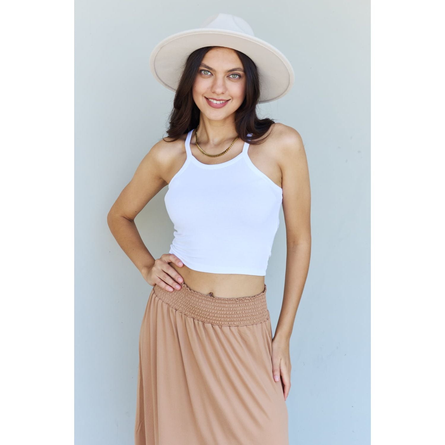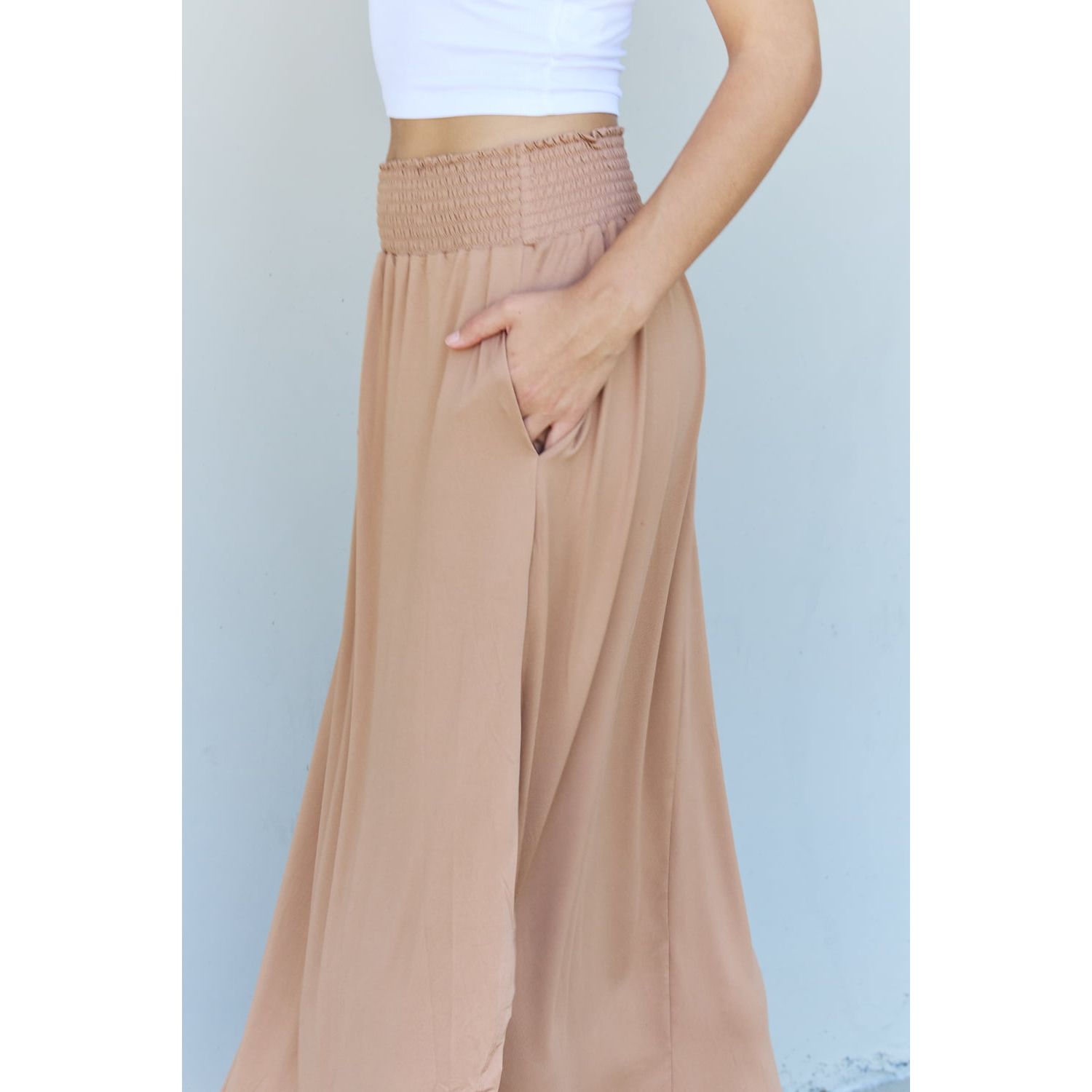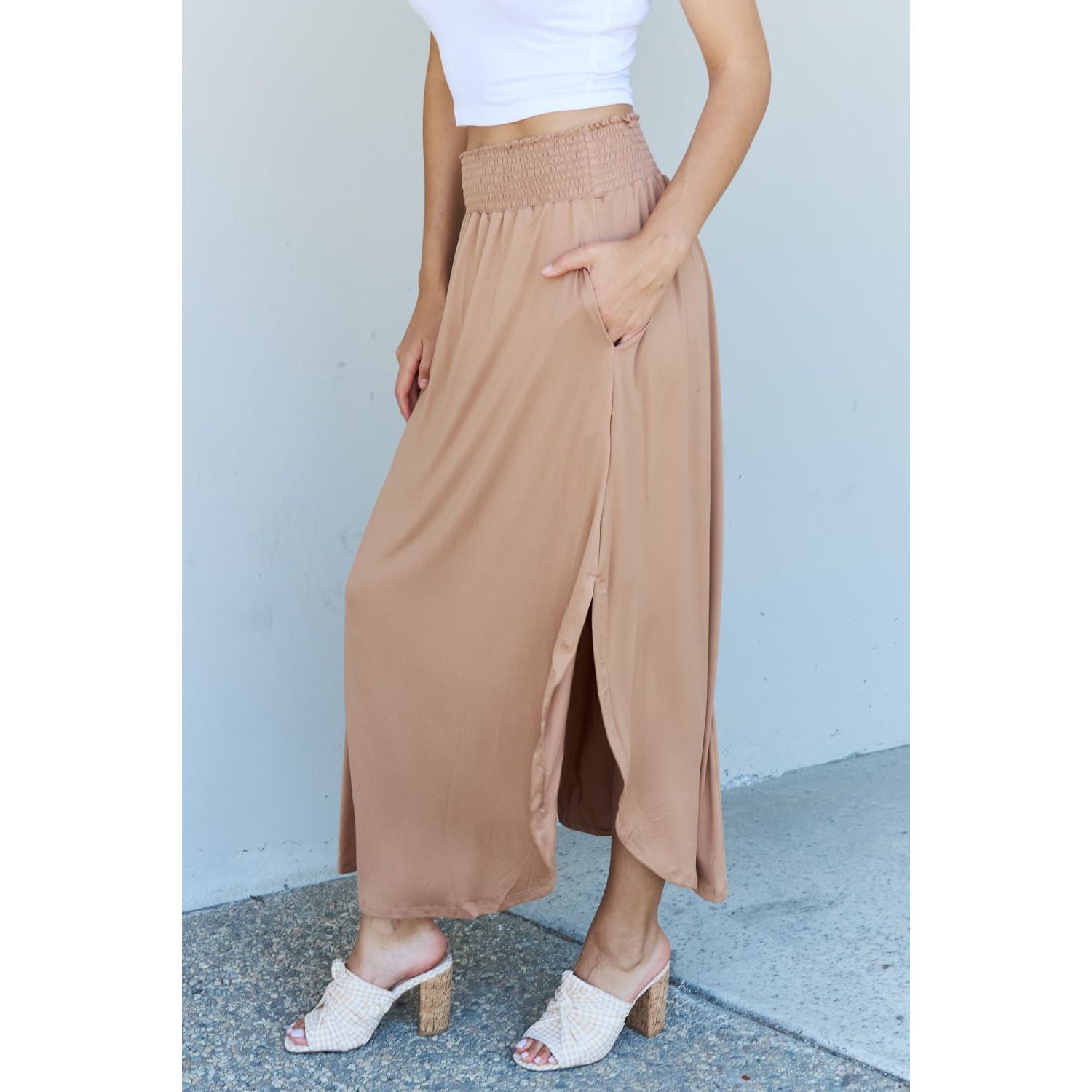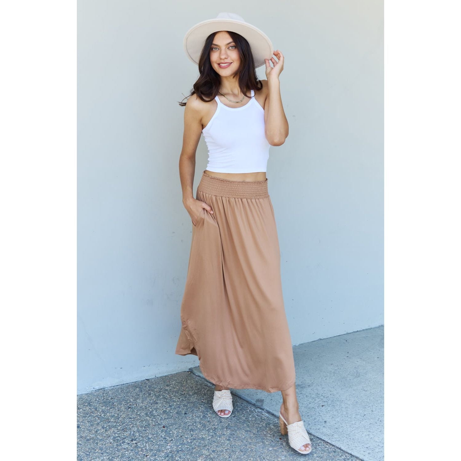 Doublju Comfort Princess Full Size High Waist Scoop Hem Maxi Skirt in Tan