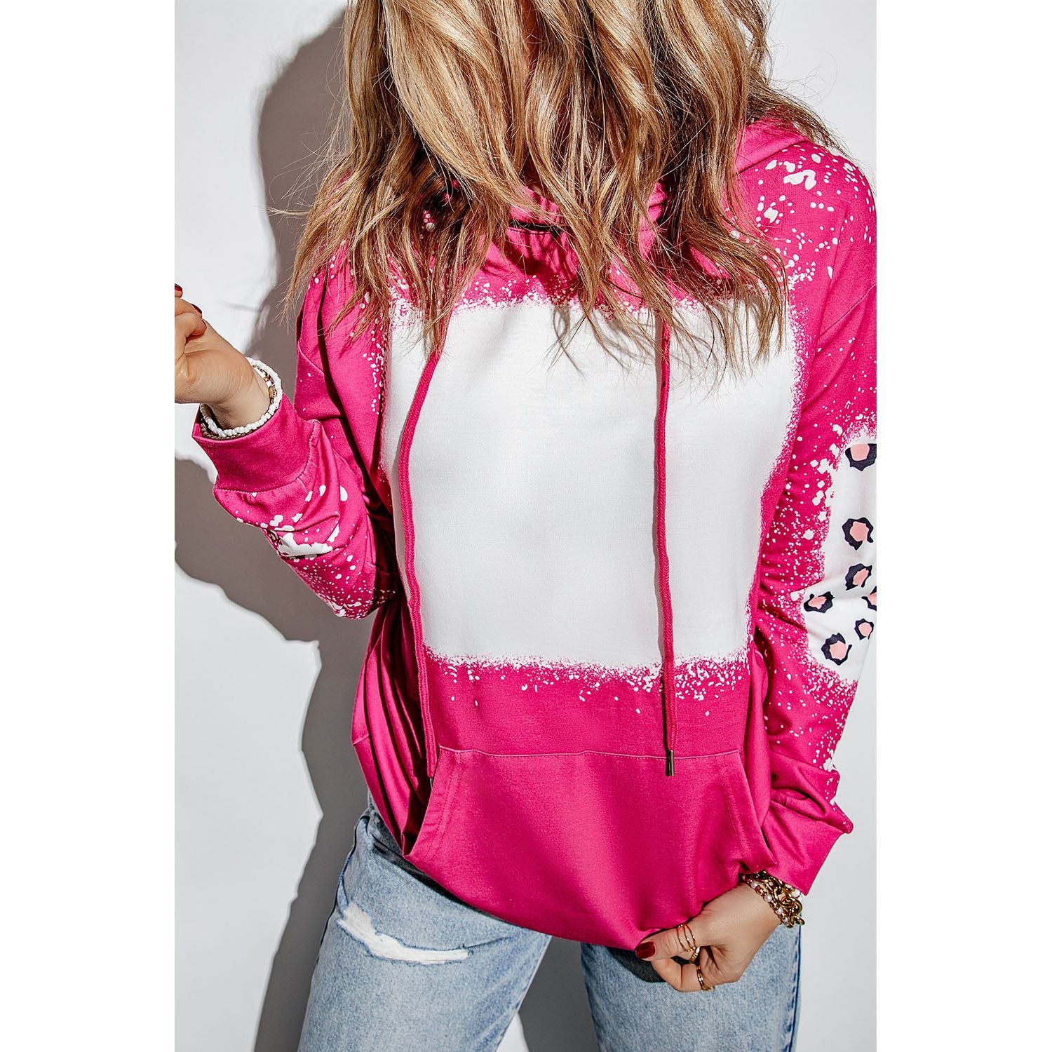 Drawstring Leopard Long Sleeve Hoodie
