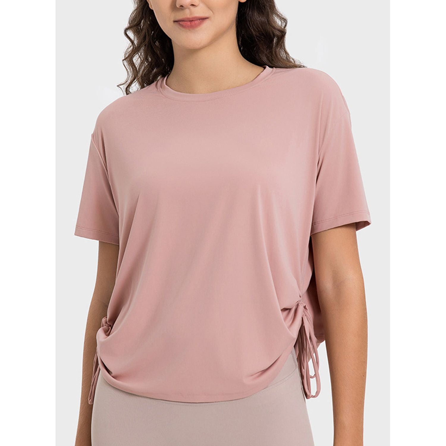Drawstring Round Neck Short Sleeve Active T-Shirt