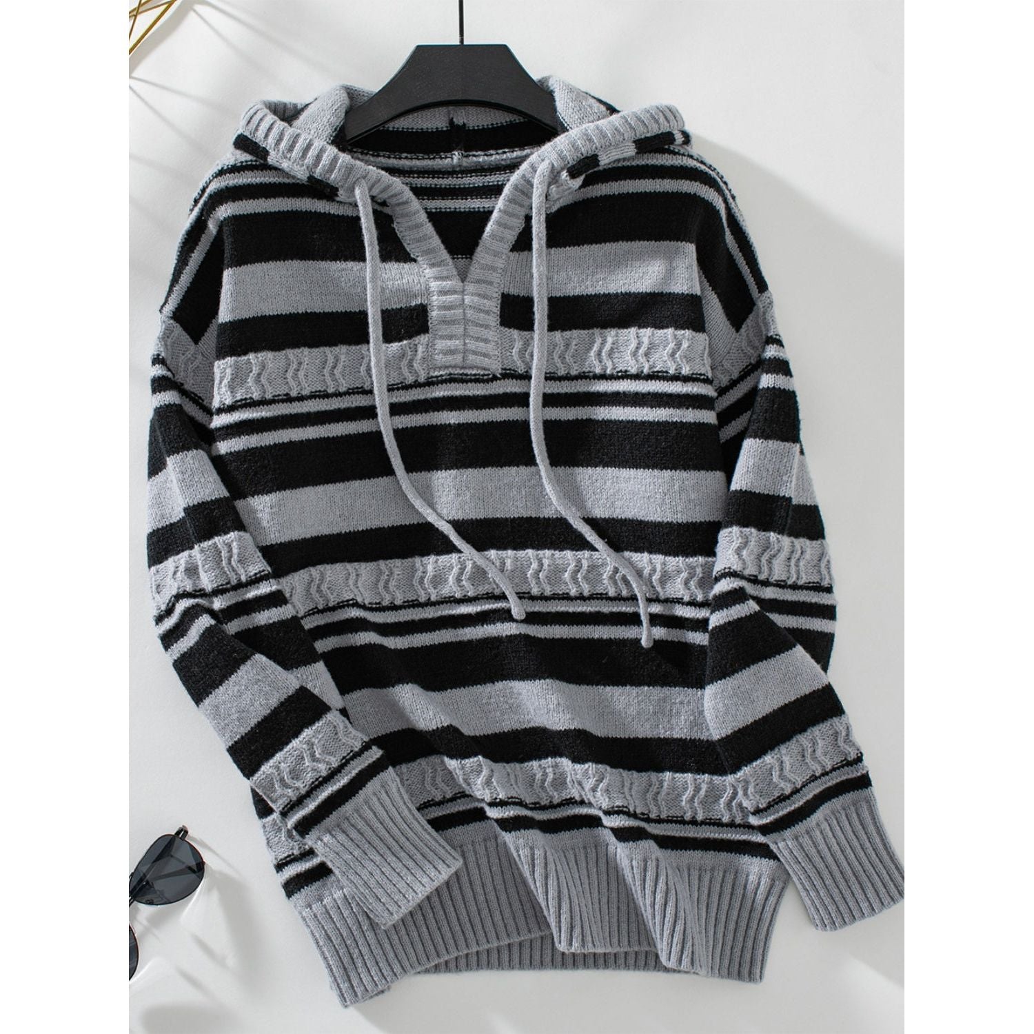 Drawstring Striped Long Sleeve Hooded Sweater