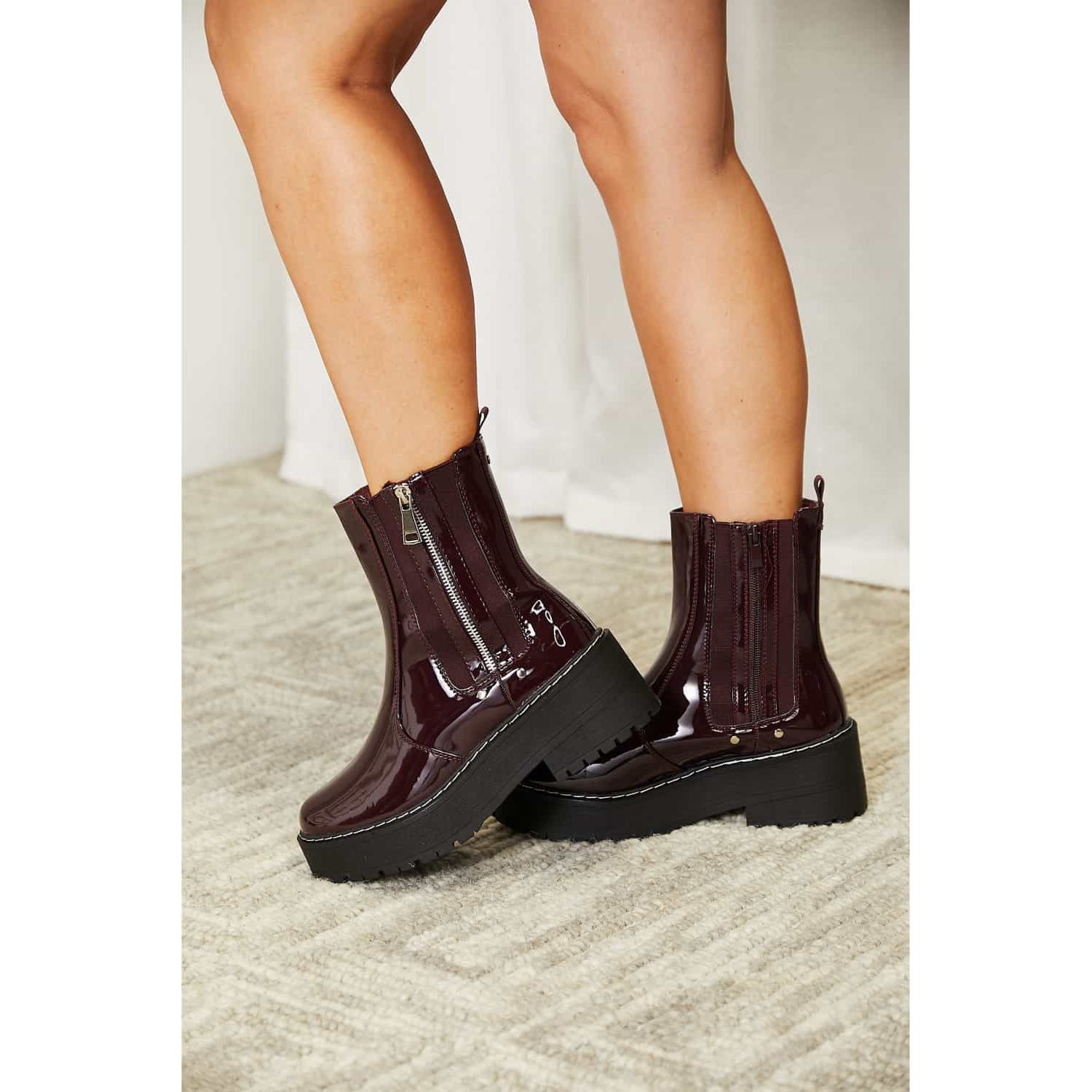 These side zip platform boots are a stylish and practical footwear option that combines fashion with functionality. The side zip closure adds convenience, while the sleek design and durable construction make them perfect for elevating any outfit and tackling any terrain with confidence.