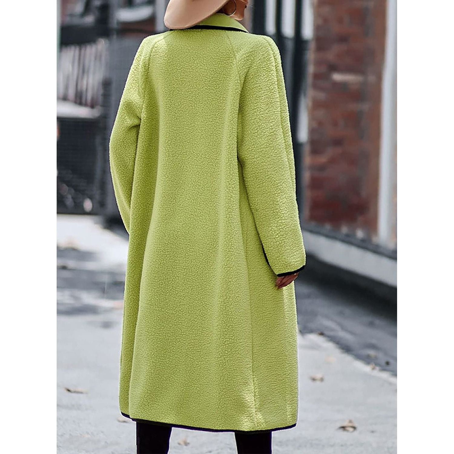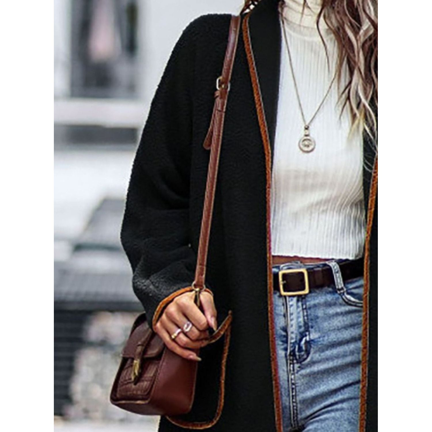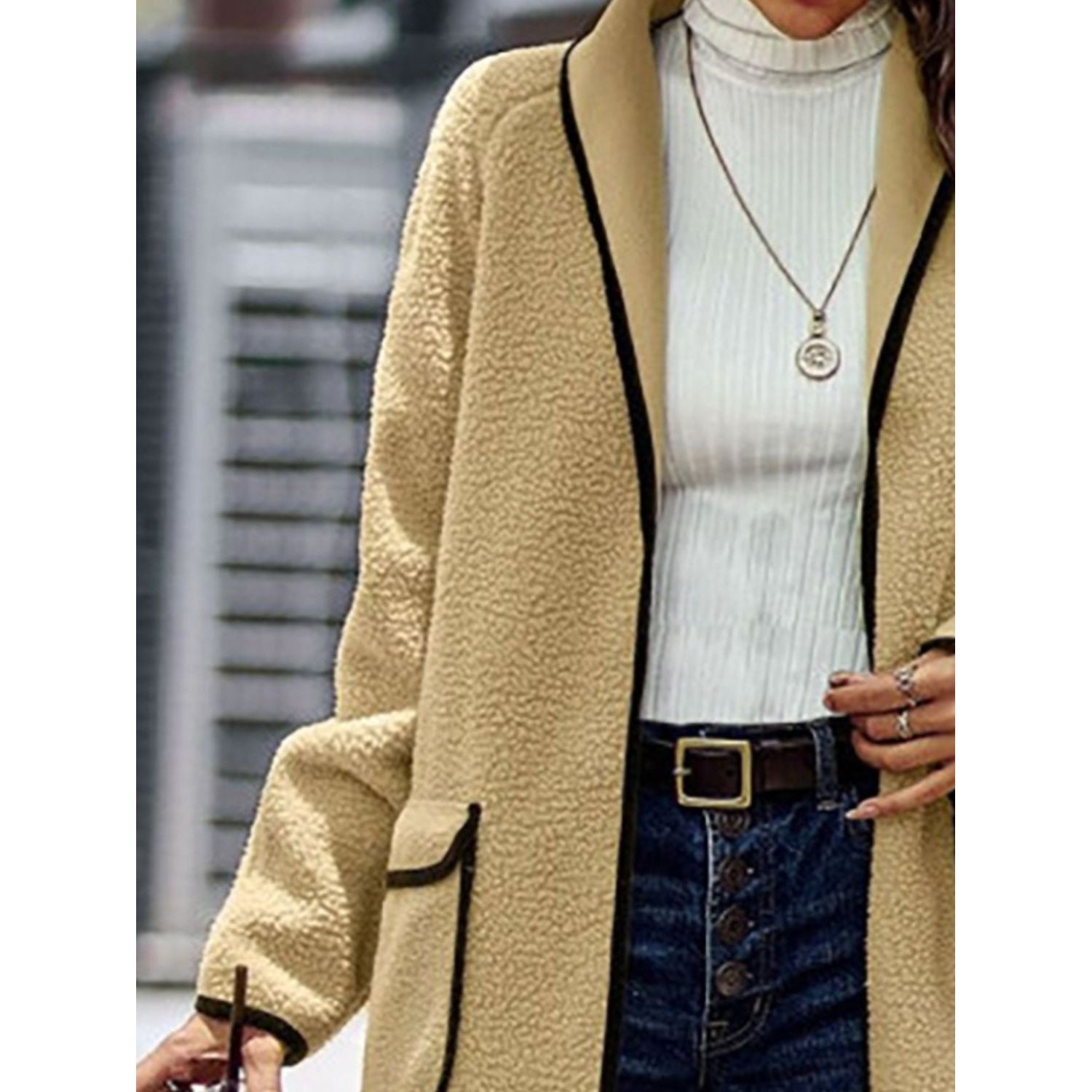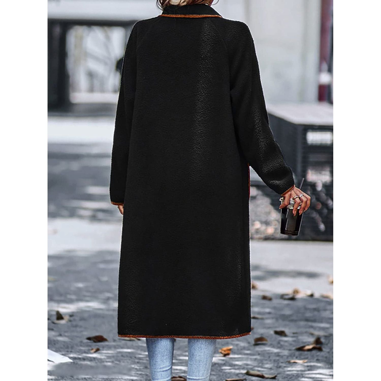 Full Size Contrast Trim Long Sleeve Coat with Pockets