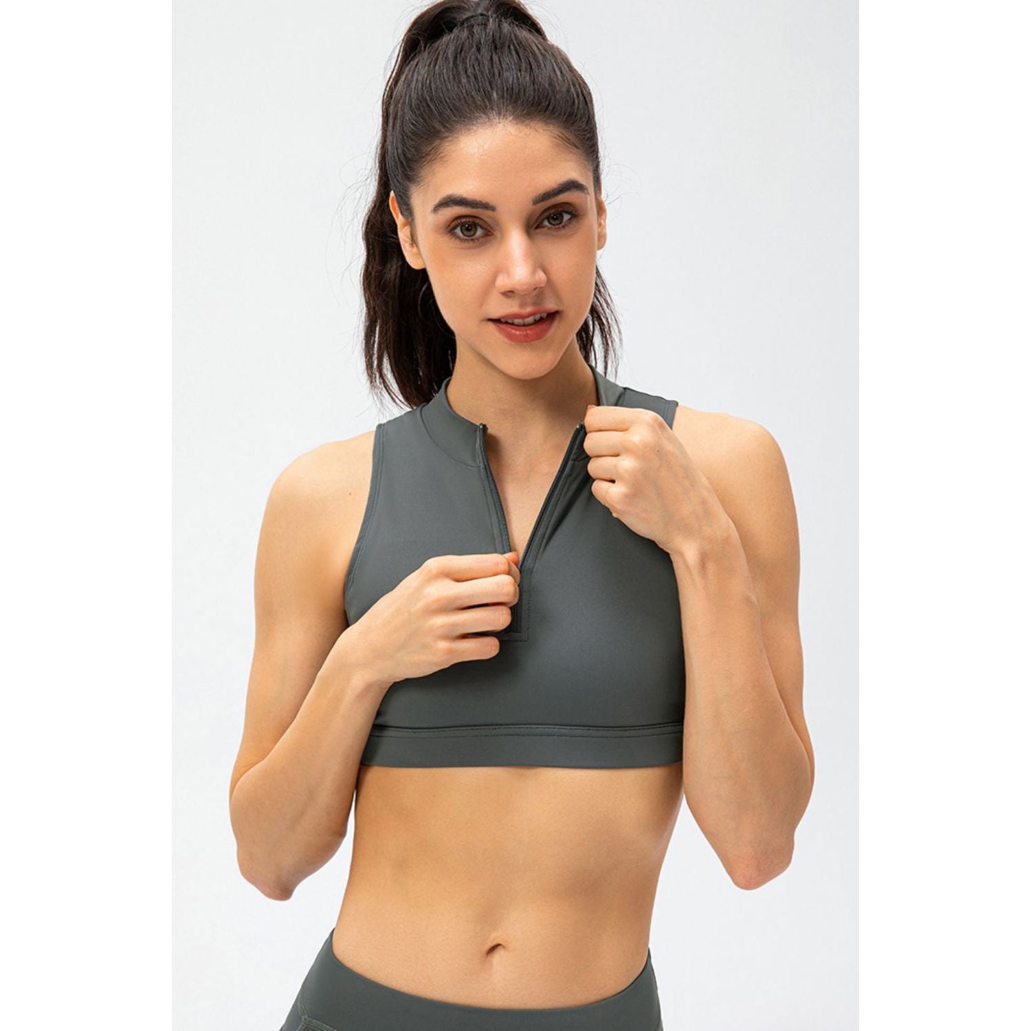 Full Size Cropped Cutout Back Zipper Front Active Tank Top