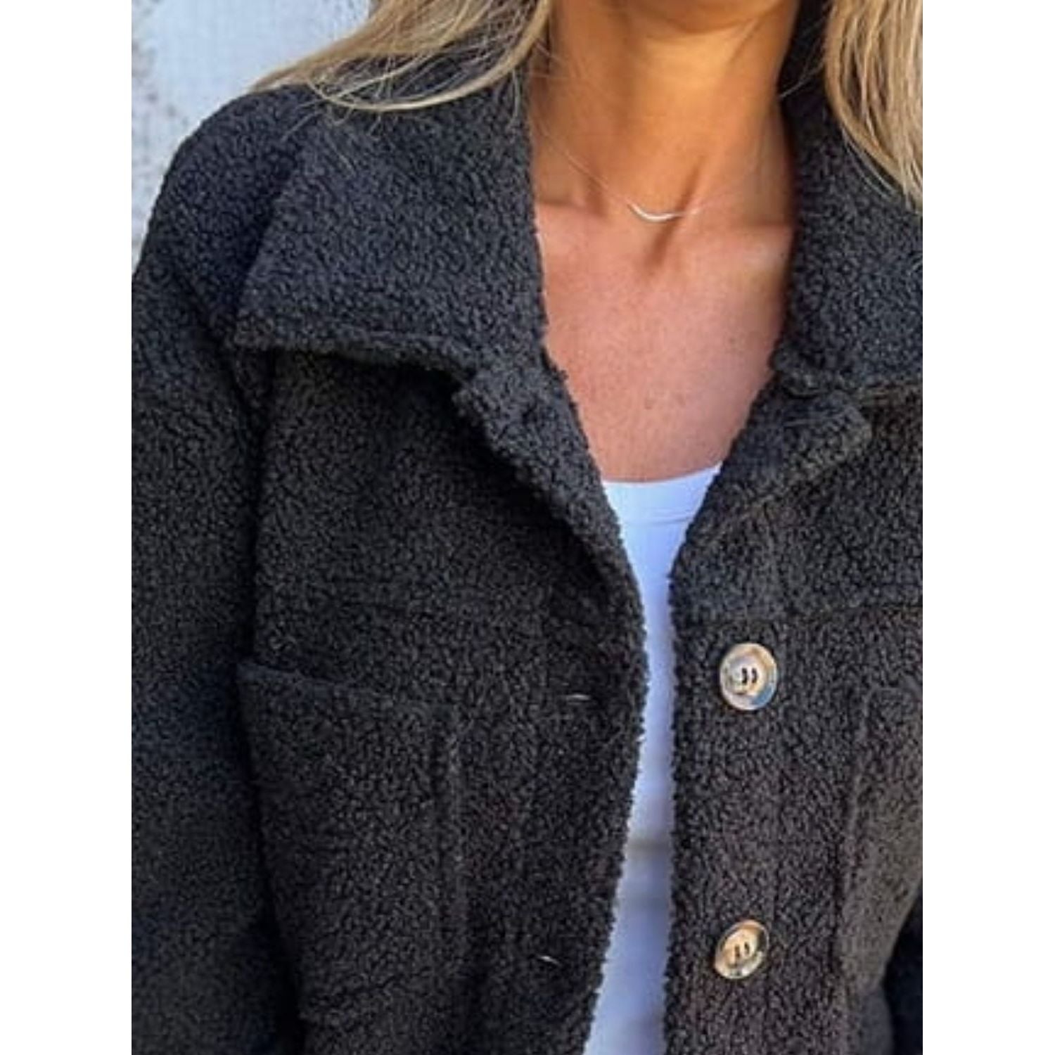 Full Size Fuzzy Button Up Drop Shoulder Jacket