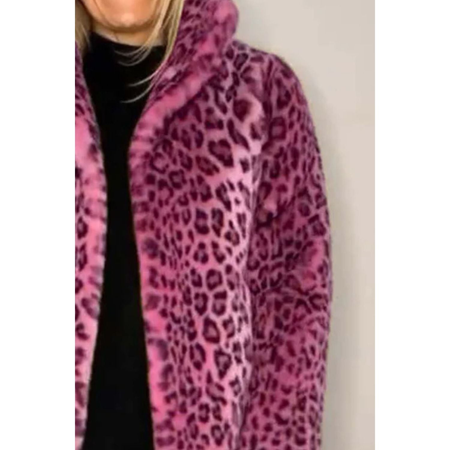 Full Size Leopard Furry Collared Neck Long Sleeve Coat