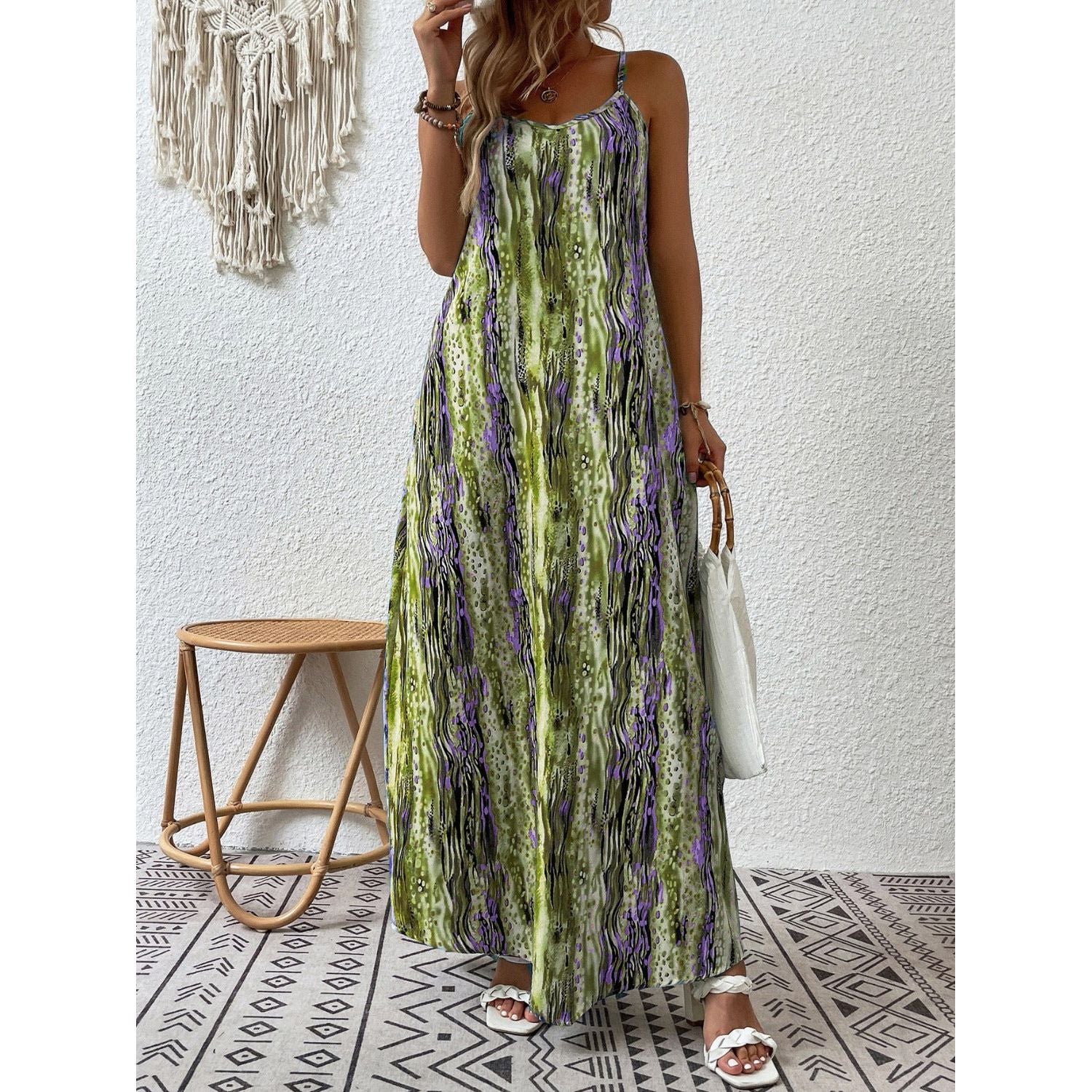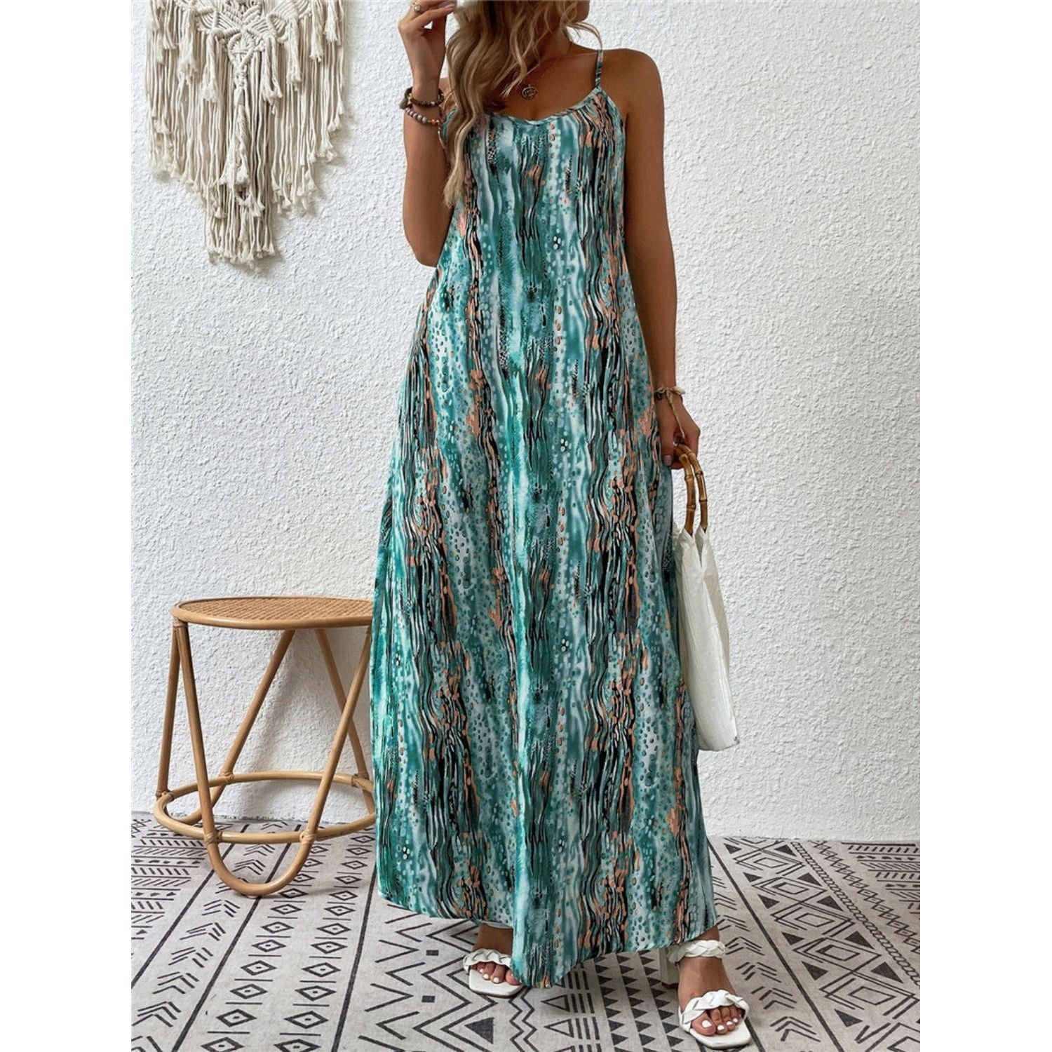 Full Size Printed Scoop Neck Maxi Cami Dress