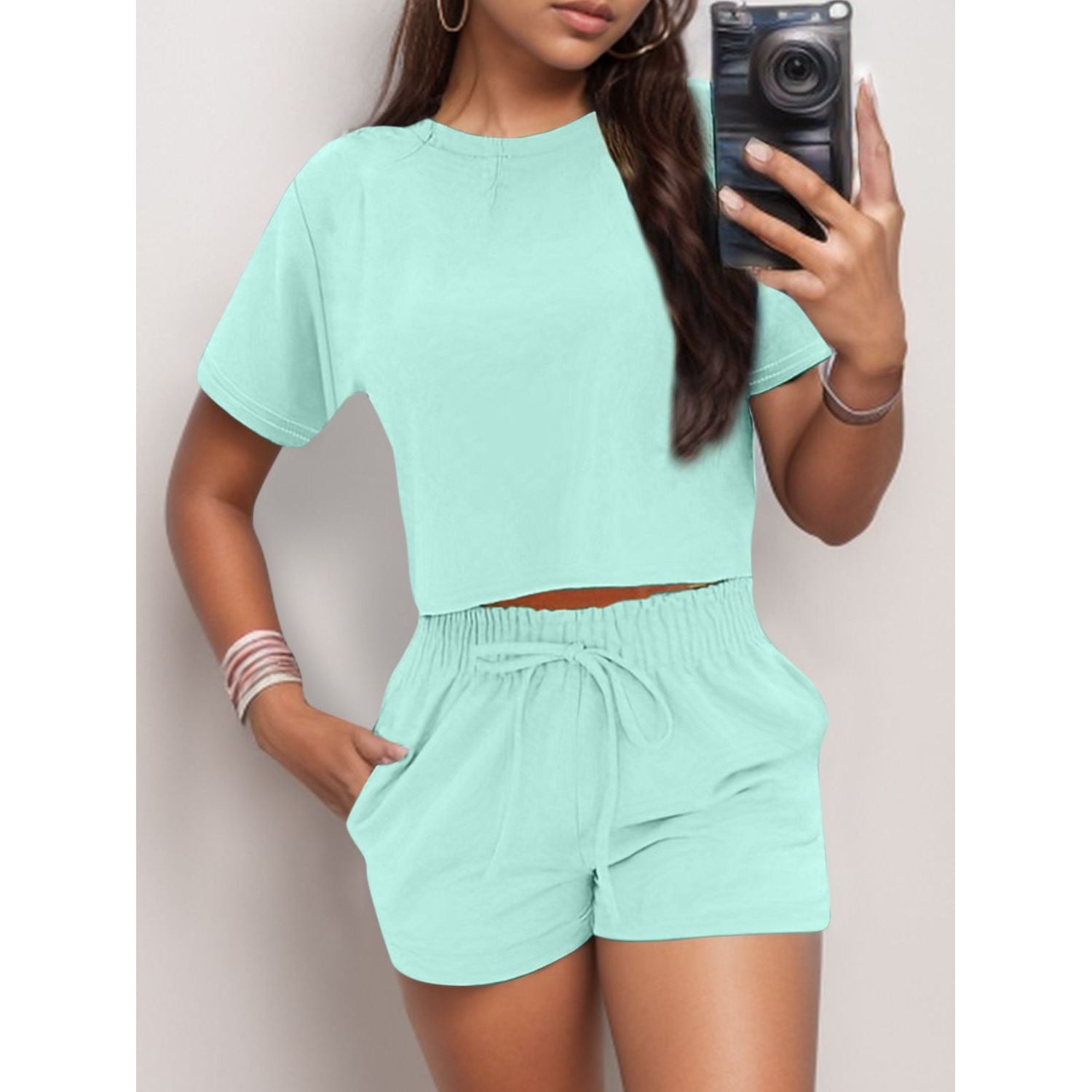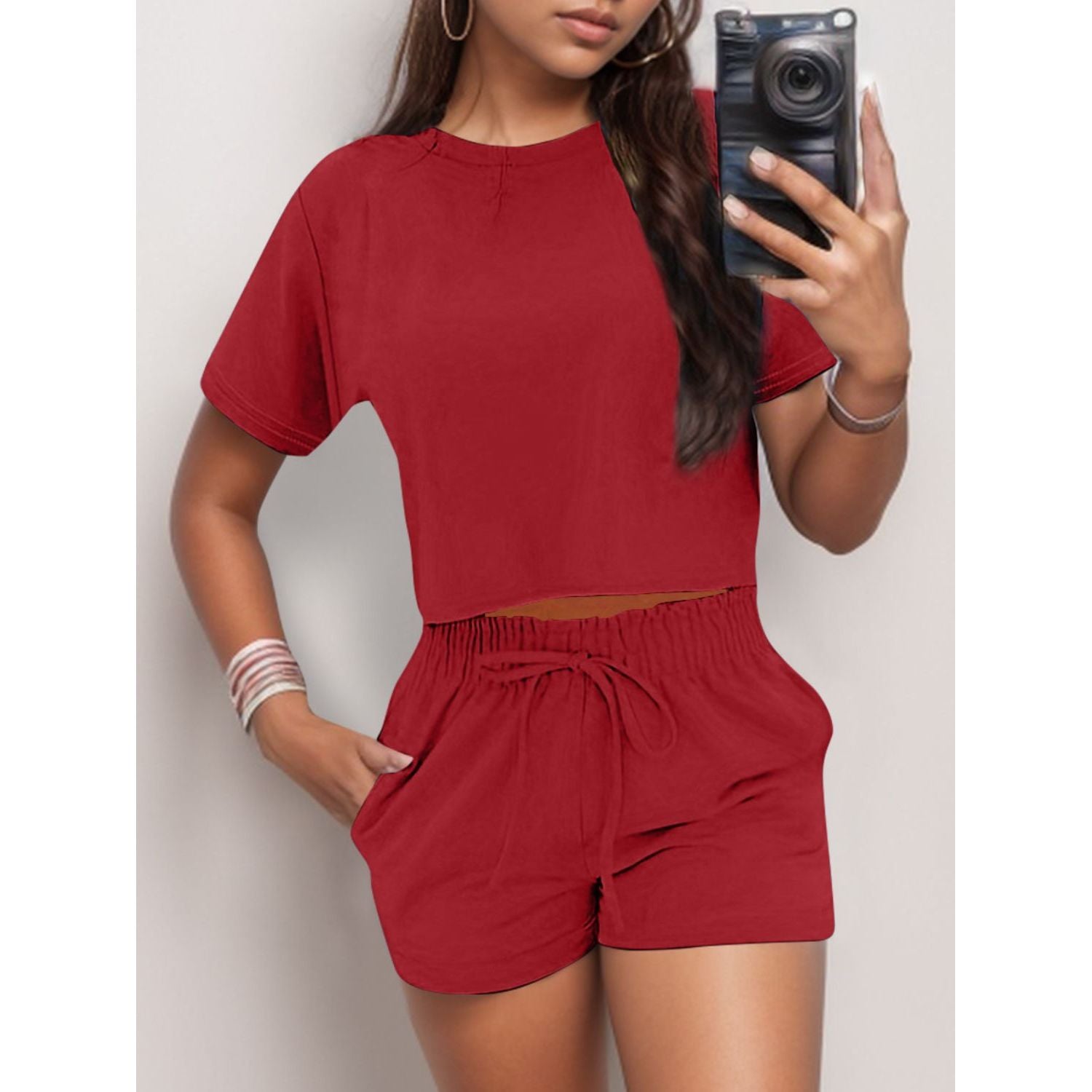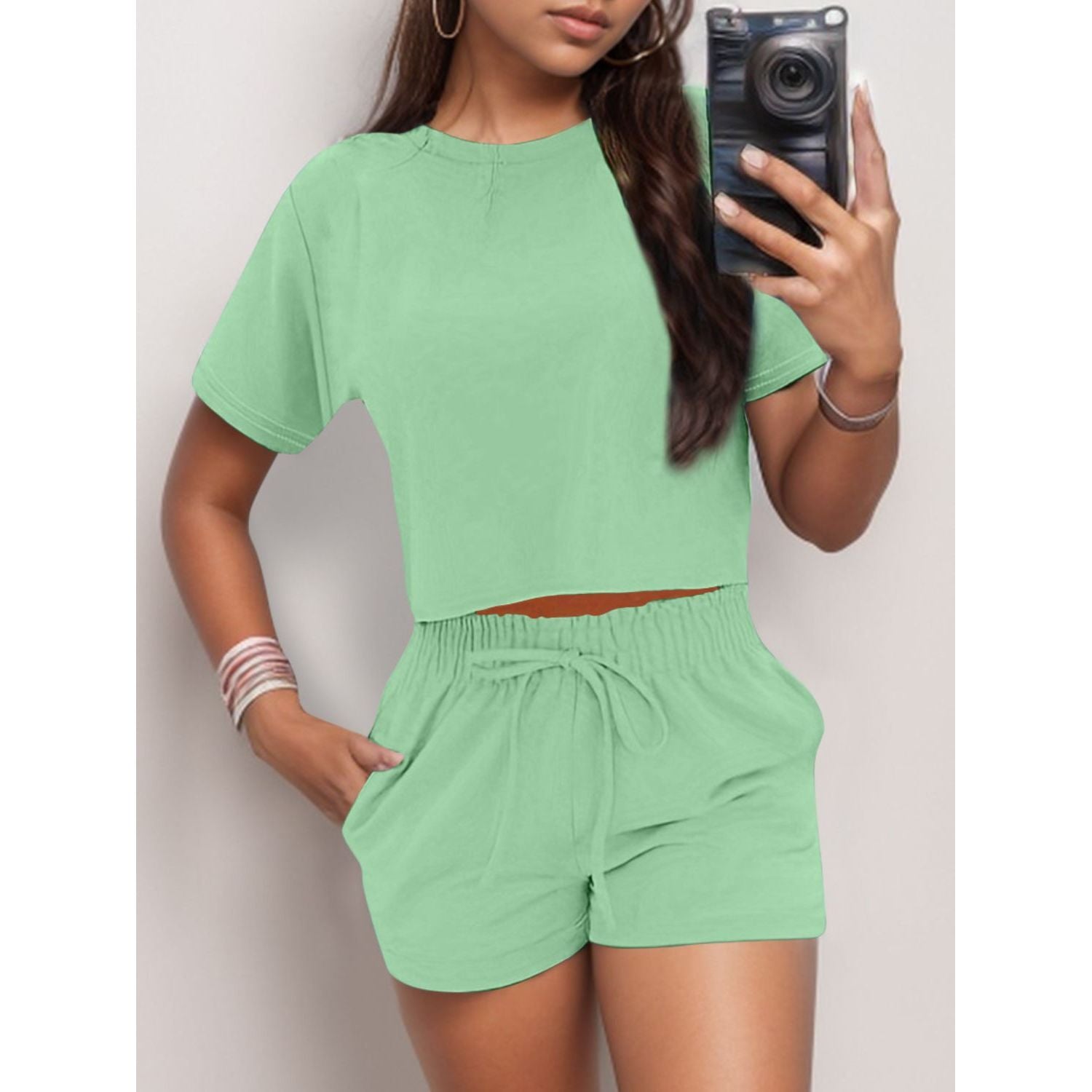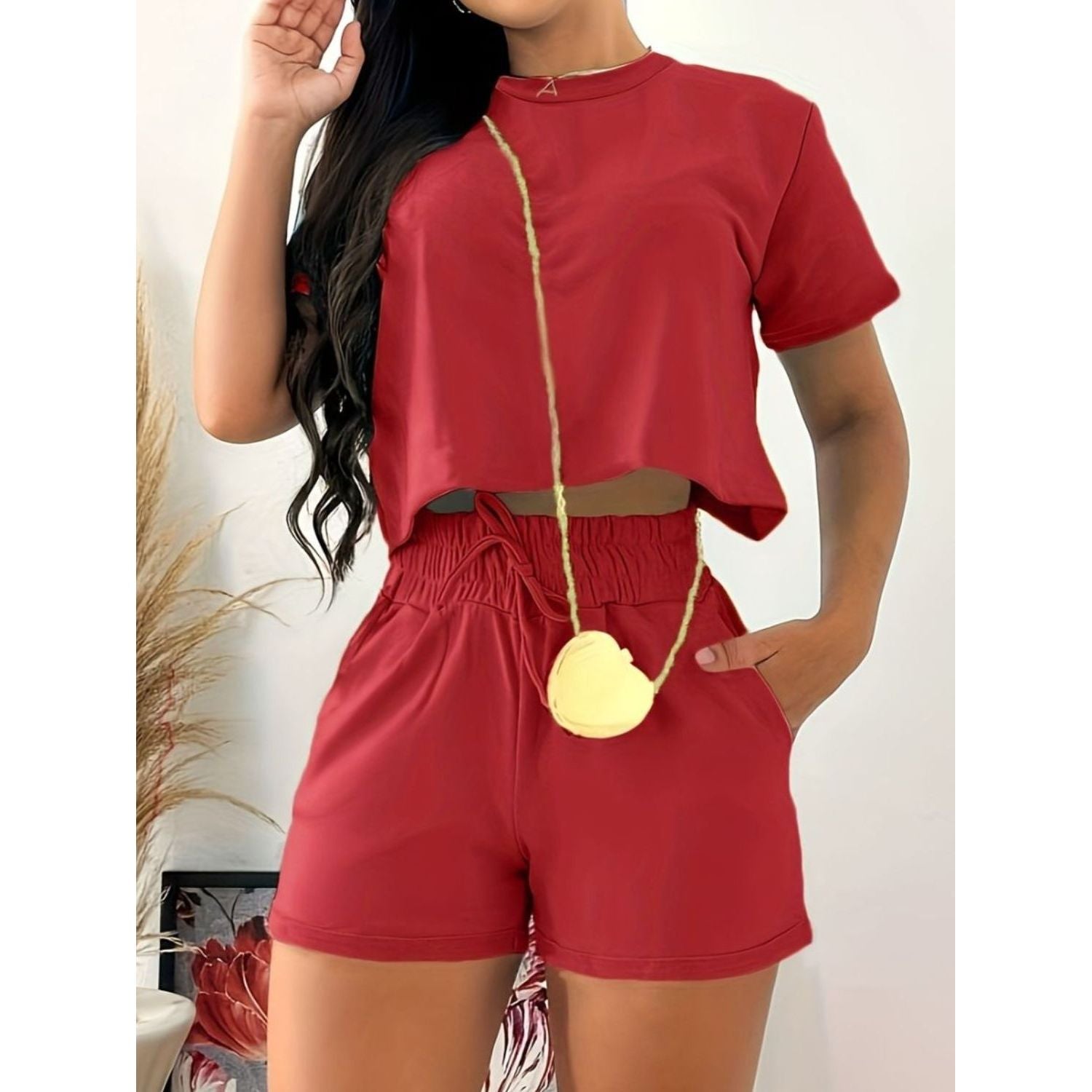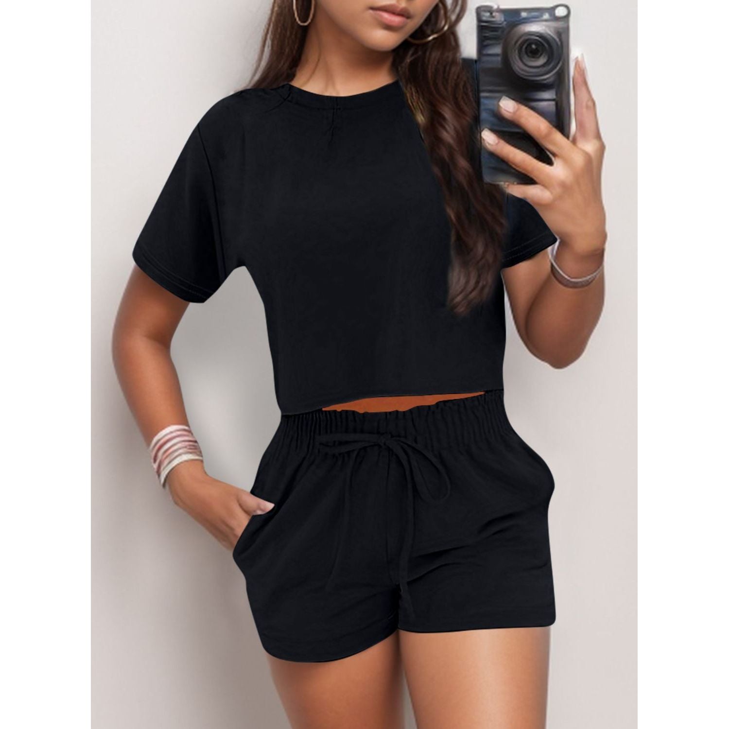 Full Size Round Neck Short Sleeve Top and Shorts Set