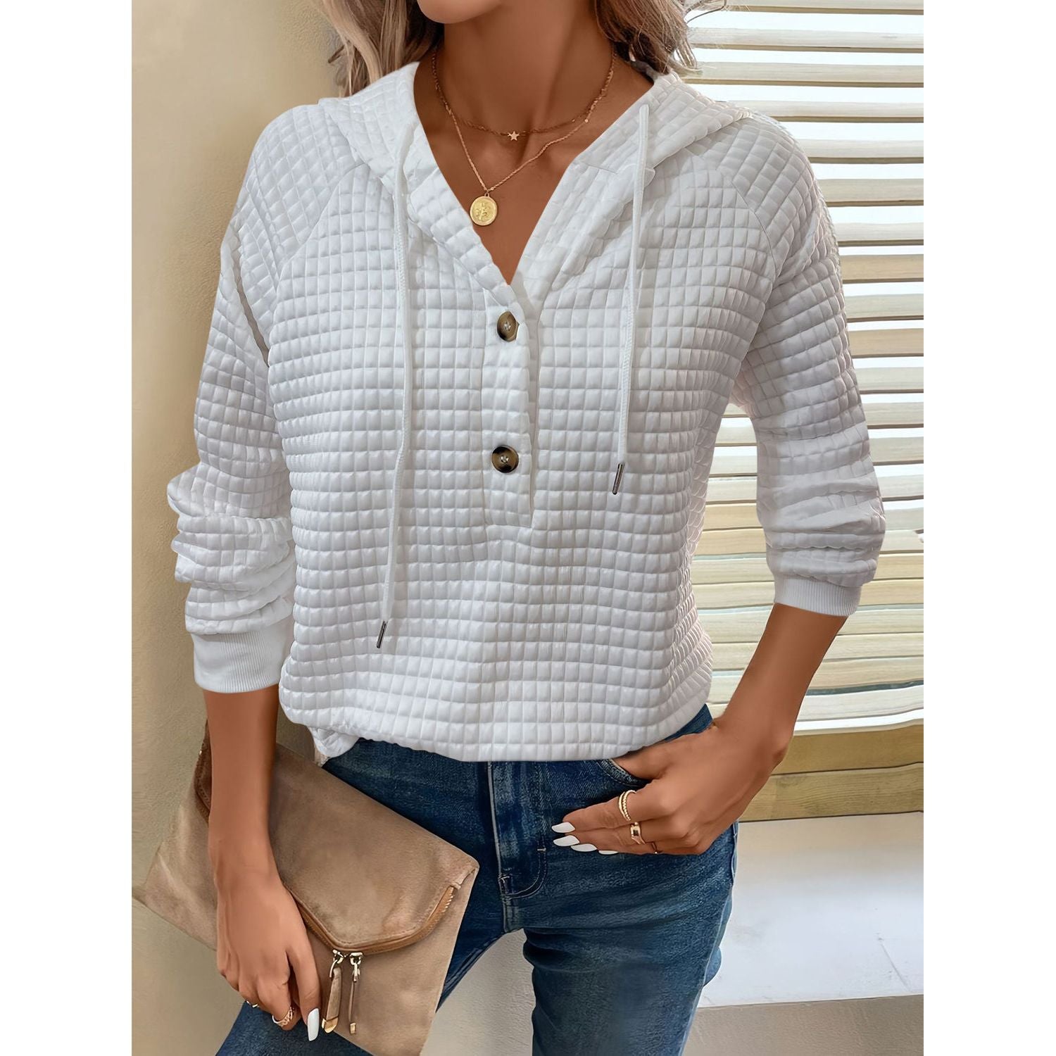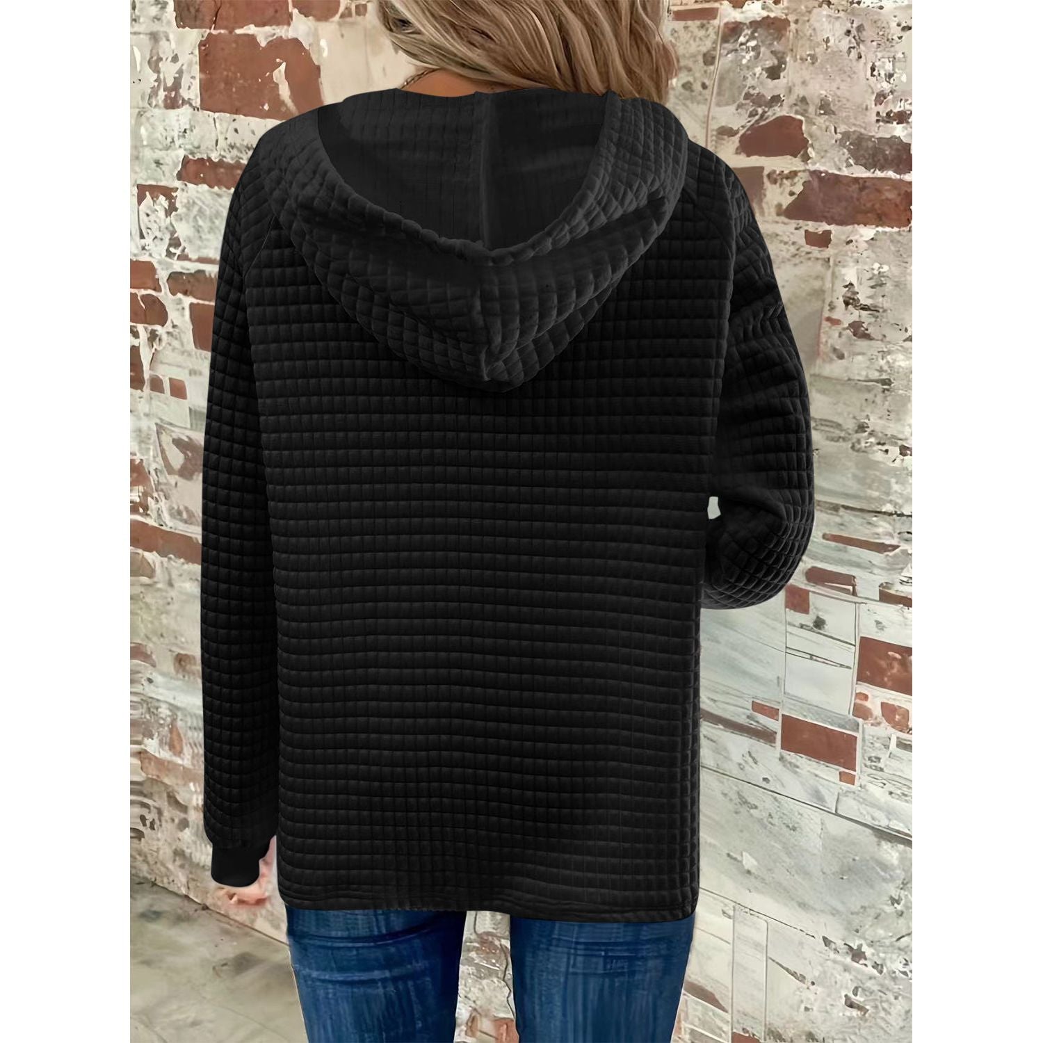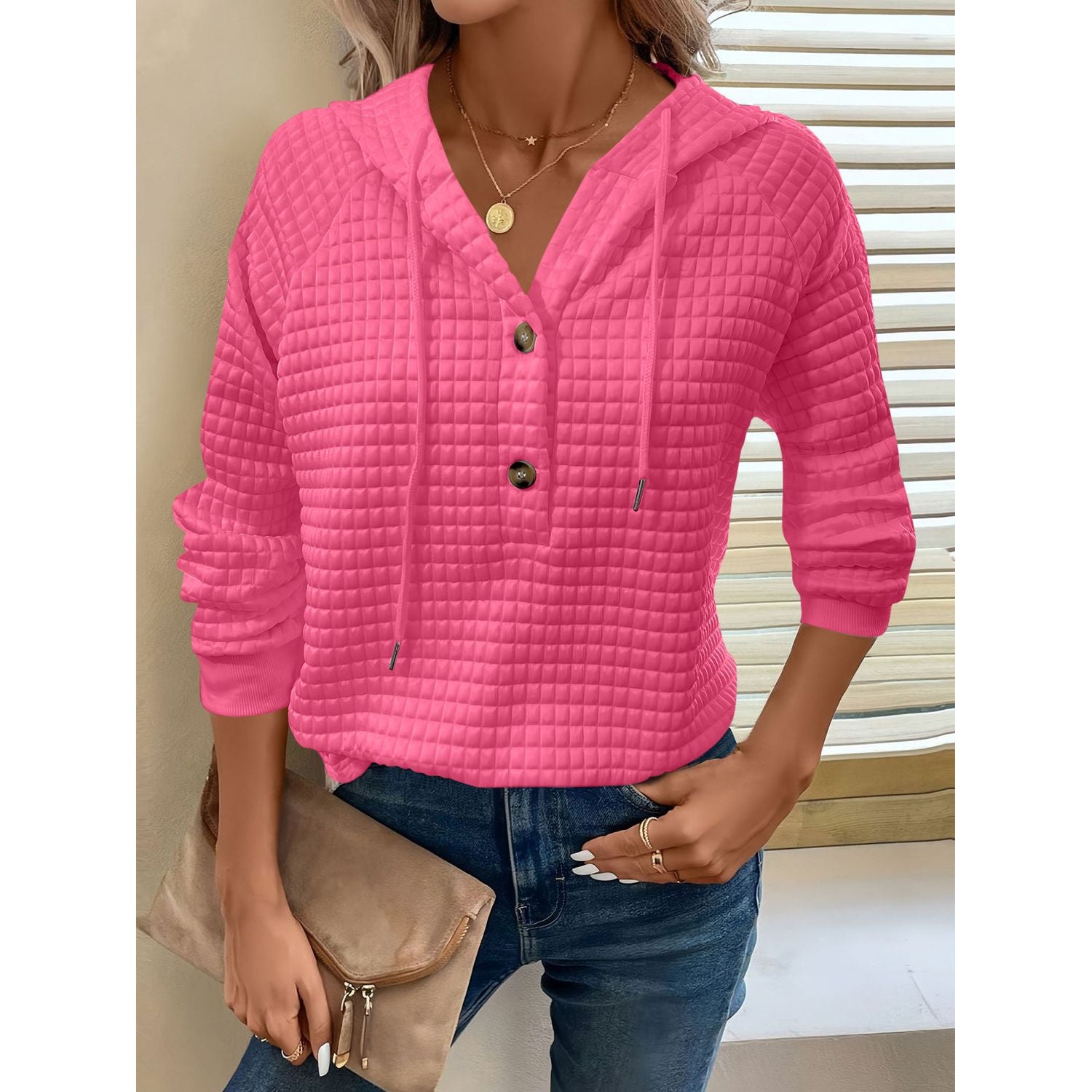 Full Size Texture Button Detail Drawstring Long Sleeve Hoodie