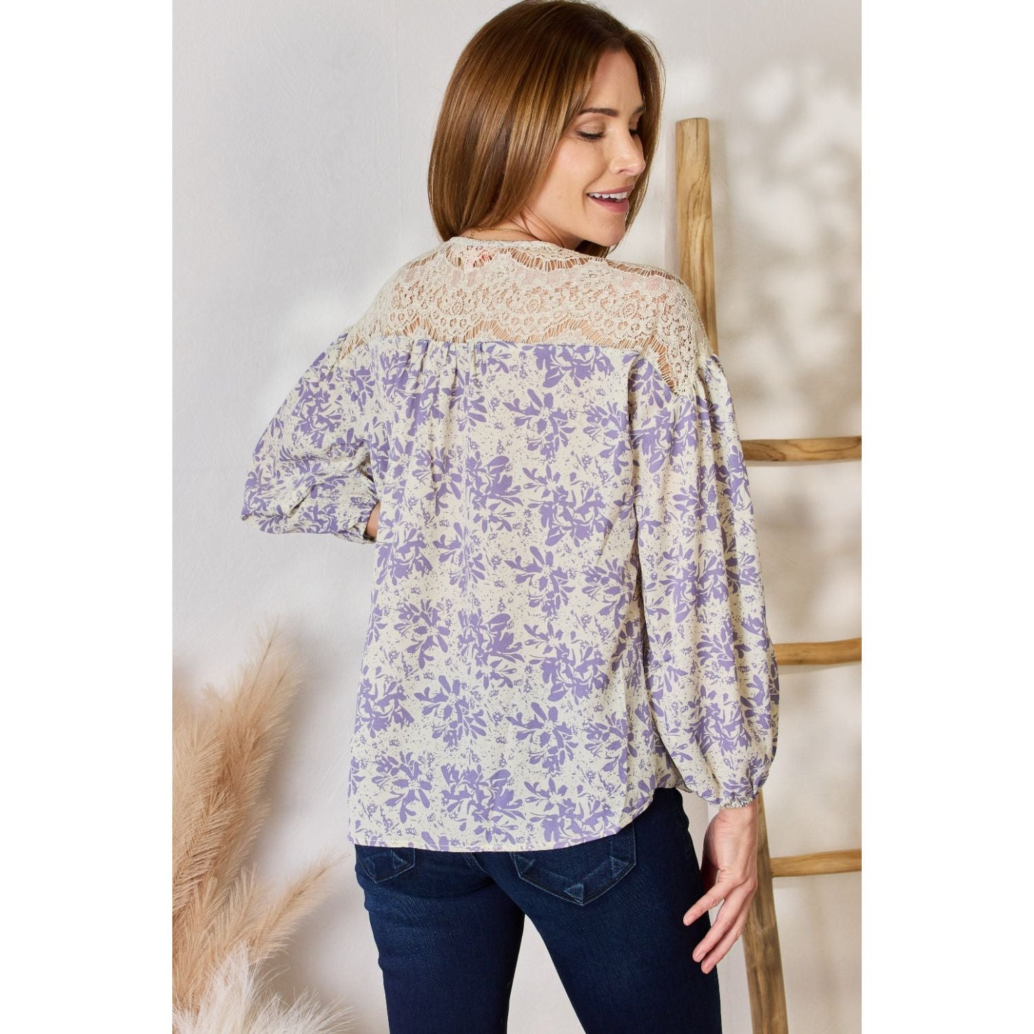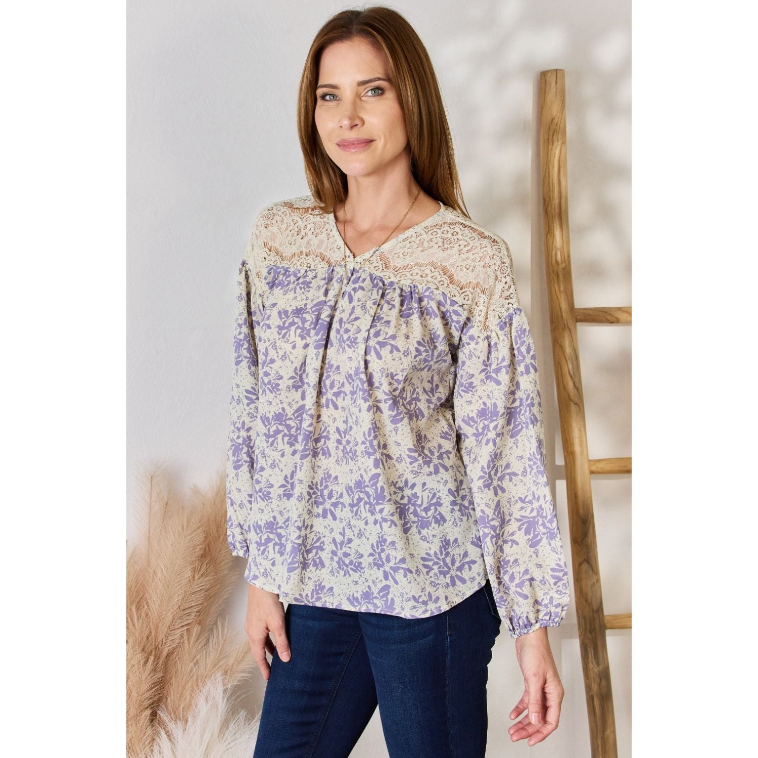Hailey & Co Full Size Lace Detail Printed Blouse