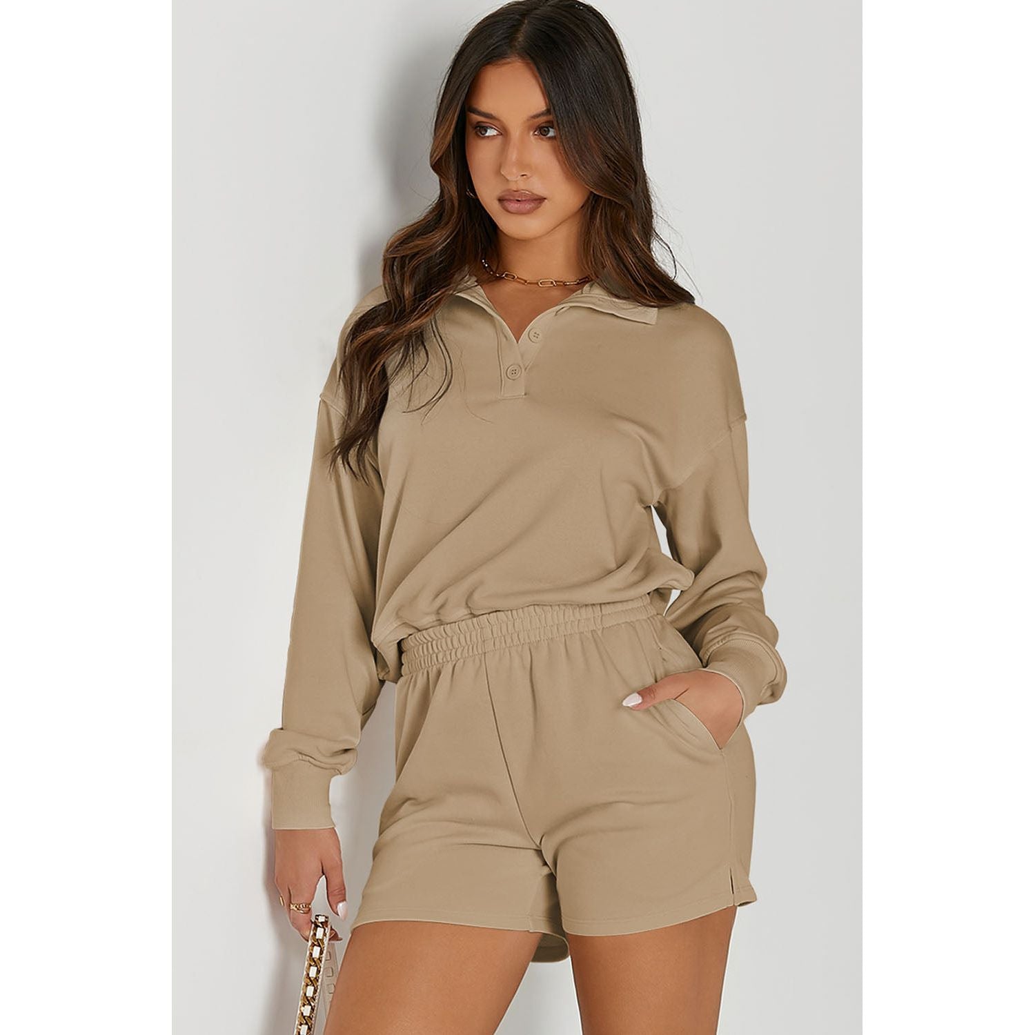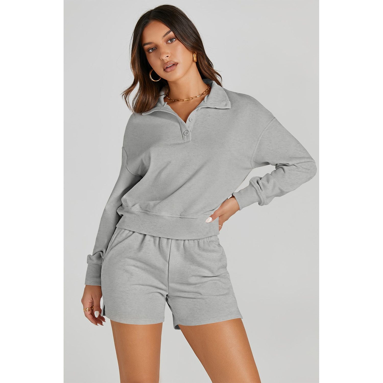 Half Button Sweatshirt and Shorts Active Set