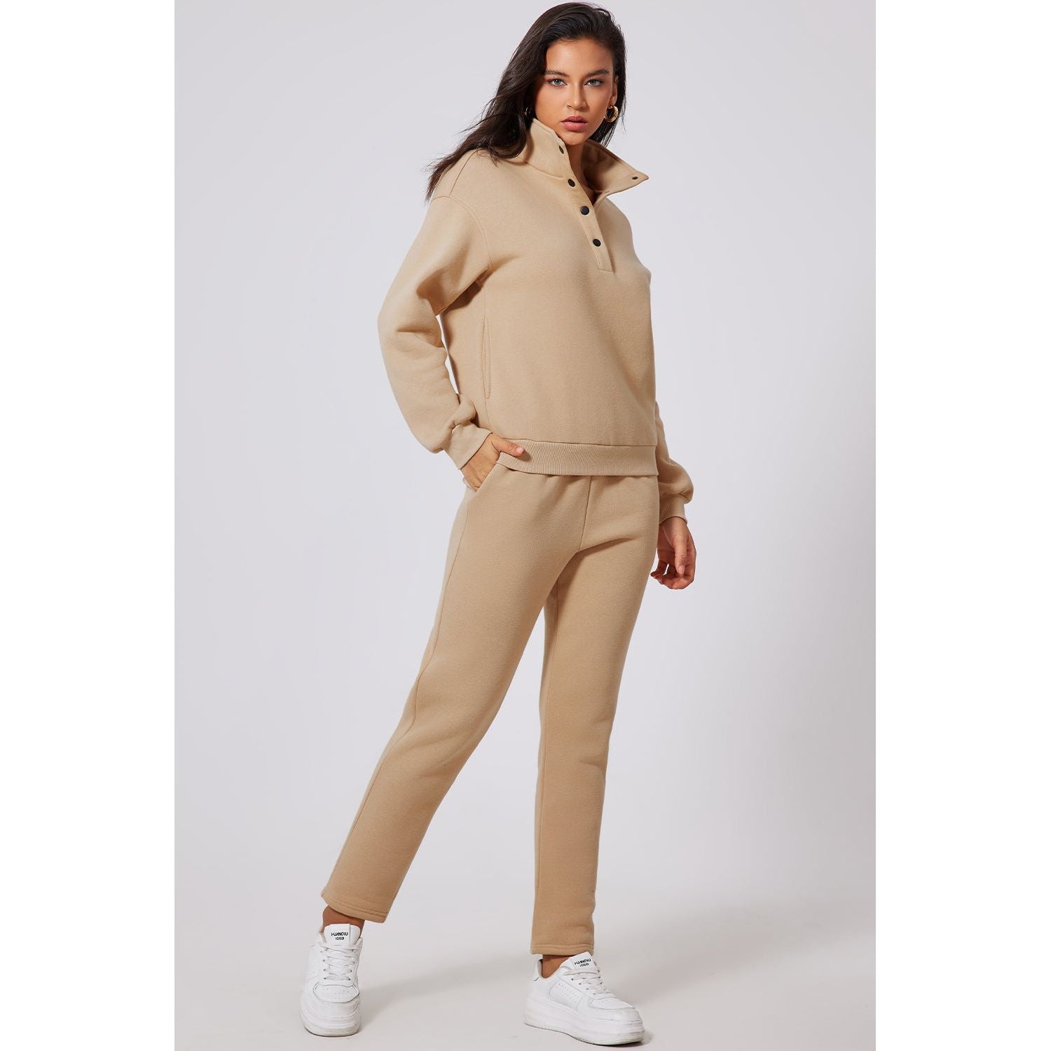 Half Snap Turtleneck Top and Pants Active Set