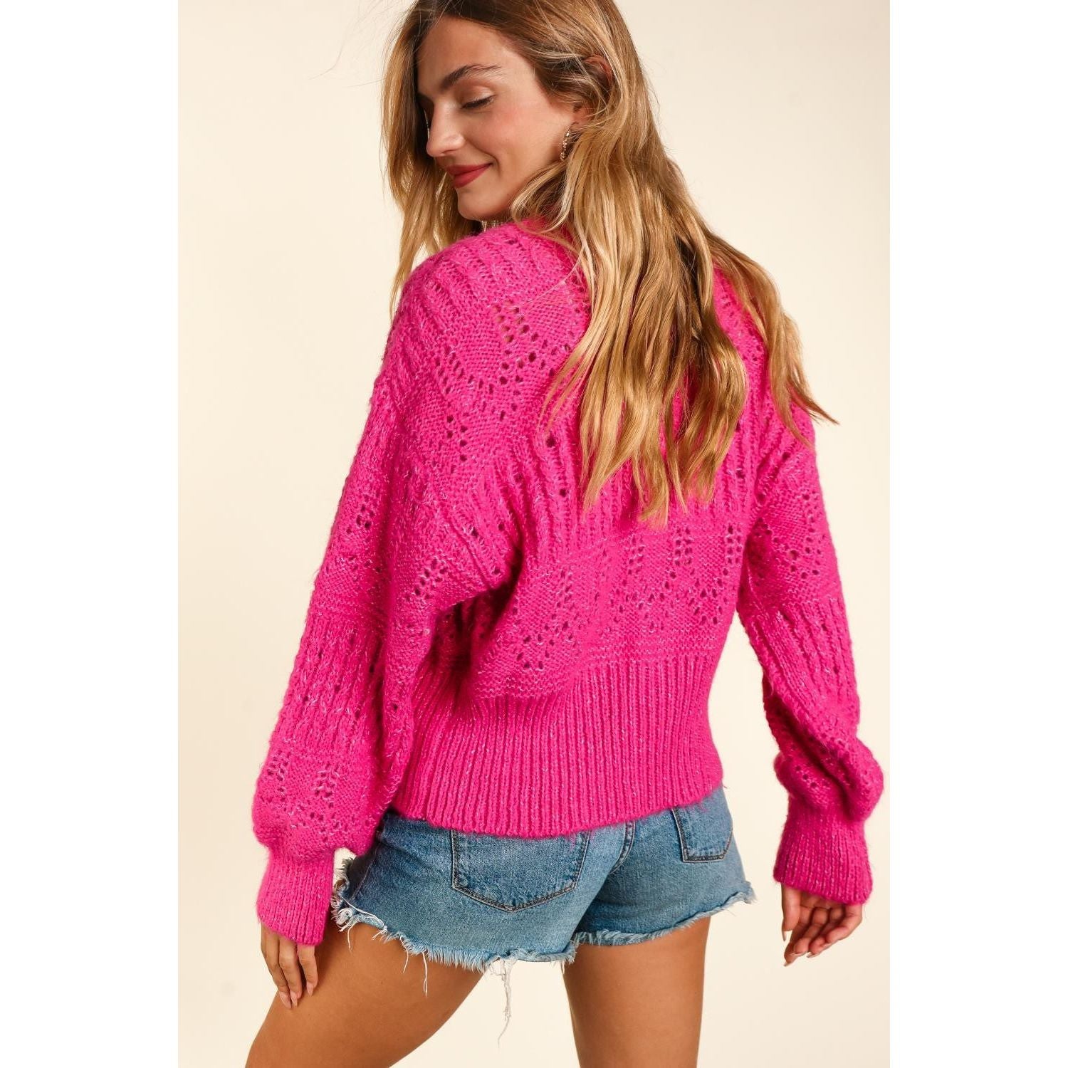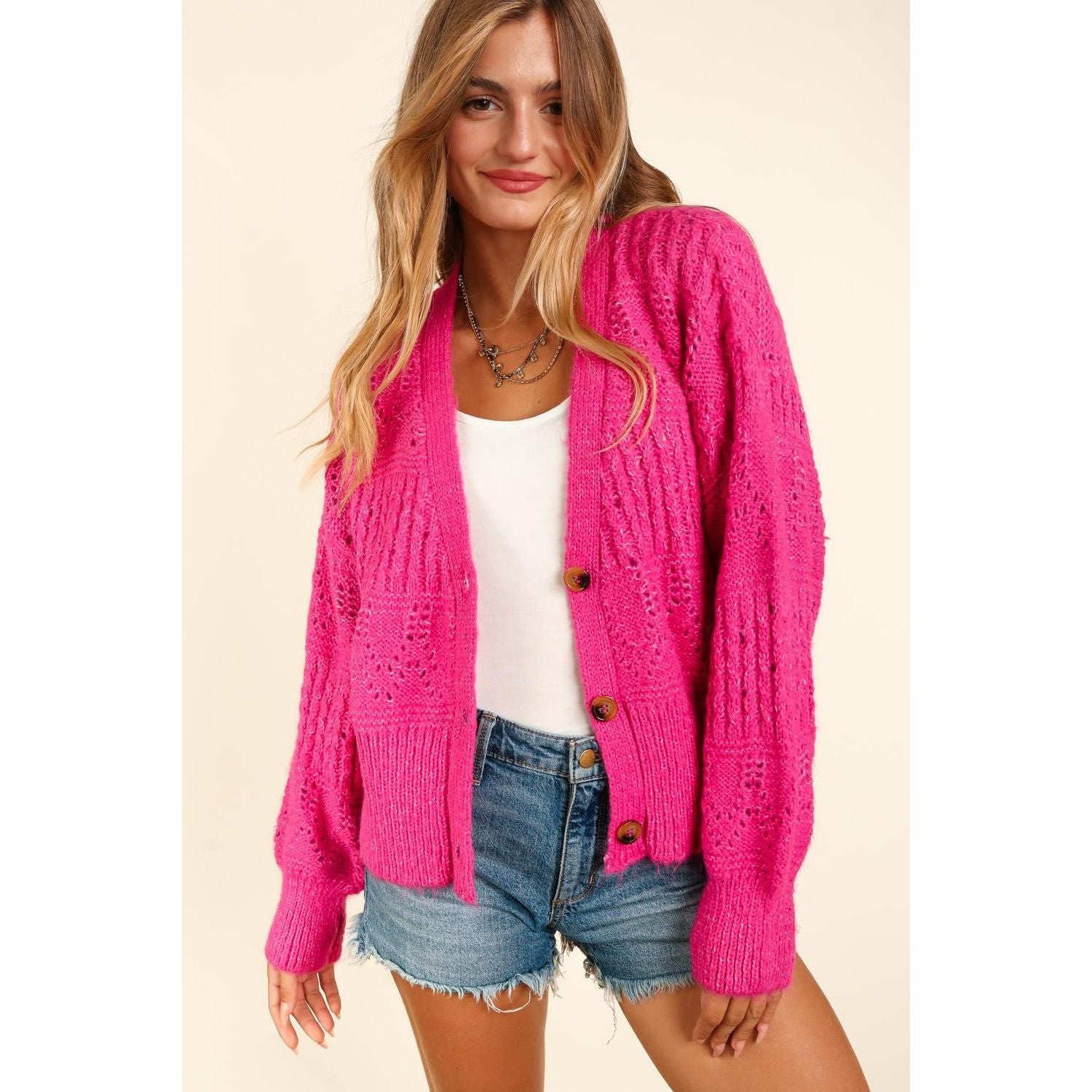 The Button Down Crop Long Sleeve Cardigan is a trendy and versatile piece that adds a touch of chic style to any outfit. With its cropped length and button-down front, this cardigan is perfect for layering over your favorite tops or dresses. The long sleeves provide a cozy and stylish touch, making it a great choice for both casual and dressed-up looks. The cropped silhouette adds a modern and flattering twist to your ensemble. Elevate your wardrobe with this fashionable cardigan that can be dressed up or down for any occasion. Pair it with high-waisted jeans or a skirt for a contemporary and on-trend outfit.