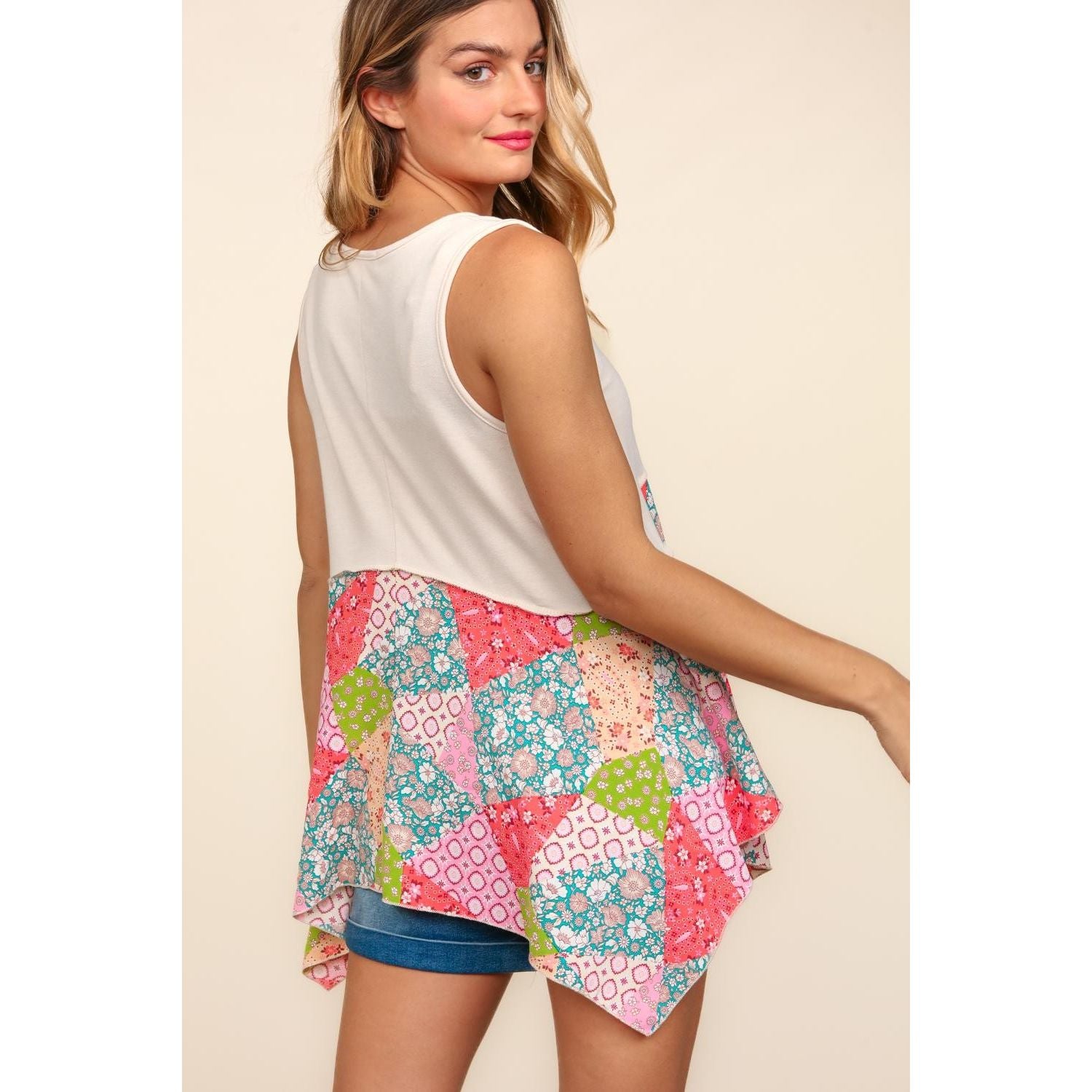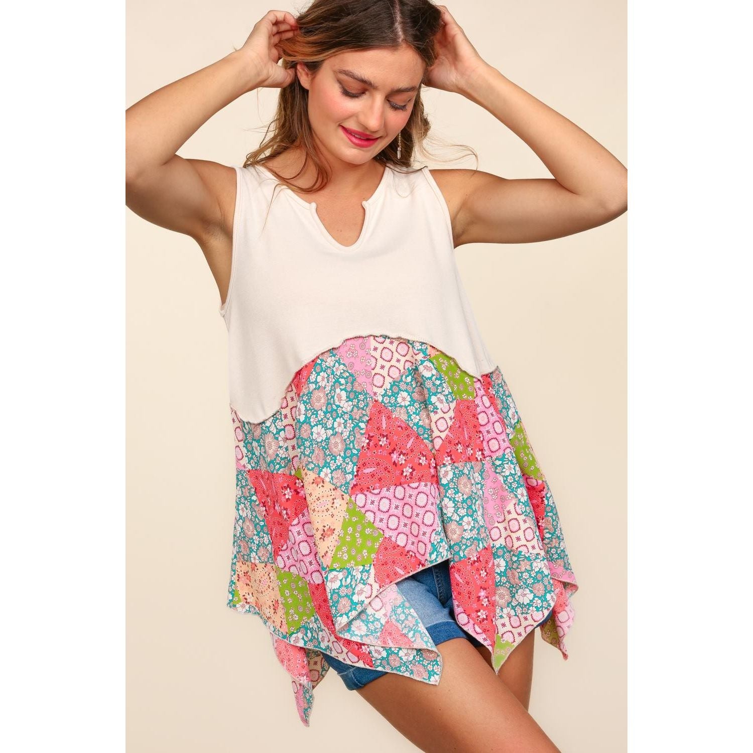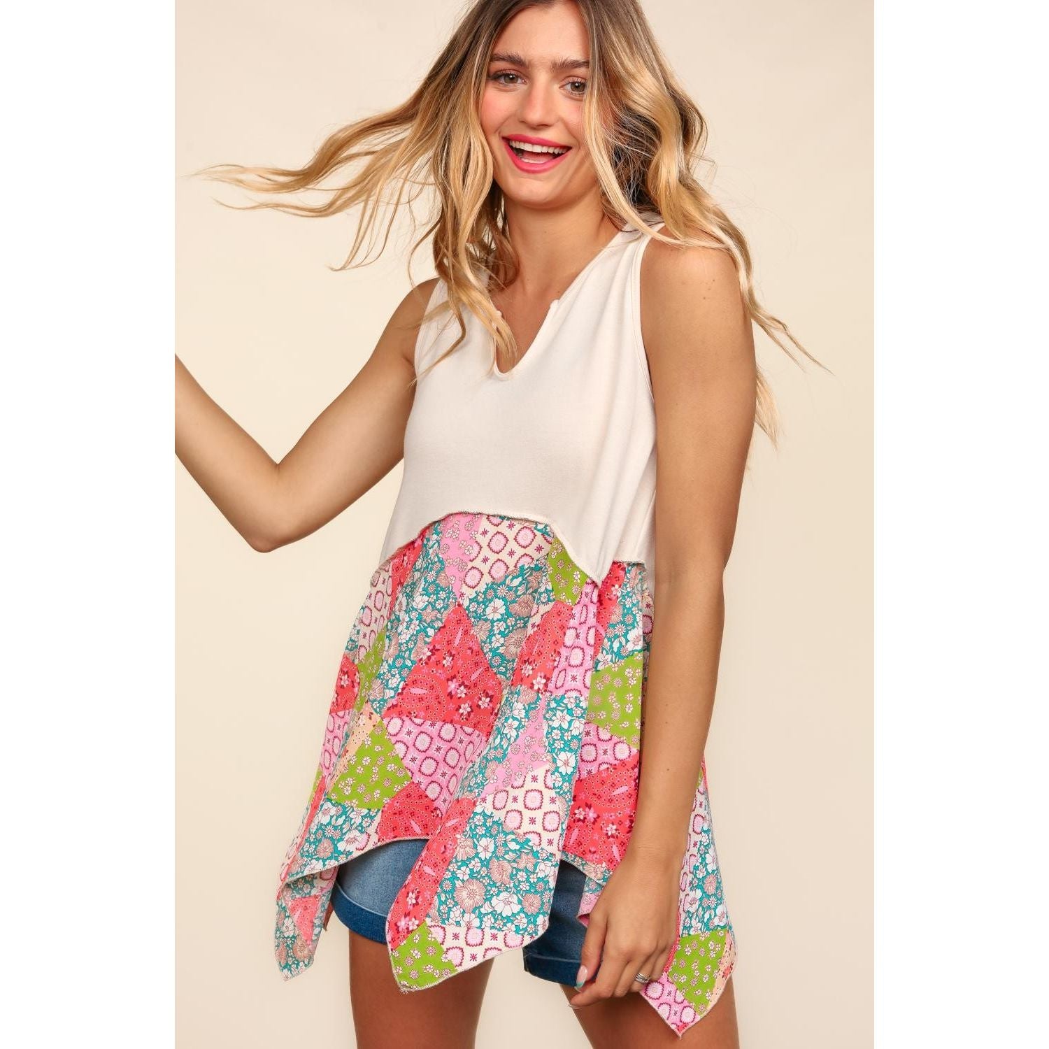 Haptics Full Size Patchwork Shark Bite Color Block Tank