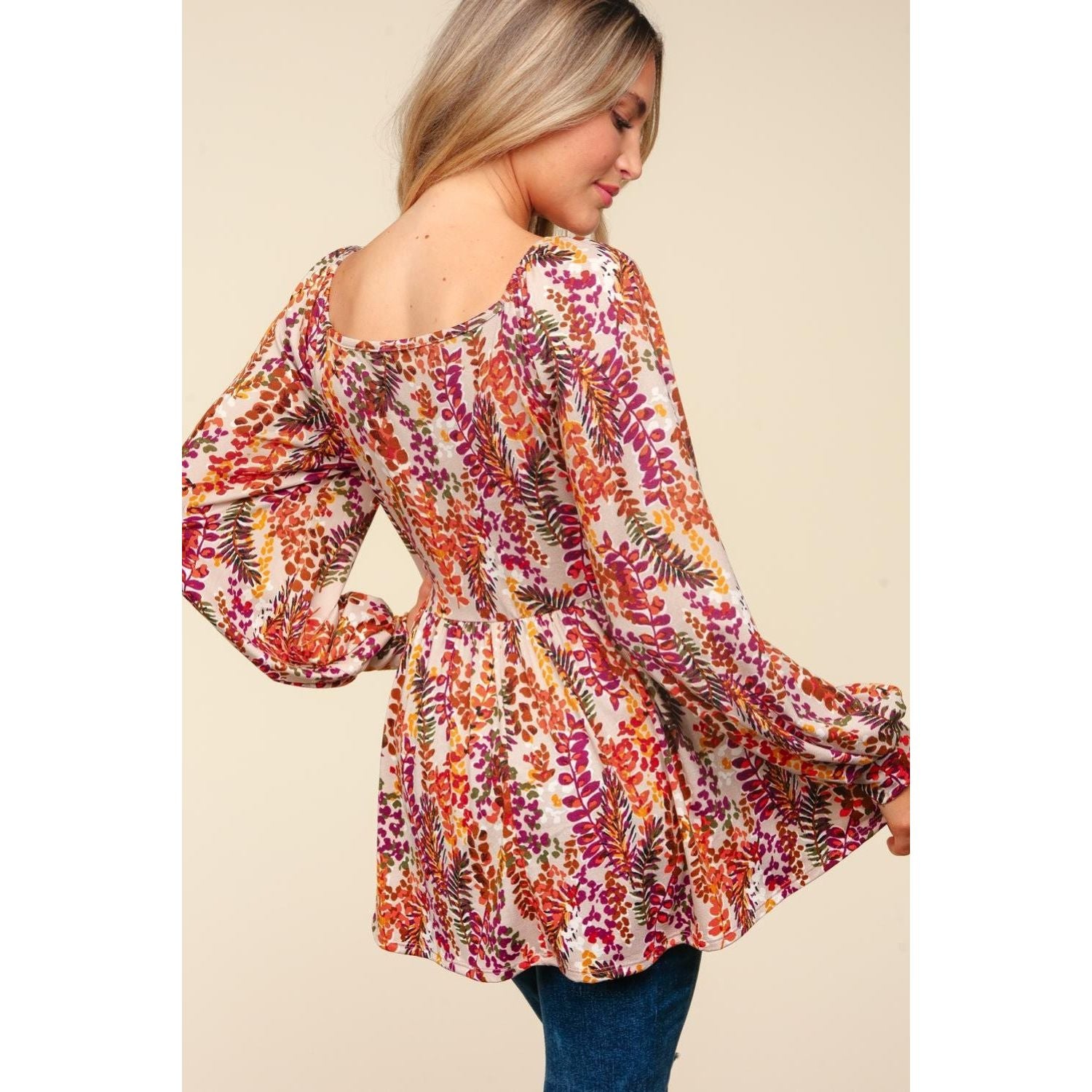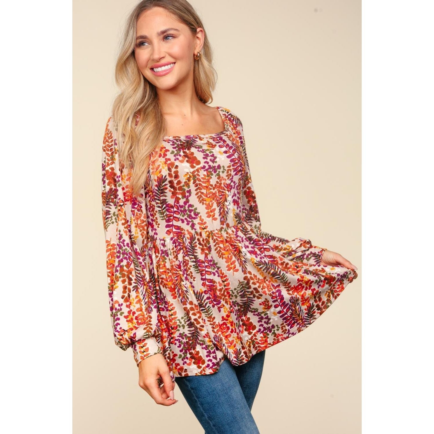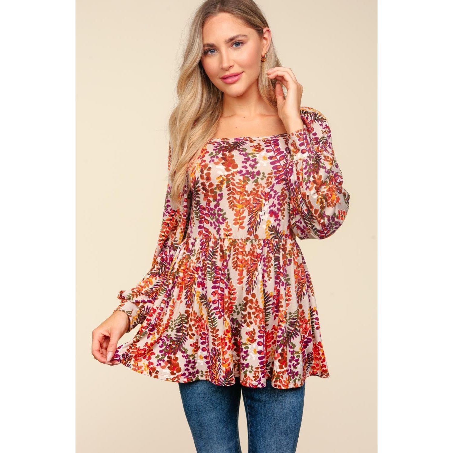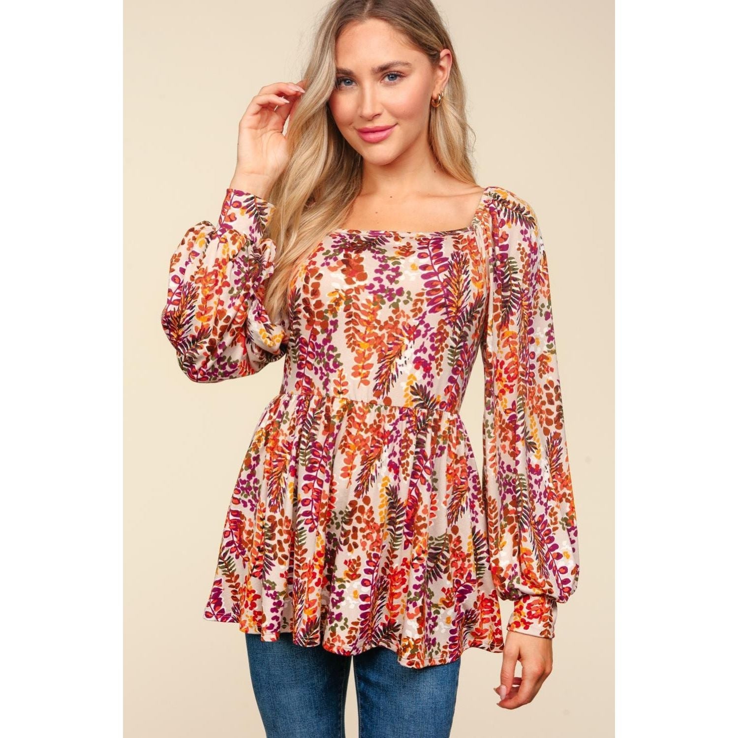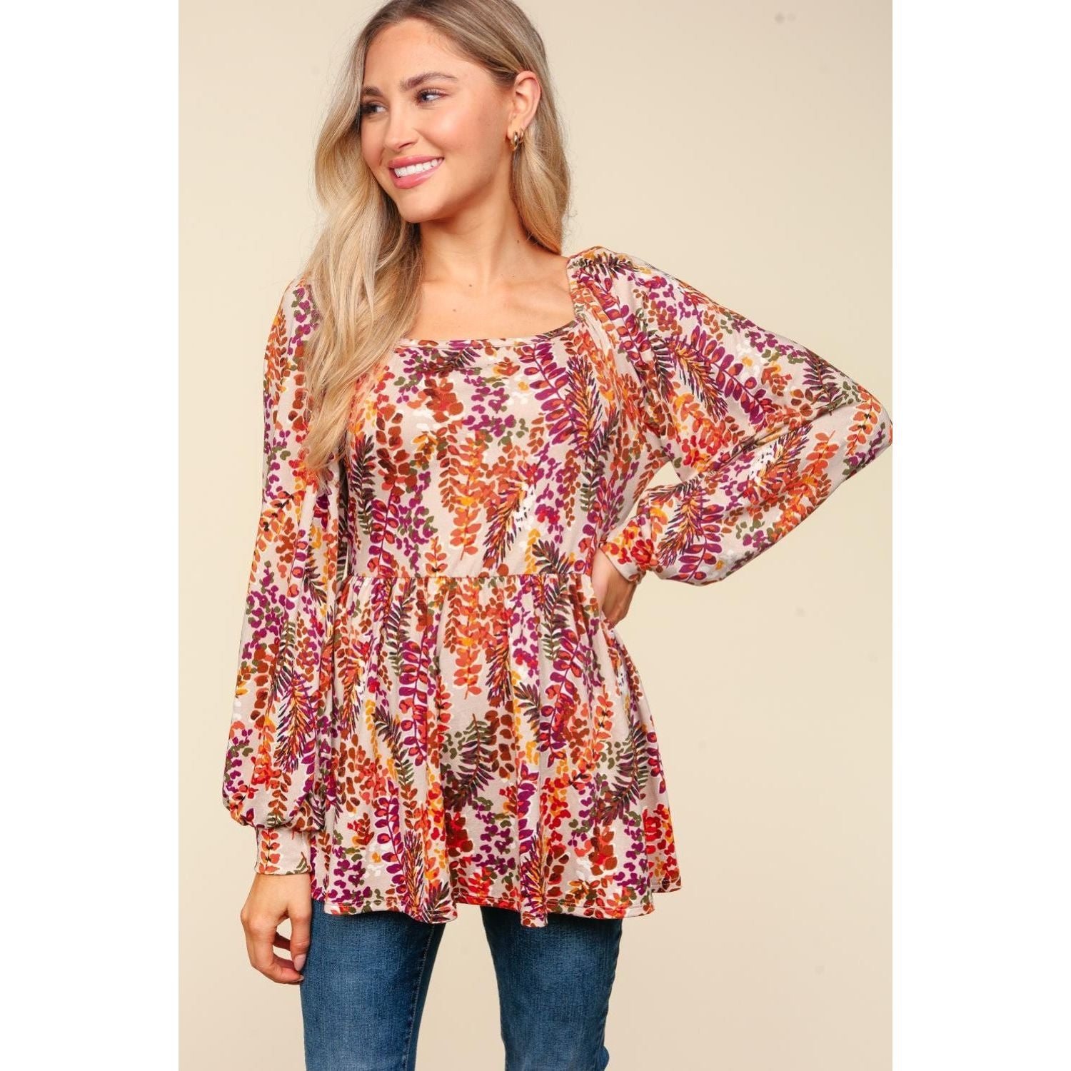 Haptics Full Size Peplum Floral Square Neck Blouse