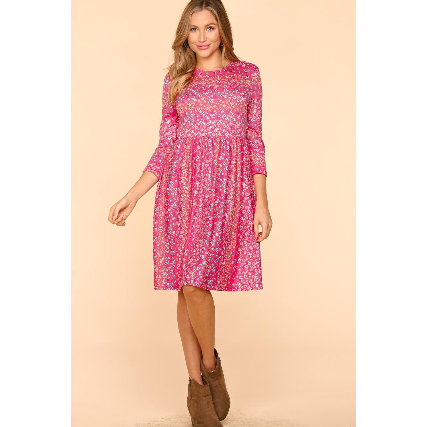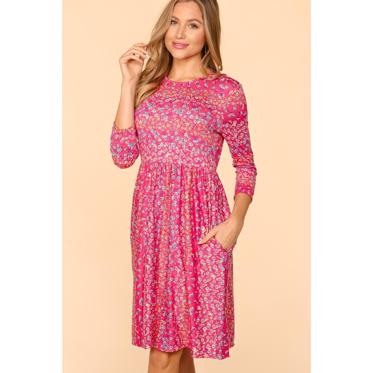 The Round Neck Floral Dress with Pockets is a delightful and practical choice for your wardrobe. This dress features a charming floral print that adds a touch of femininity and elegance. The classic round neck design offers a timeless and versatile look that can be styled in various ways. The addition of pockets adds functionality and convenience to the dress, allowing you to carry small essentials with ease. Made from a comfortable and breathable fabric, this dress is perfect for everyday wear. Dress it up with heels for a more polished outfit or pair it with sandals for a casual, laid-back look. Whether you're heading to a picnic or a lunch date, this dress is a versatile and stylish option that will have you looking effortlessly chic.