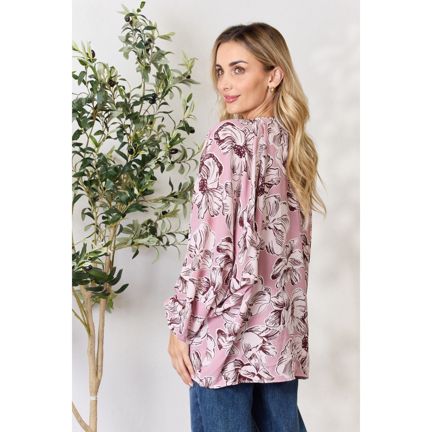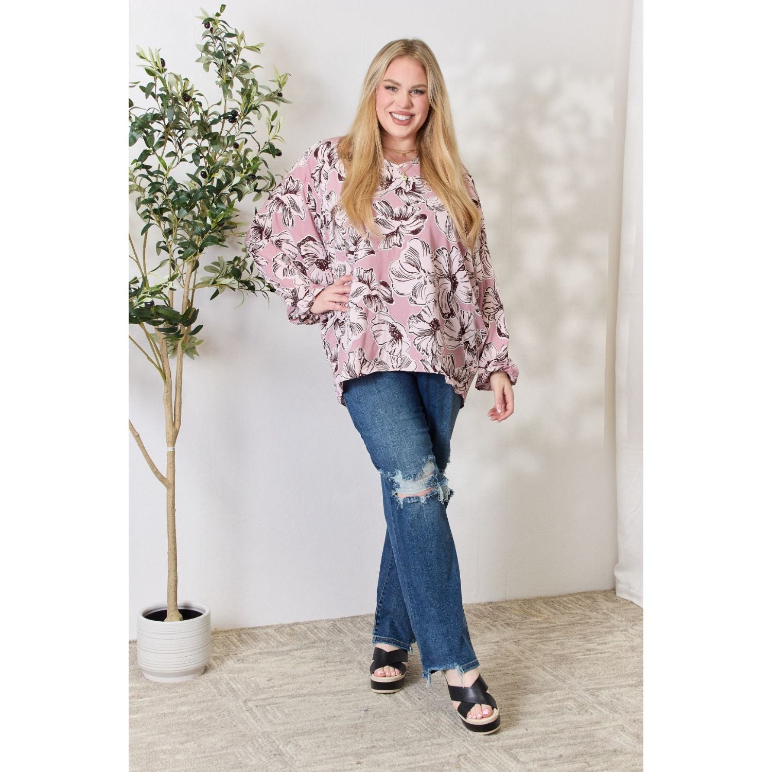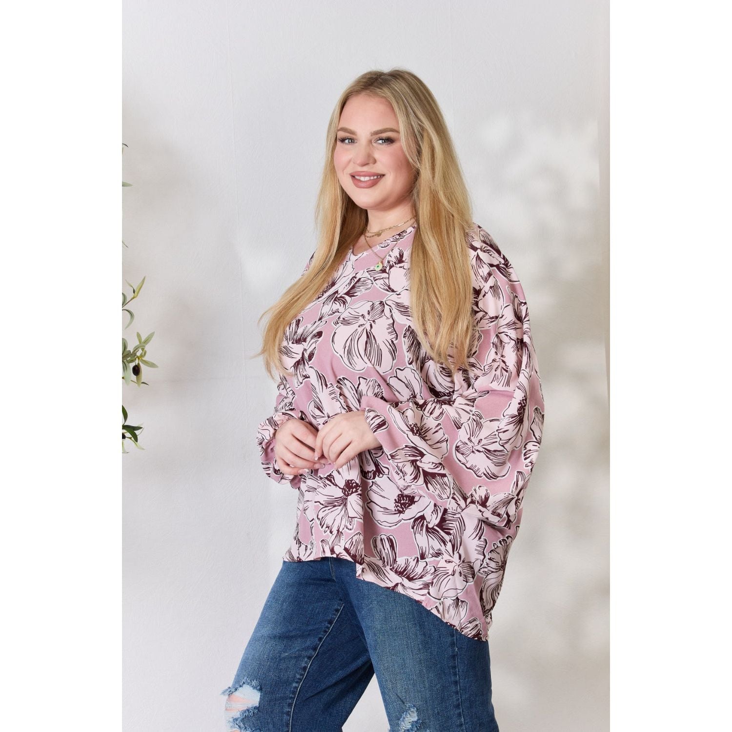 Heimish Full Size Floral V-Neck Balloon Sleeve Blouse
