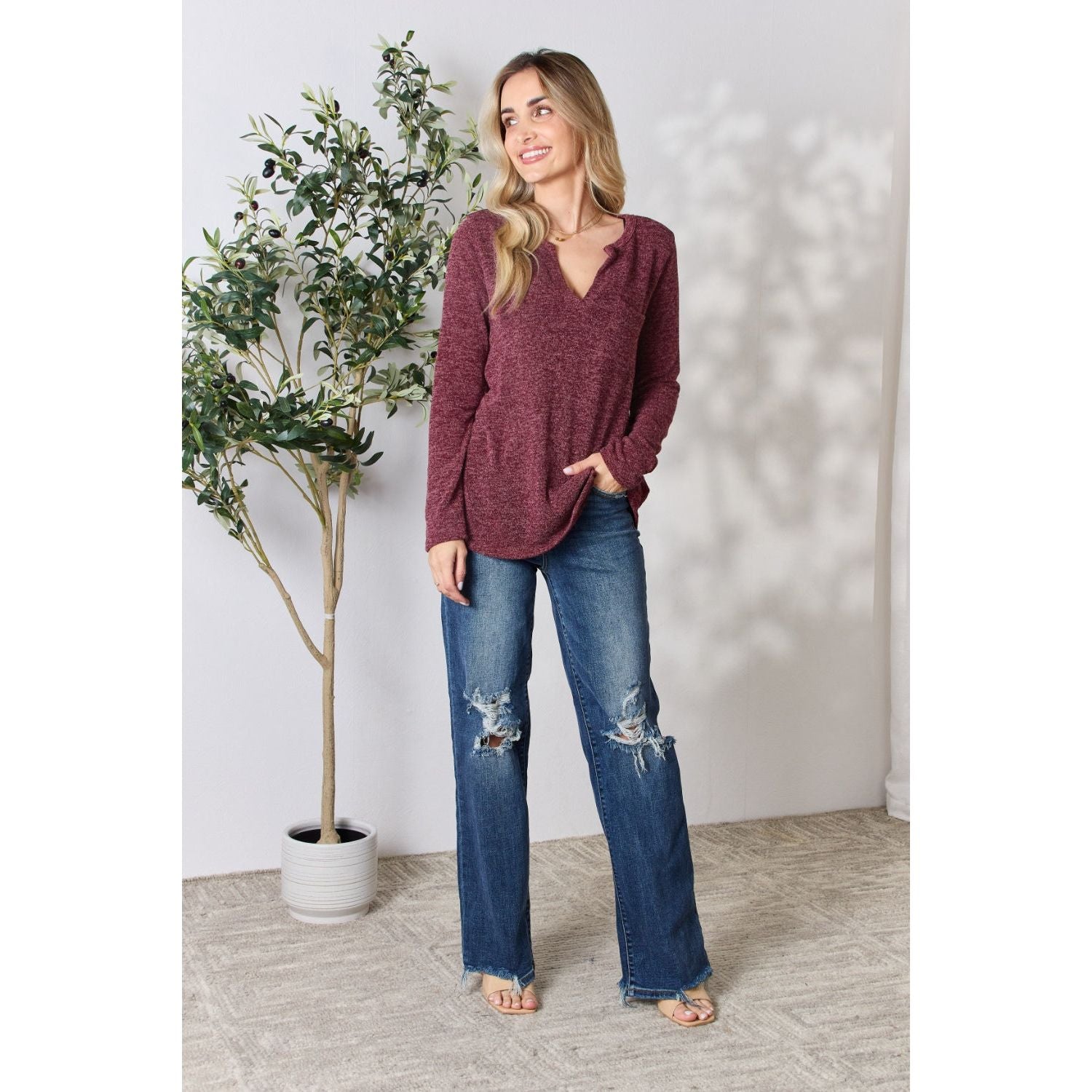 This versatile top is designed to keep you effortlessly chic throughout the day. The timeless notched neckline adds a touch of sophistication, while the convenient pocket detail seamlessly combines fashion with functionality.