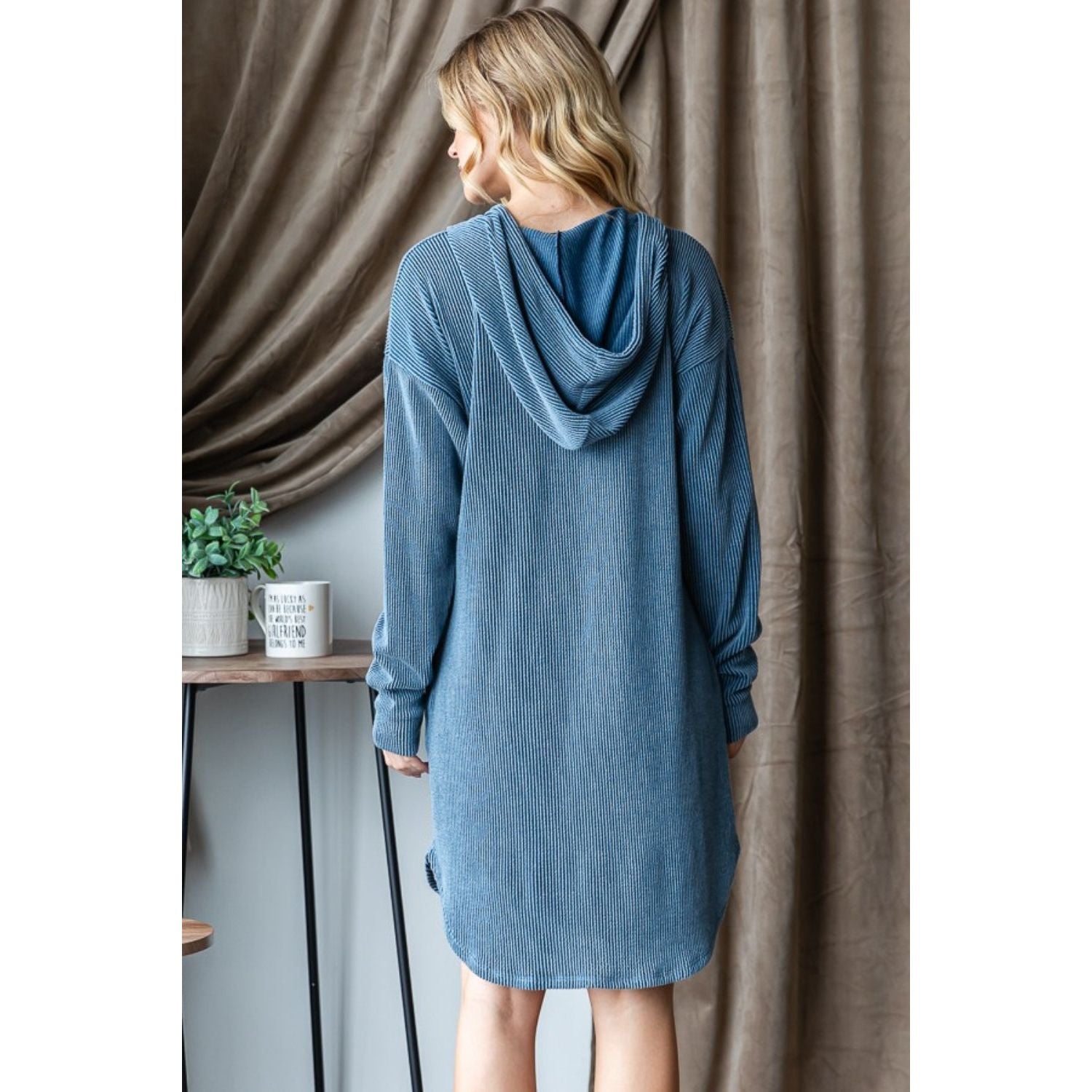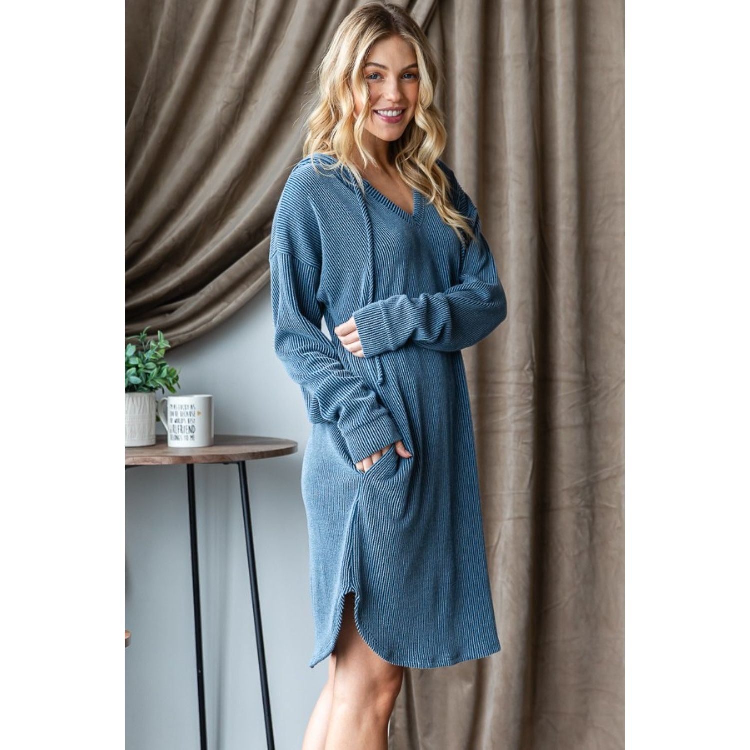 The Ribbed Long Sleeve Hooded Dress is a stylish and cozy wardrobe essential. With its ribbed texture and long sleeves, this dress offers a chic and comfortable look. The hood adds a casual and laid-back touch, perfect for a relaxed yet fashionable outfit. Made from soft and stretchy fabric, it provides a flattering silhouette and all-day comfort. Whether paired with boots for a casual day out or dressed up with heels for a night out, this hooded dress is versatile and on-trend. Elevate your winter wardrobe with this chic and versatile ribbed dress.