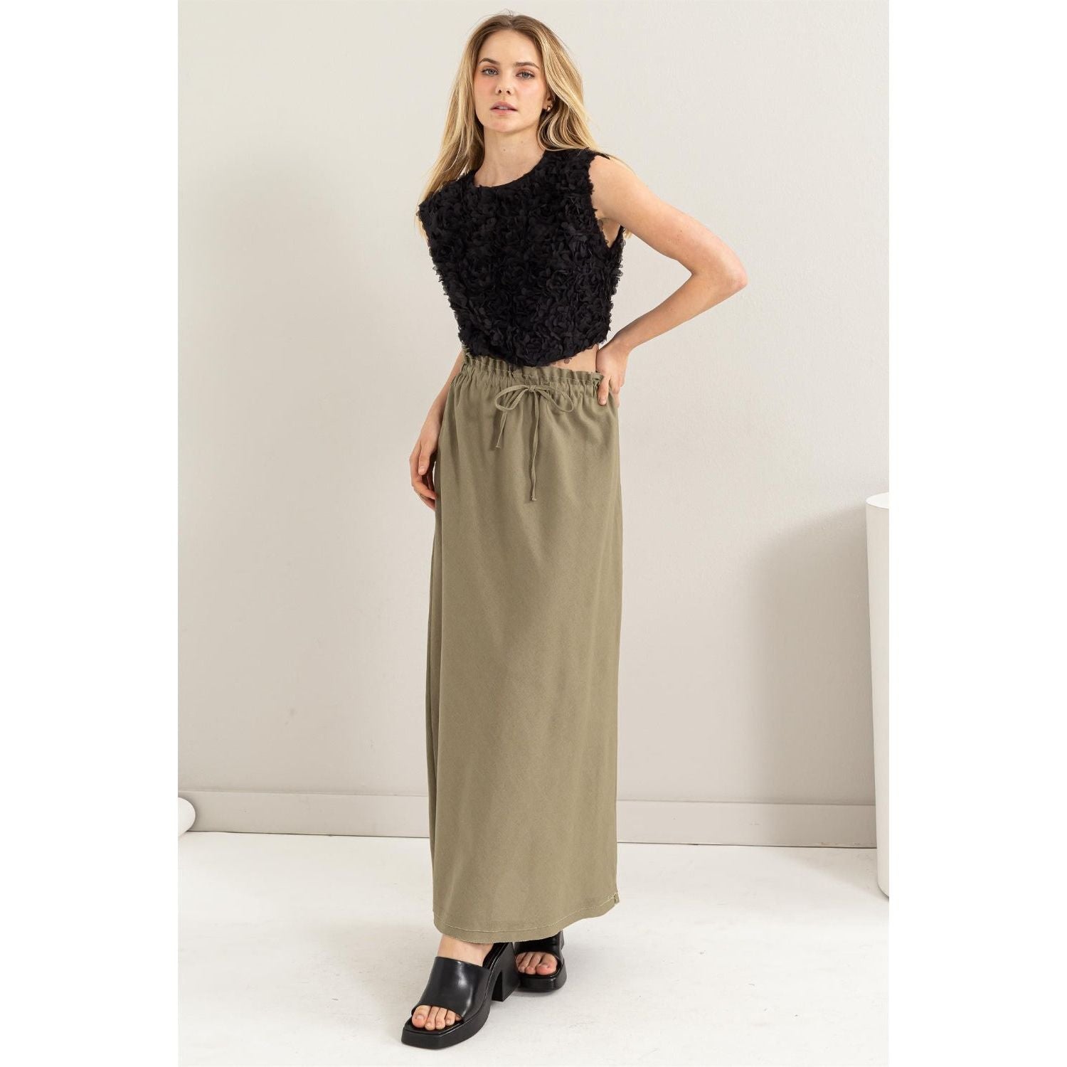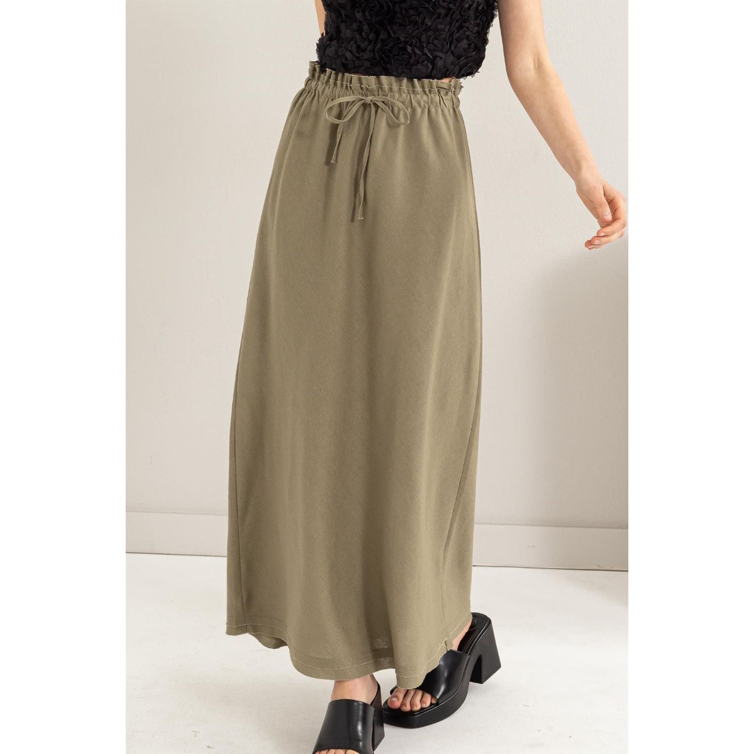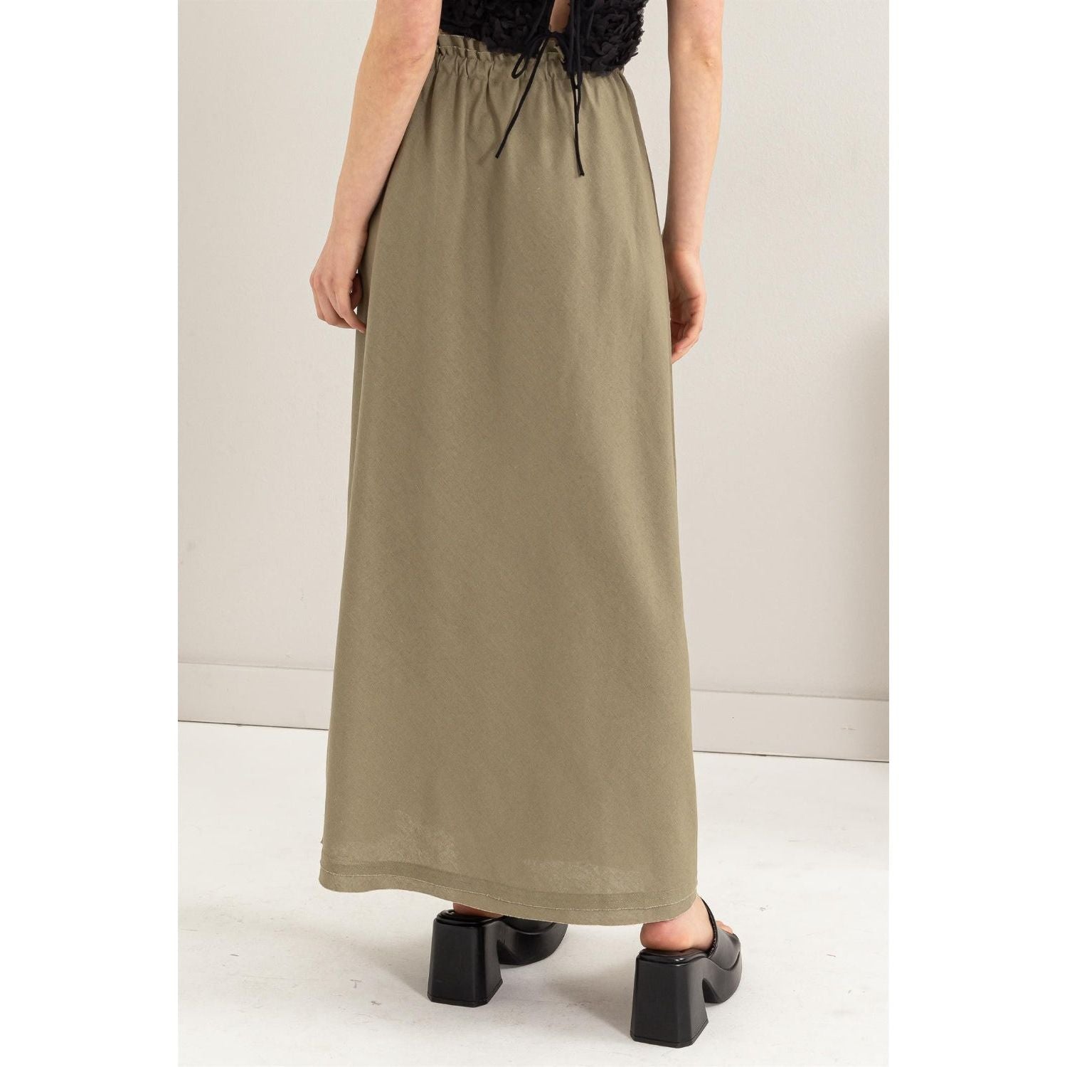 HYFVE Drawstring Washed Linen Maxi Skirt