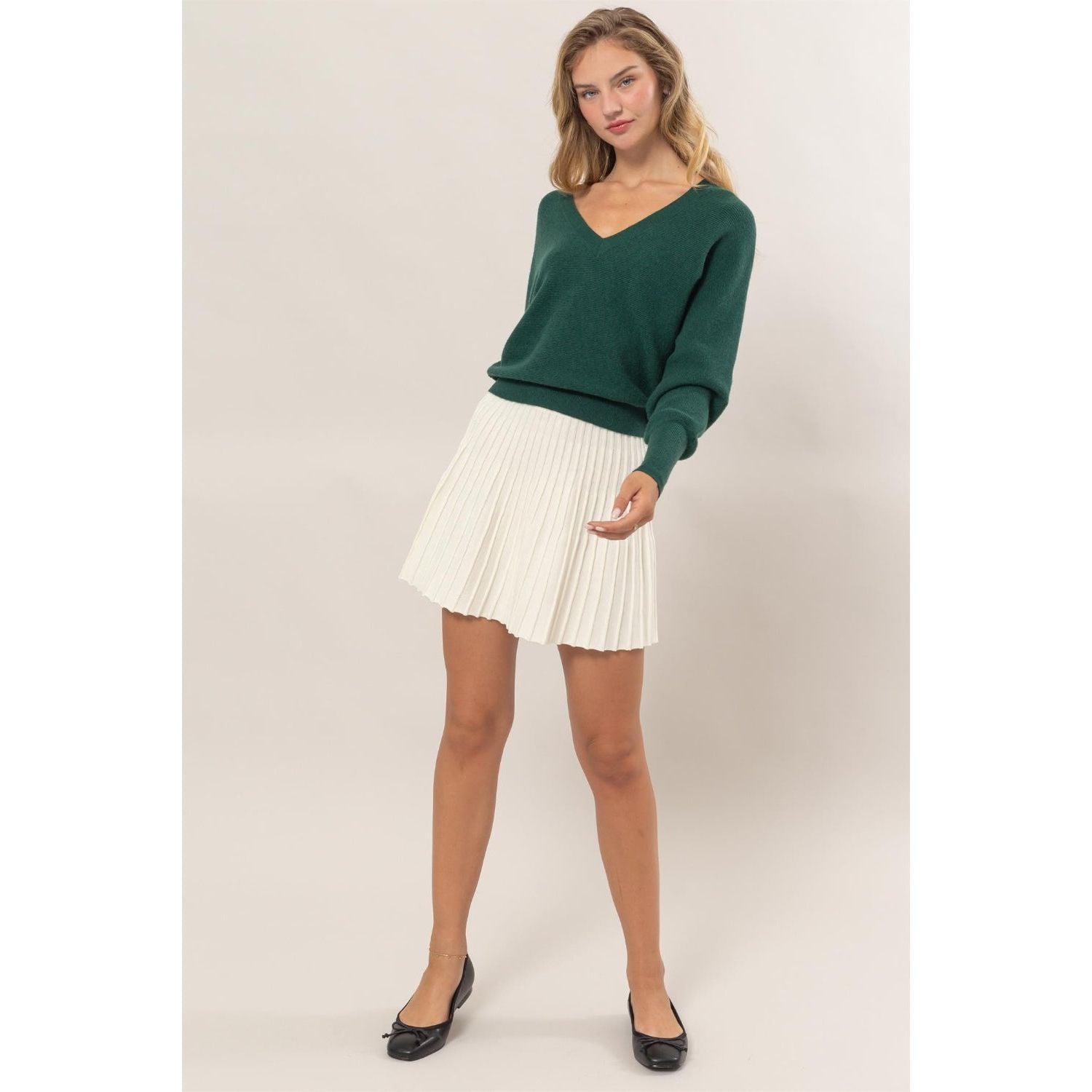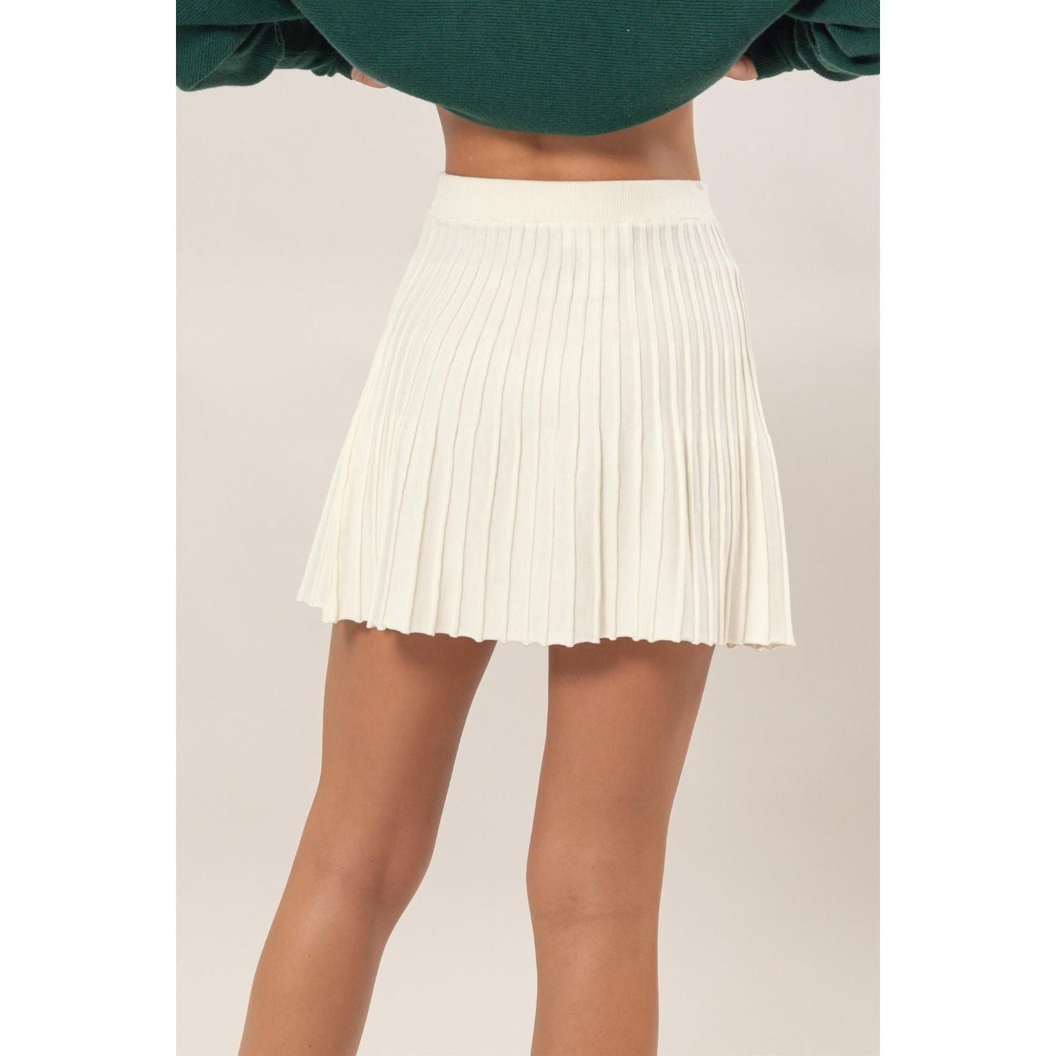 HYFVE High Waist Knit Pleated Flare Mini Skirt
