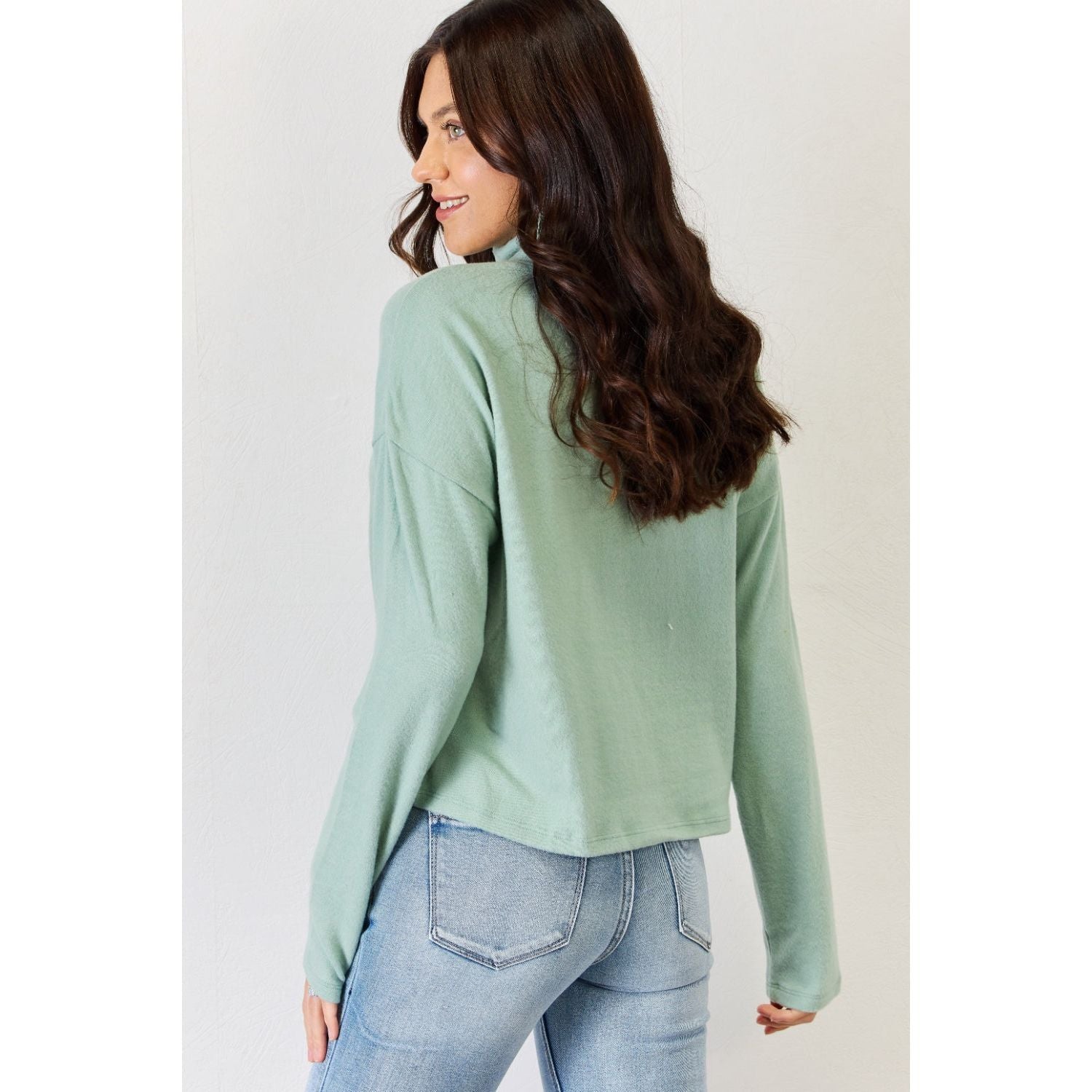 This classic piece is an absolute showstopper, boasting a luxurious feel against your skin. Its turtleneck design exudes sophistication while the drop shoulders and long sleeves ensure an effortlessly chic appearance. The relaxed fit bodice not only adds flair but also guarantees a timeless style that's perfect for any occasion.