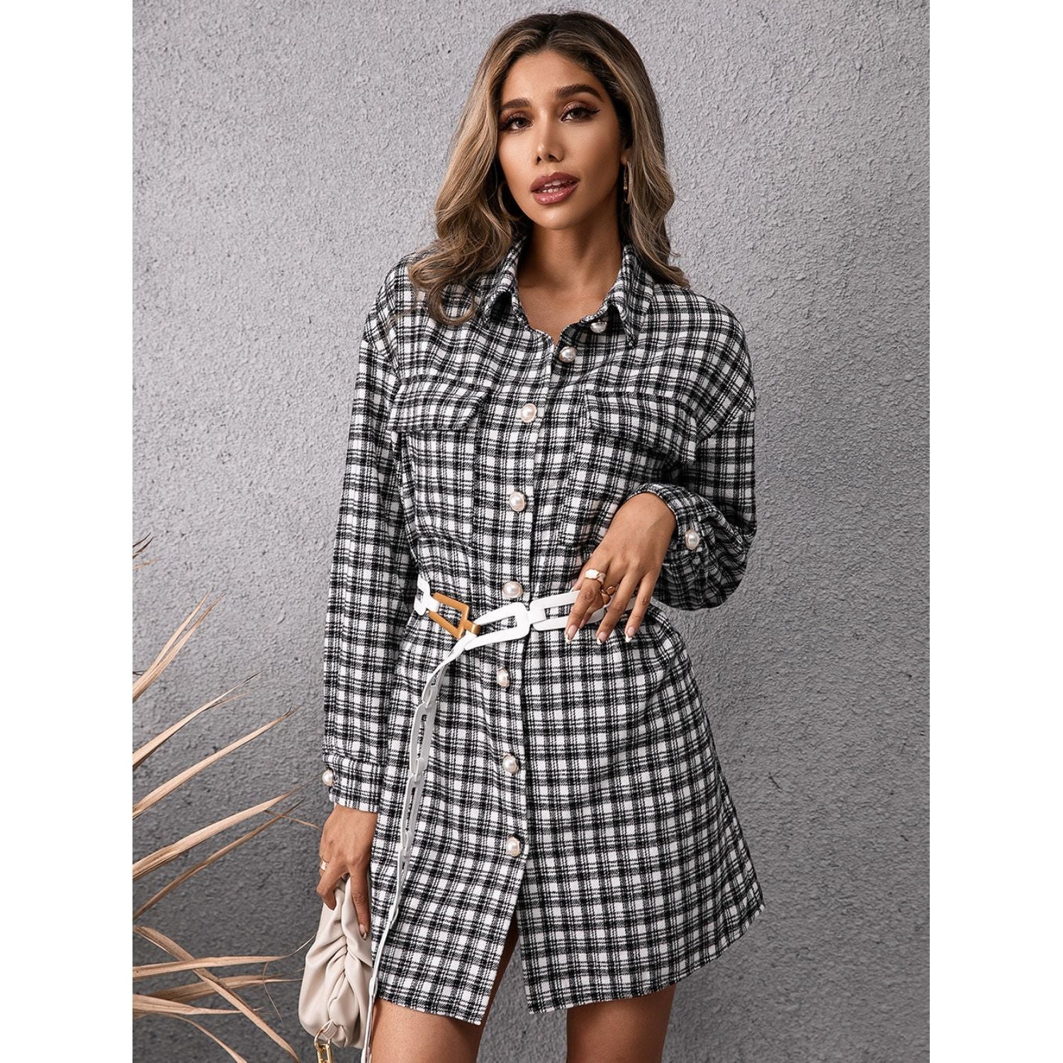 Ivy Lane Pocketed Plaid Long Sleeve Mini Dress