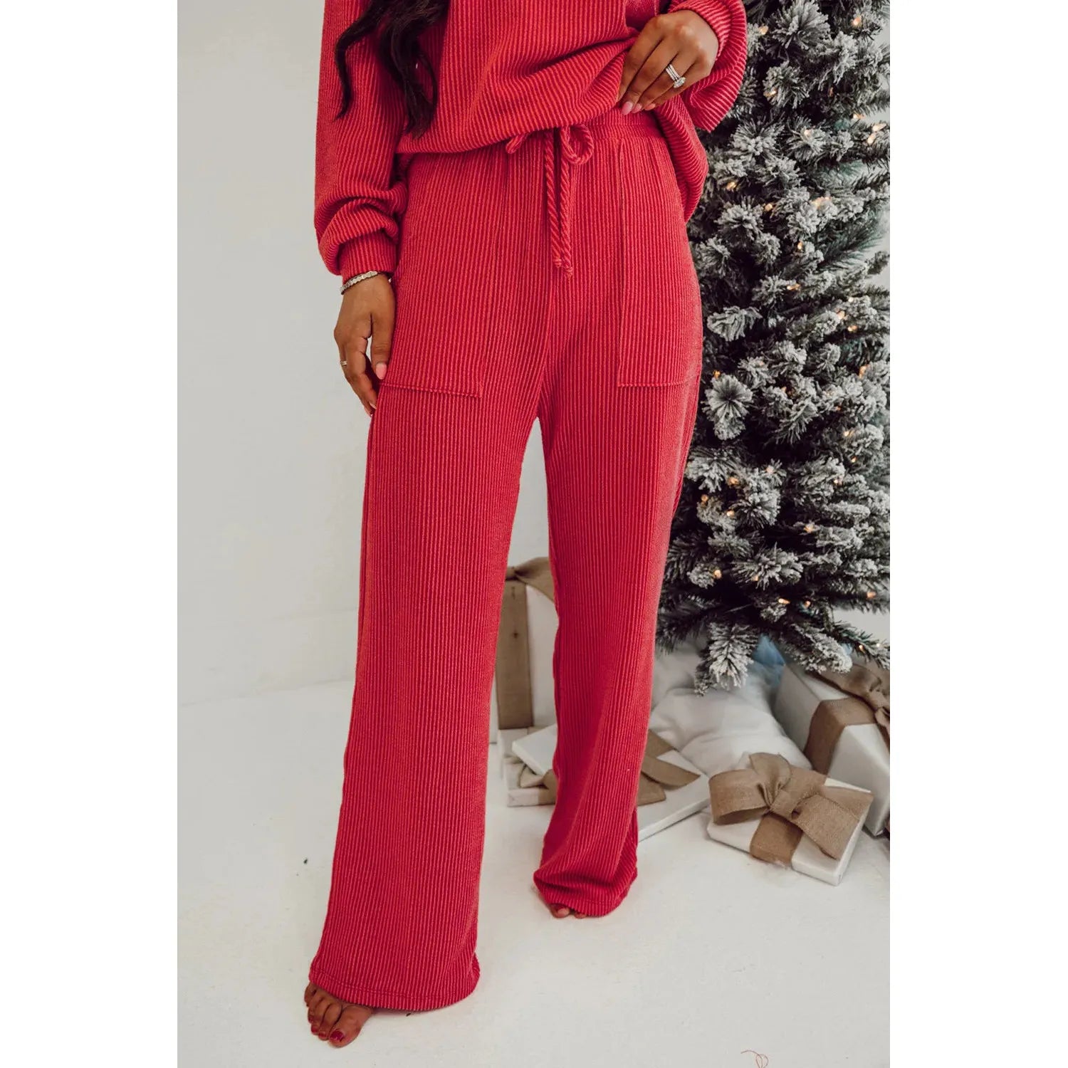 JOLLY Round Neck Long Sleeve Top and Pants Lounge Set