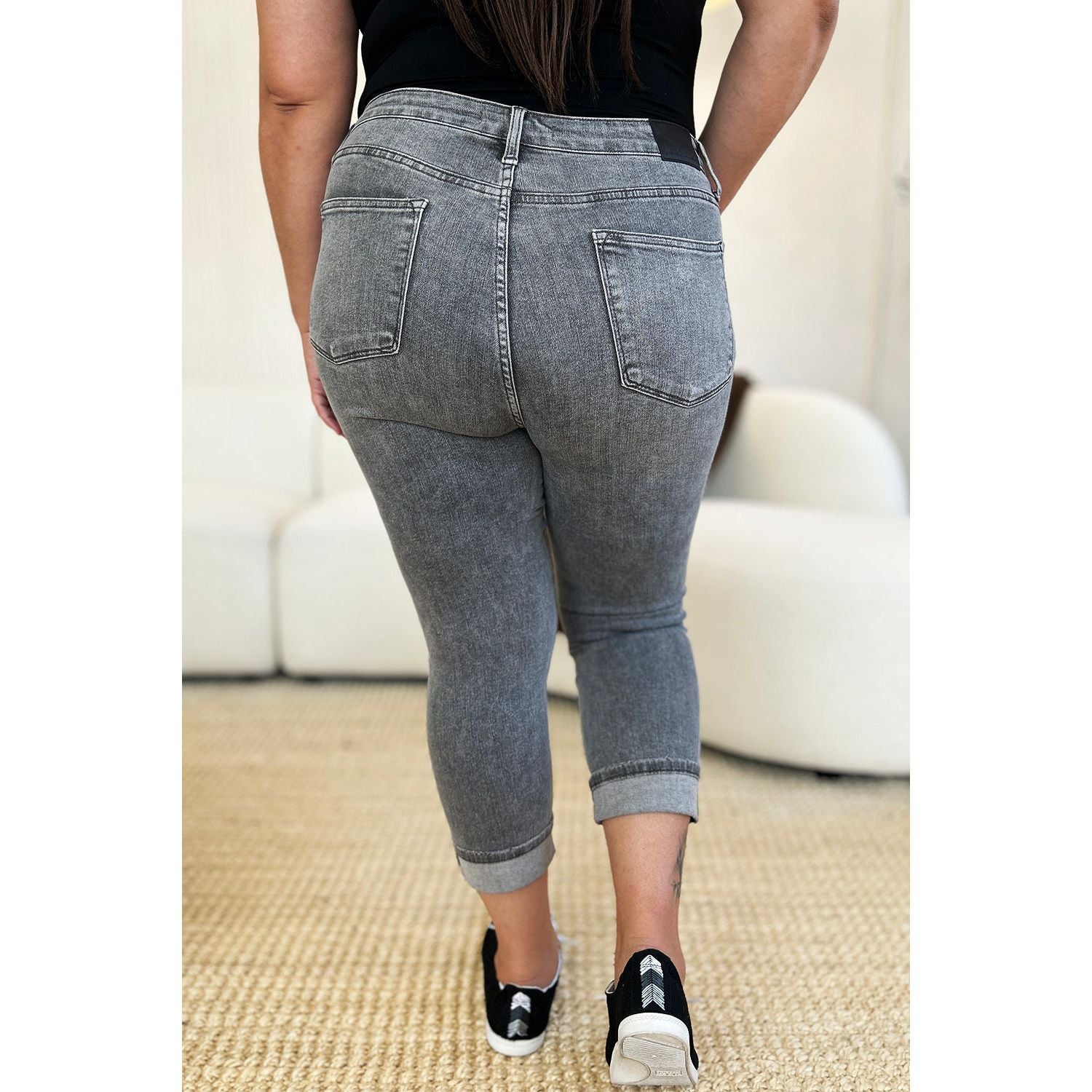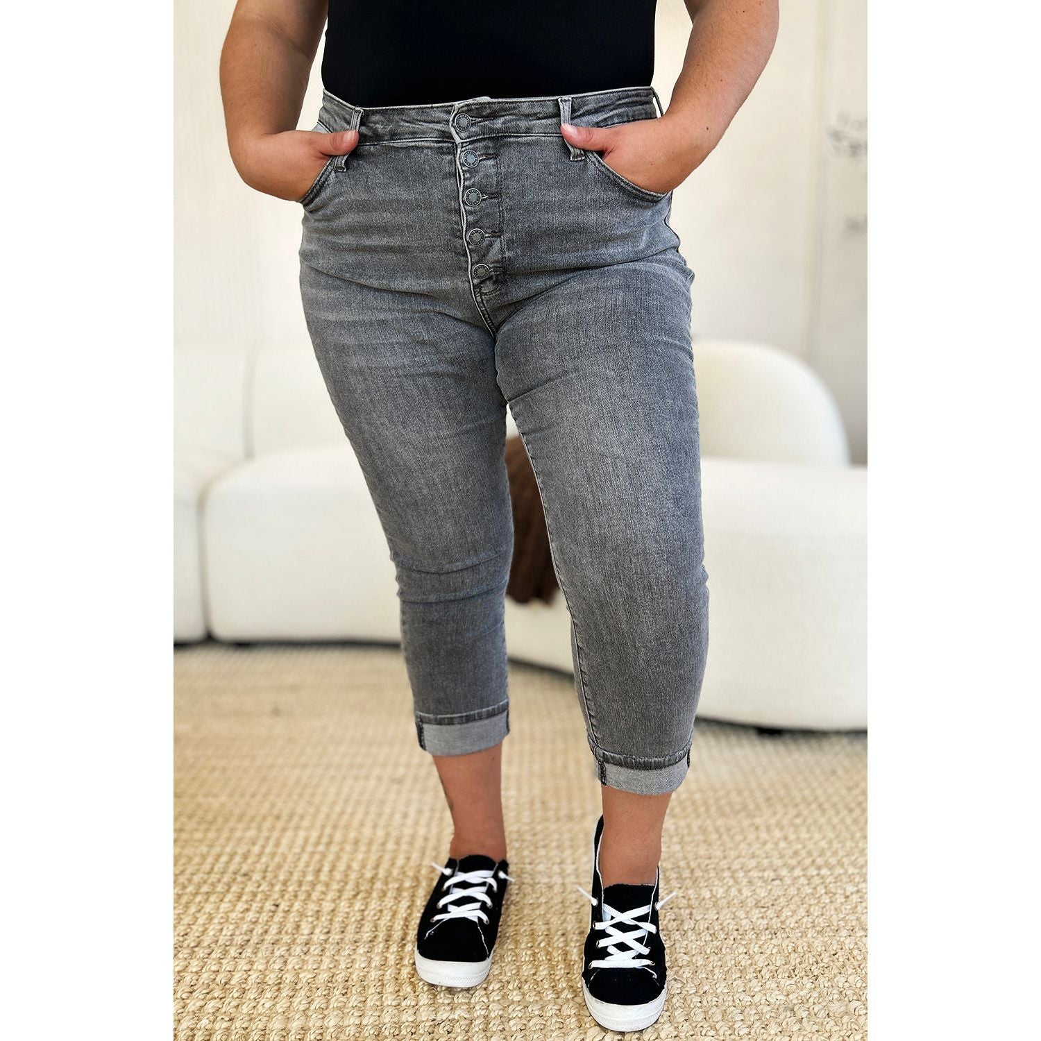 Judy Blue Full Size Button Fly High Waist Cuffed Capris
