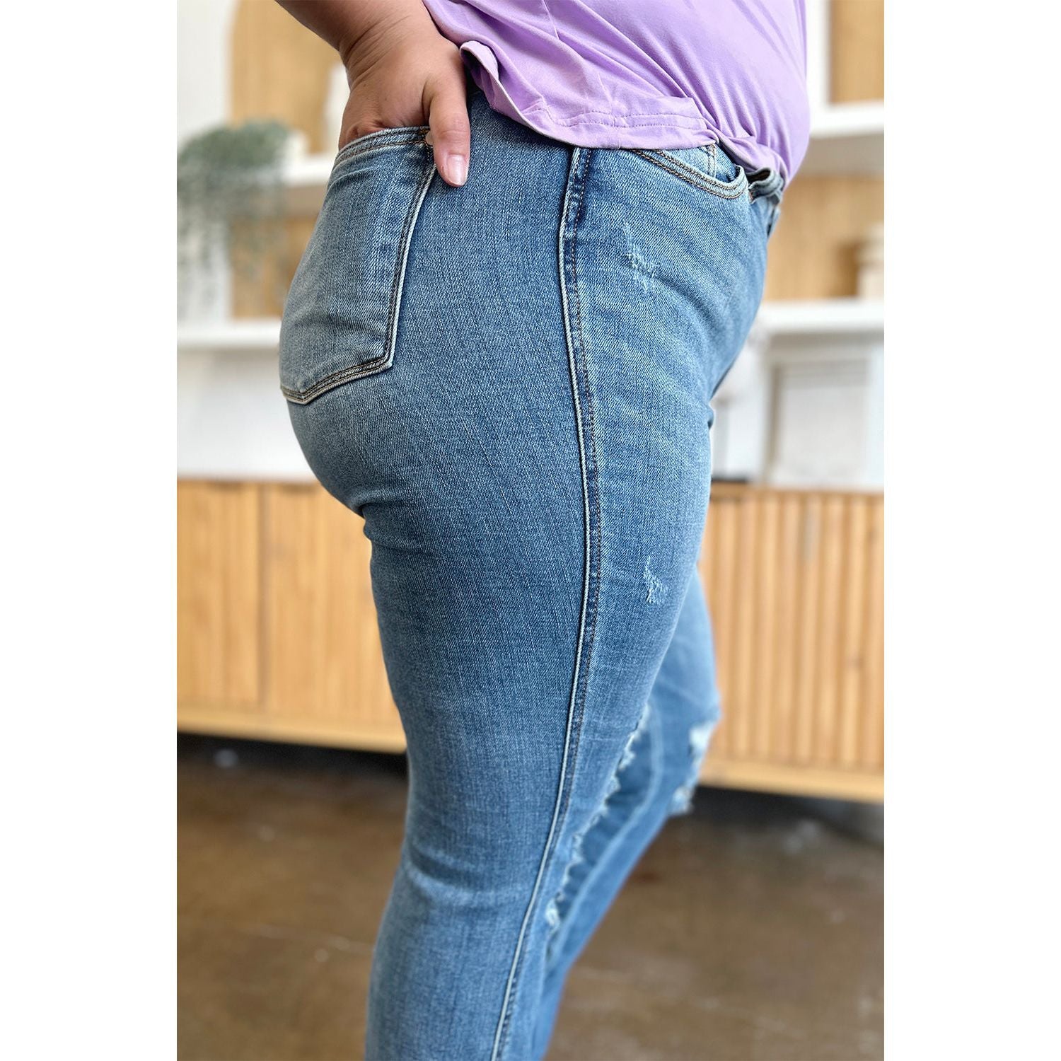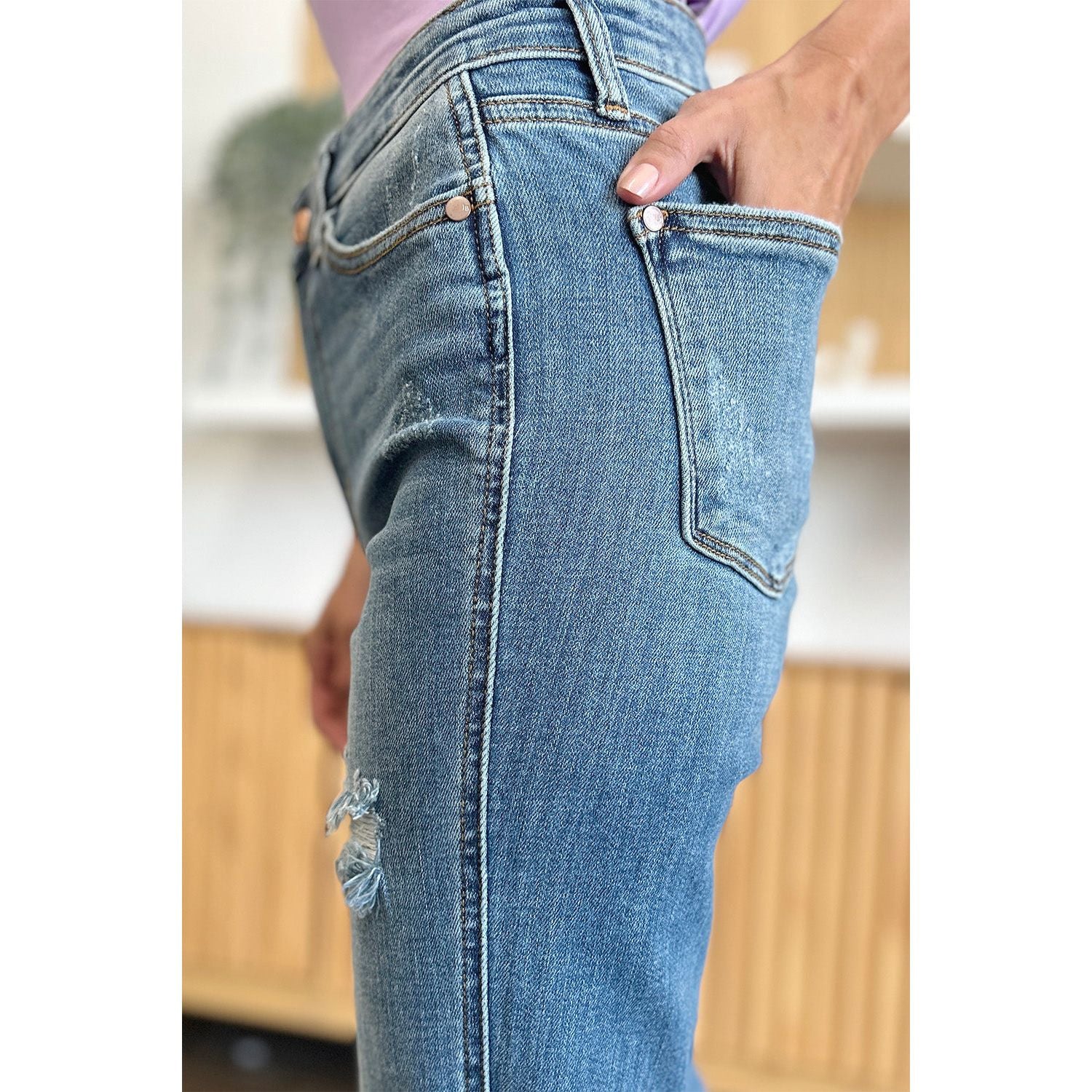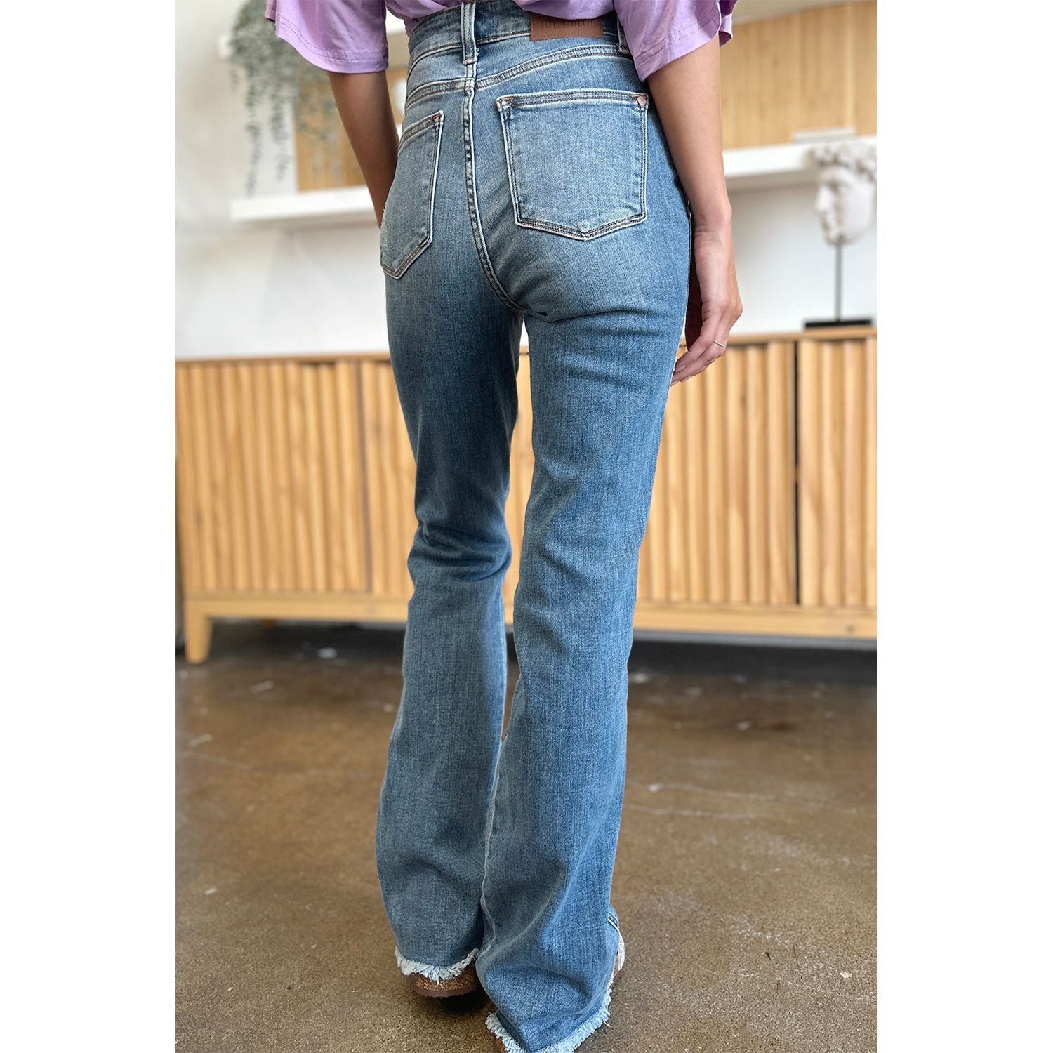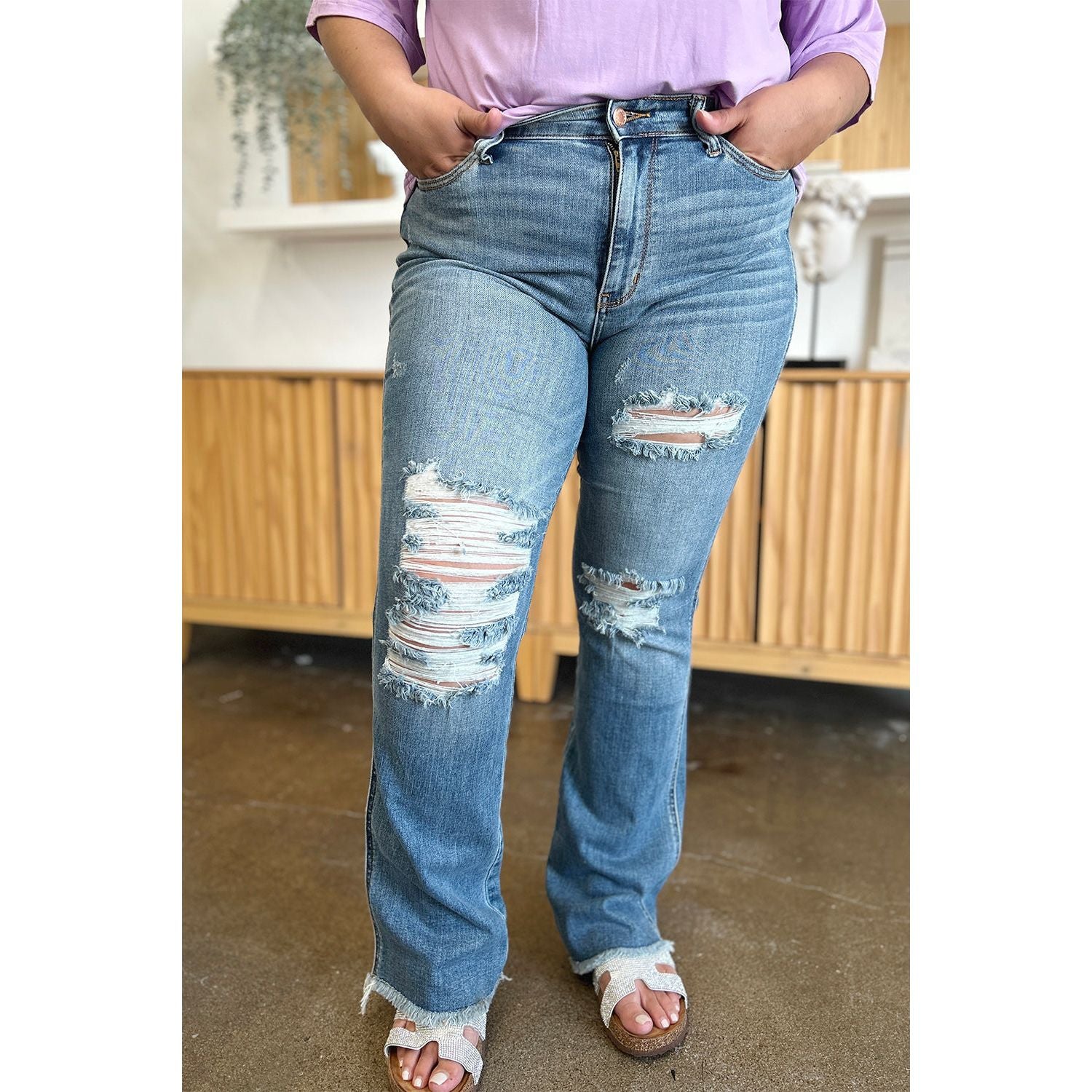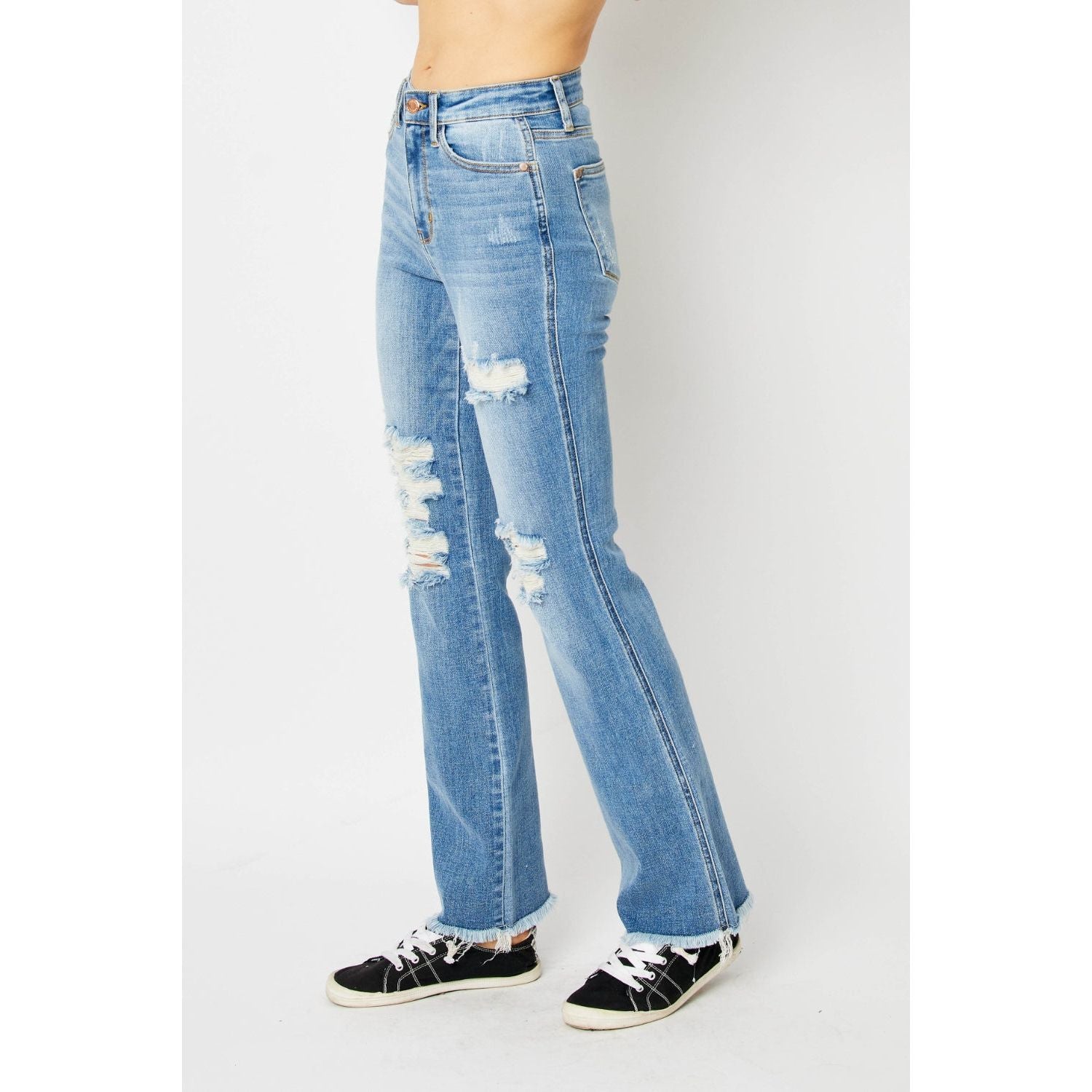 Judy Blue Full Size Distressed Raw Hem Bootcut Jeans