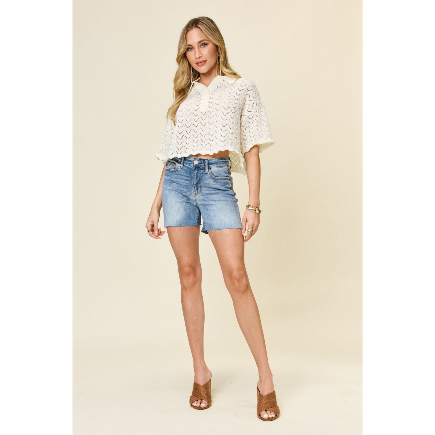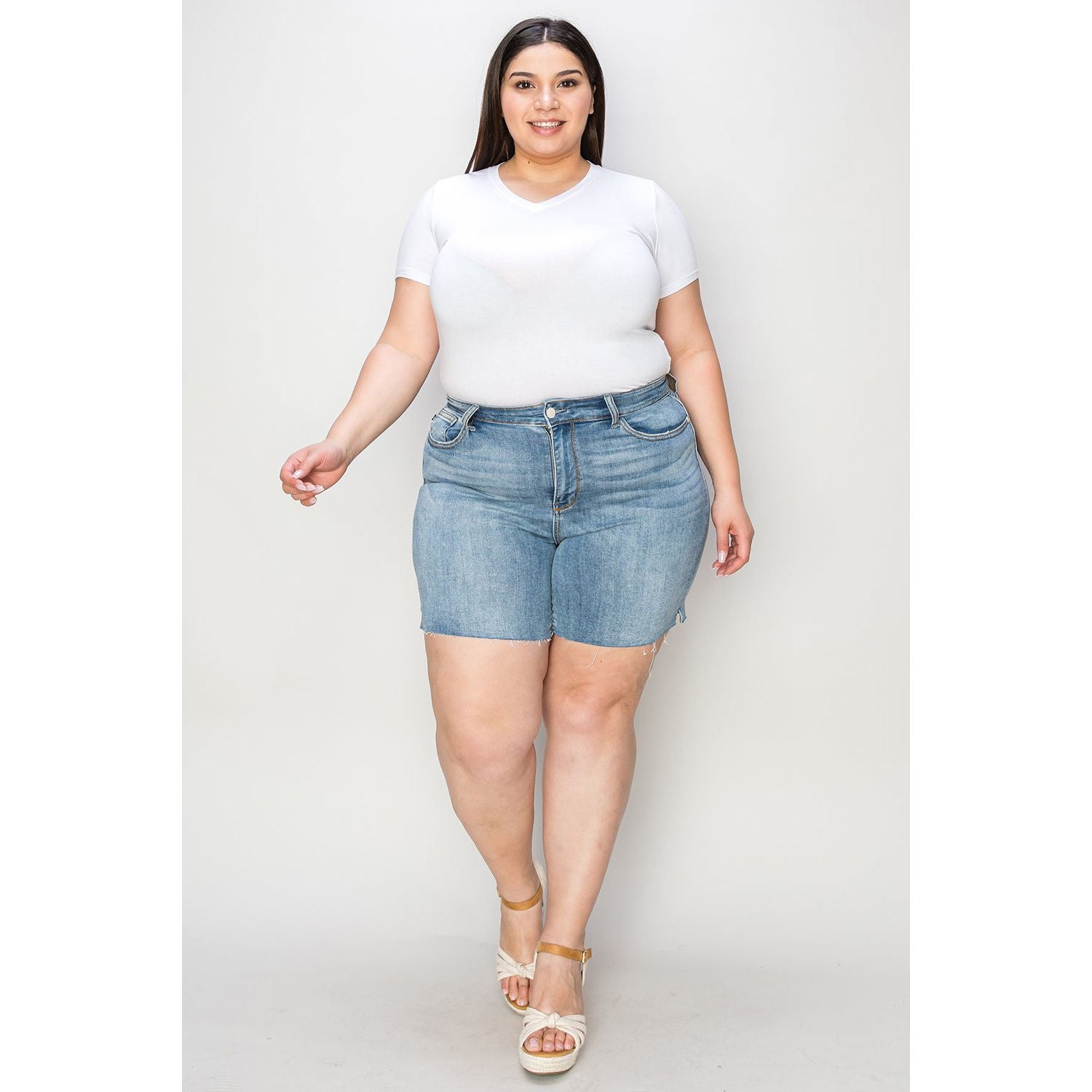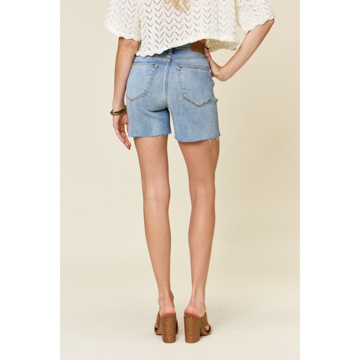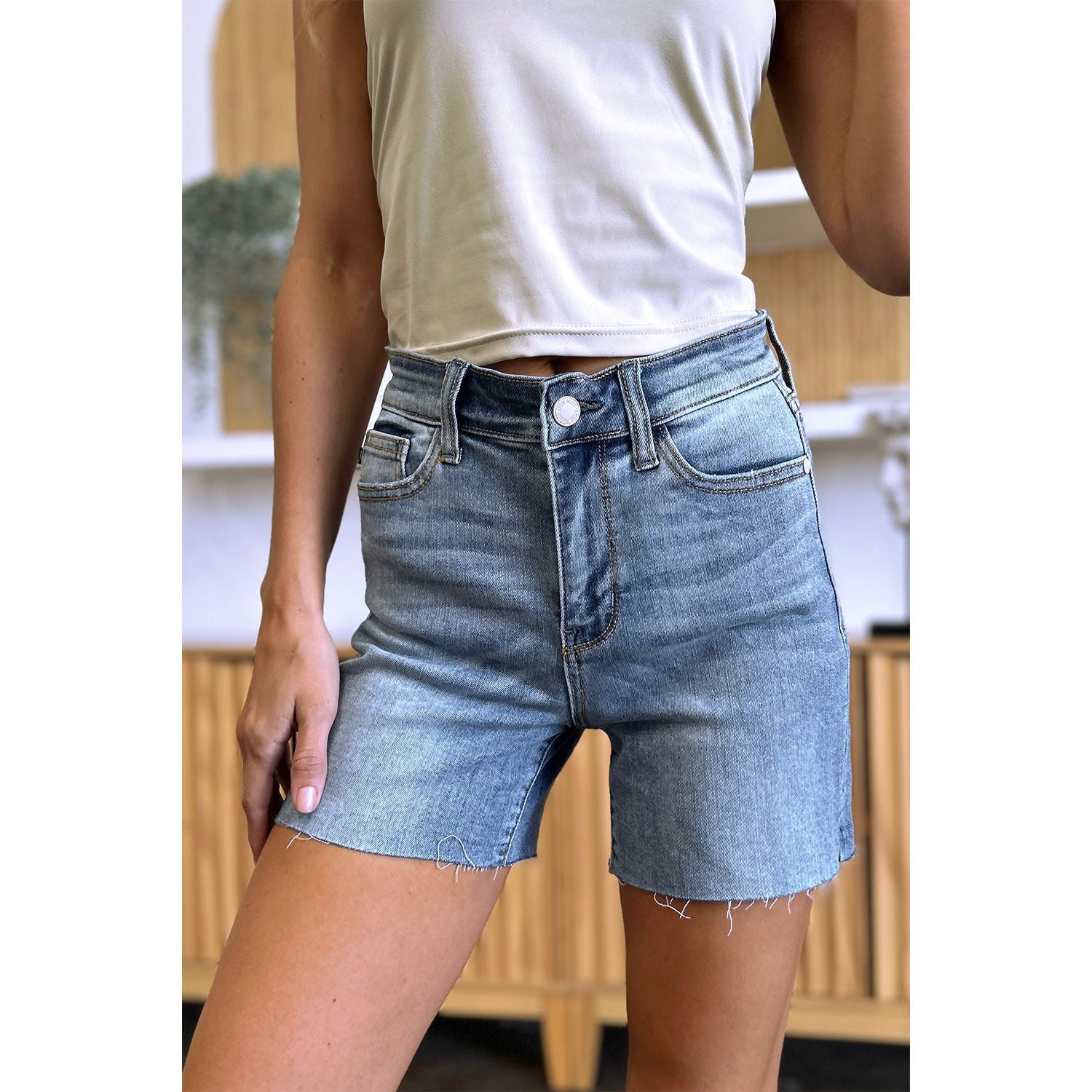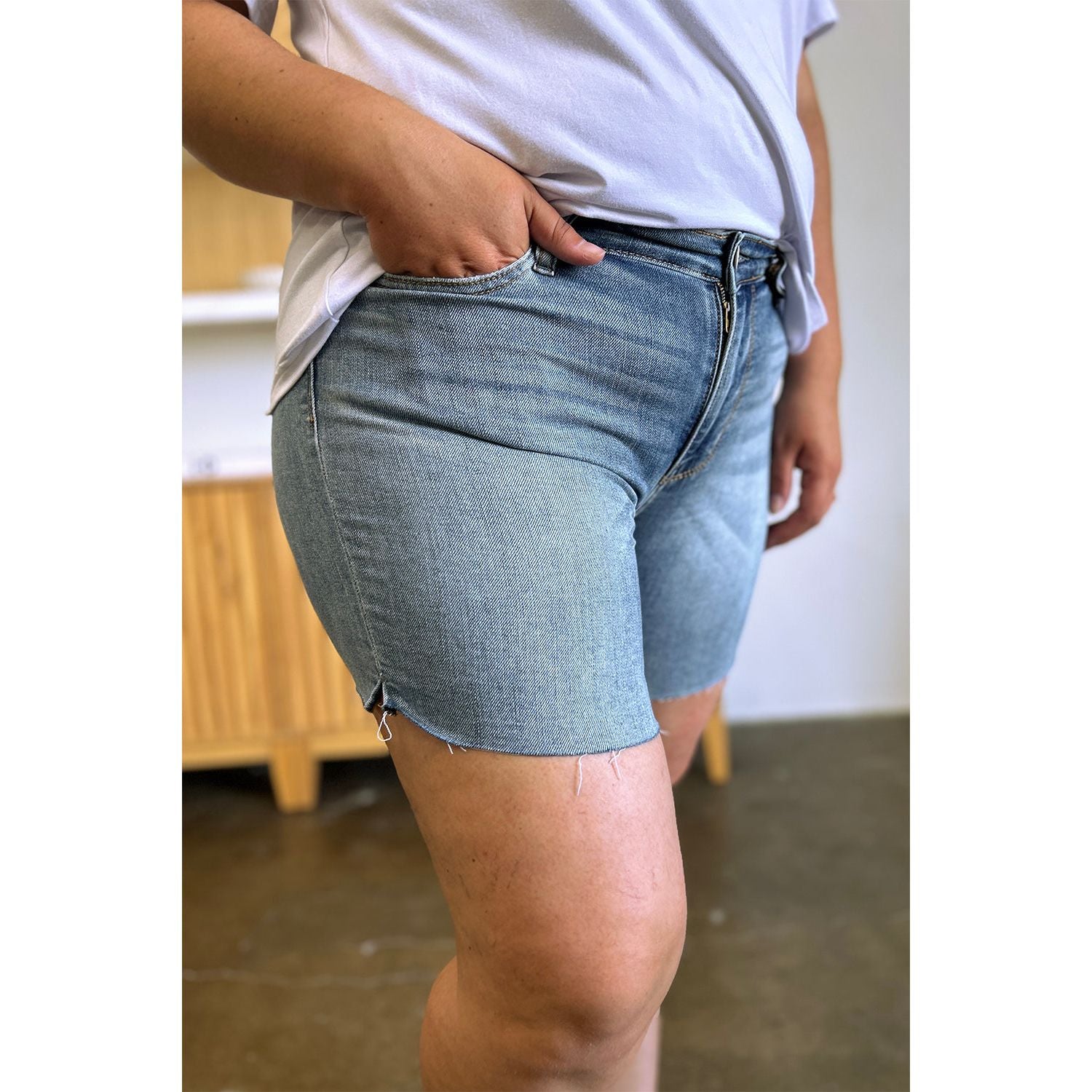 Judy Blue Full Size High Waist Raw Hem Denim Shorts