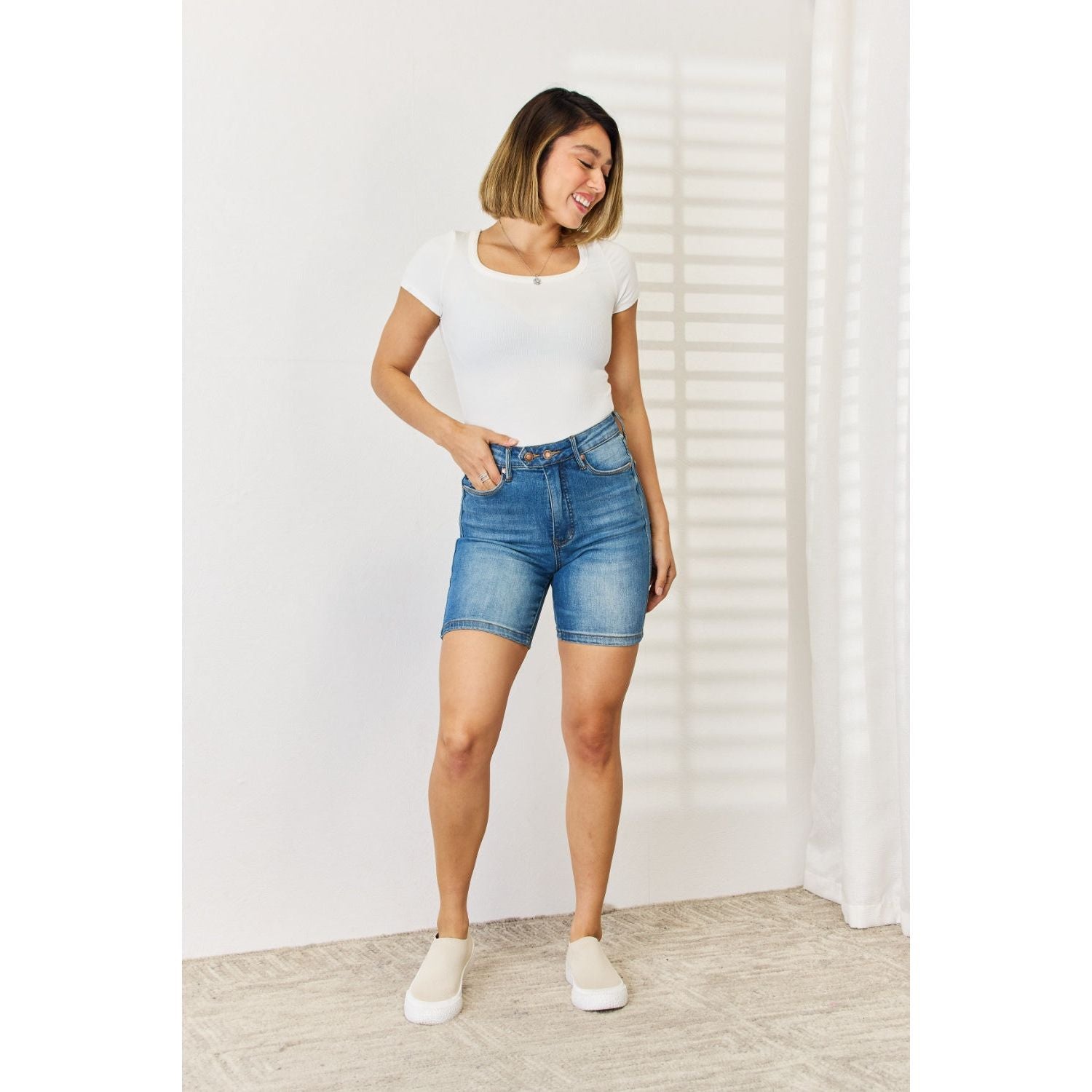 Judy Blue Full Size Tummy Control Double Button Bermuda Denim Shorts