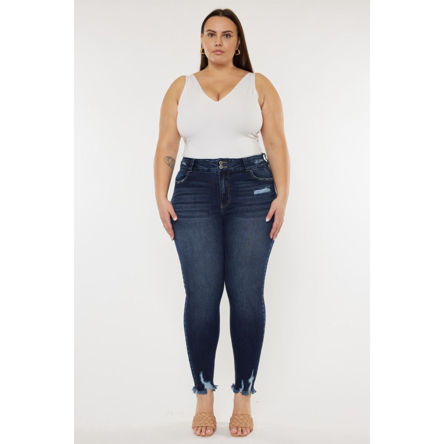 Kancan Full Size Cat's Whiskers Raw Hem High Waist Jeans
