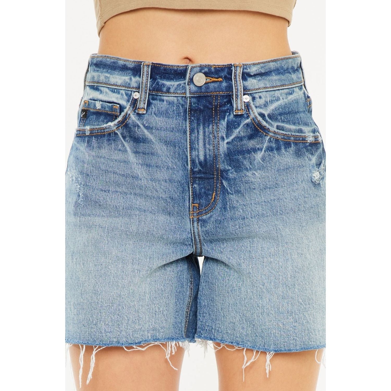 Kancan Full Size Raw Hem High Waist Denim Shorts