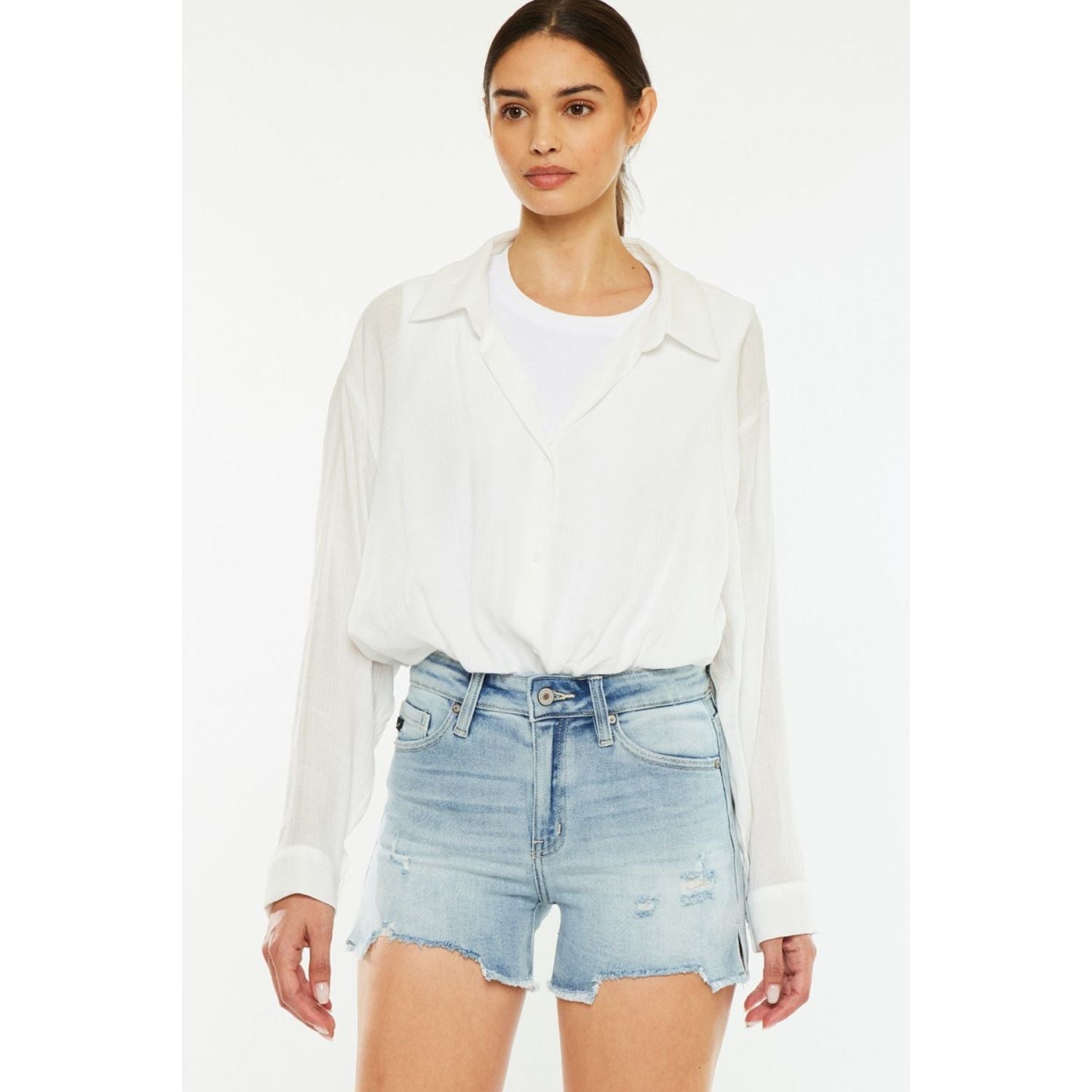 The High Rise Side Slit Denim Shorts are a stylish and versatile choice for your summer wardrobe. Featuring a flattering high-rise waist and trendy side slit detailing, these shorts offer a chic and modern silhouette. The side slits add a touch of edge and sophistication to your look, perfect for both casual and dressed-up occasions. Made from quality denim material, these shorts are comfortable and durable for all-day wear. Pair them with a crop top and sandals for a laid-back summer vibe or dress them up with a blouse and heels for a more polished ensemble. Elevate your summer style with the fashionable and on-trend High Rise Side Slit Denim Shorts.