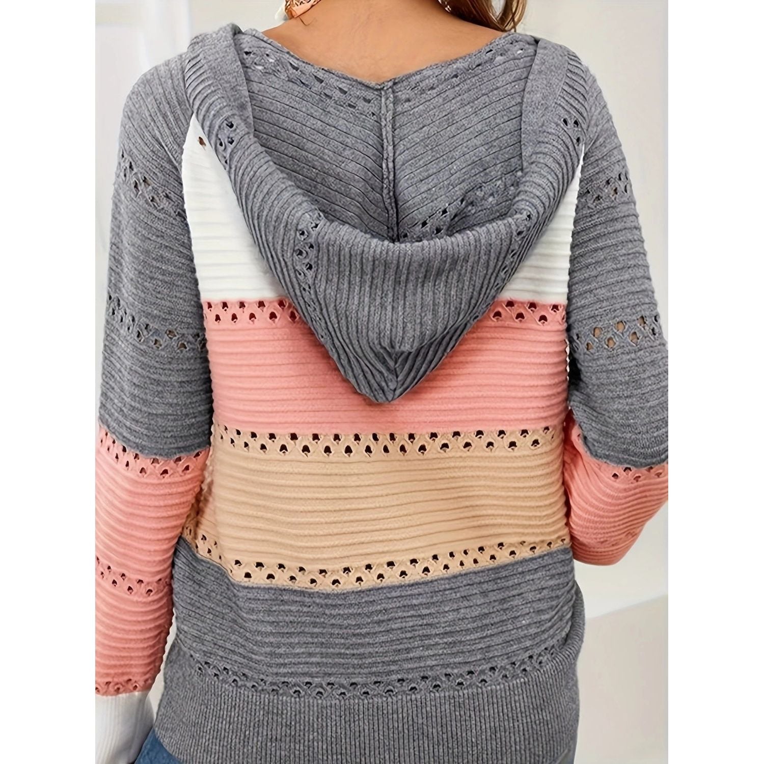 Lace-Up Contrast Long Sleeve Hooded Sweater