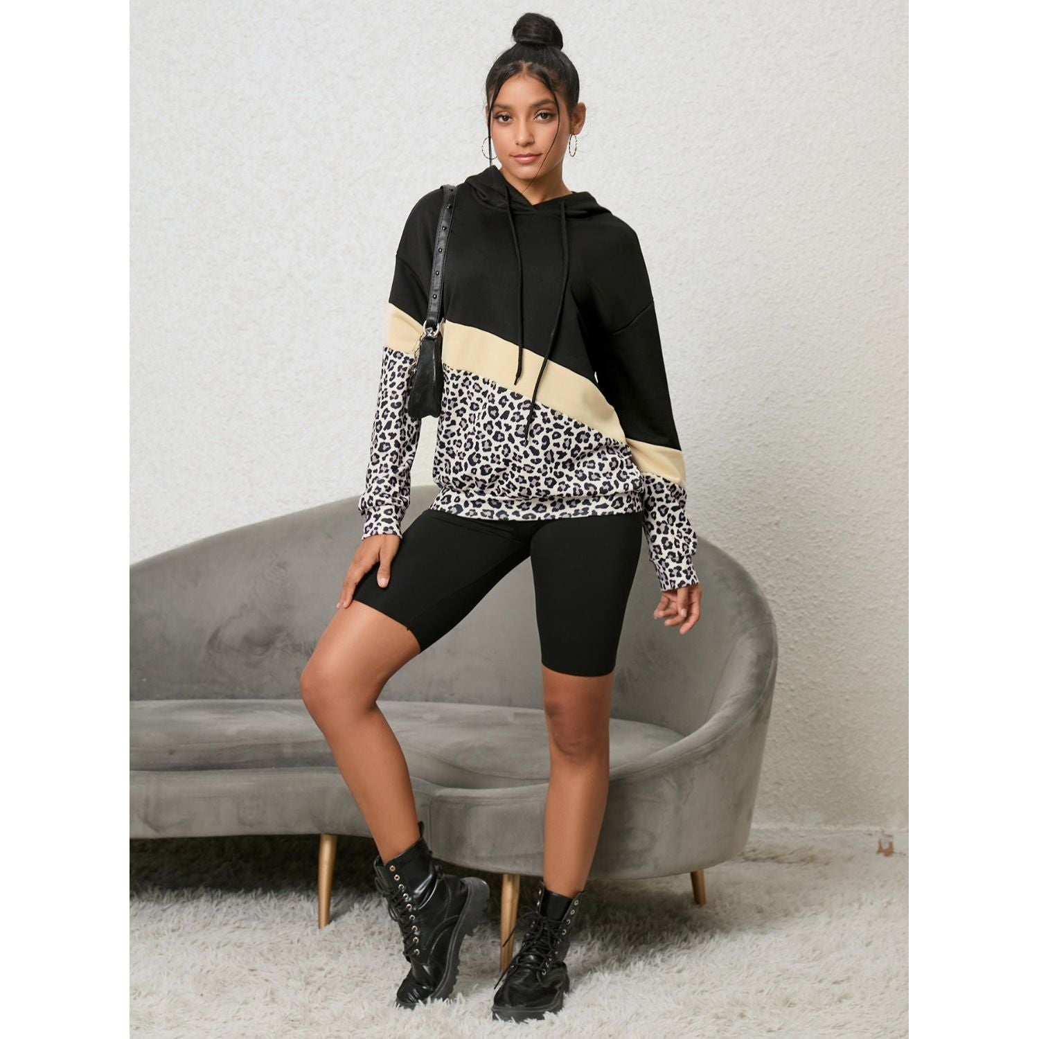 Leopard Color Block Hoodie
